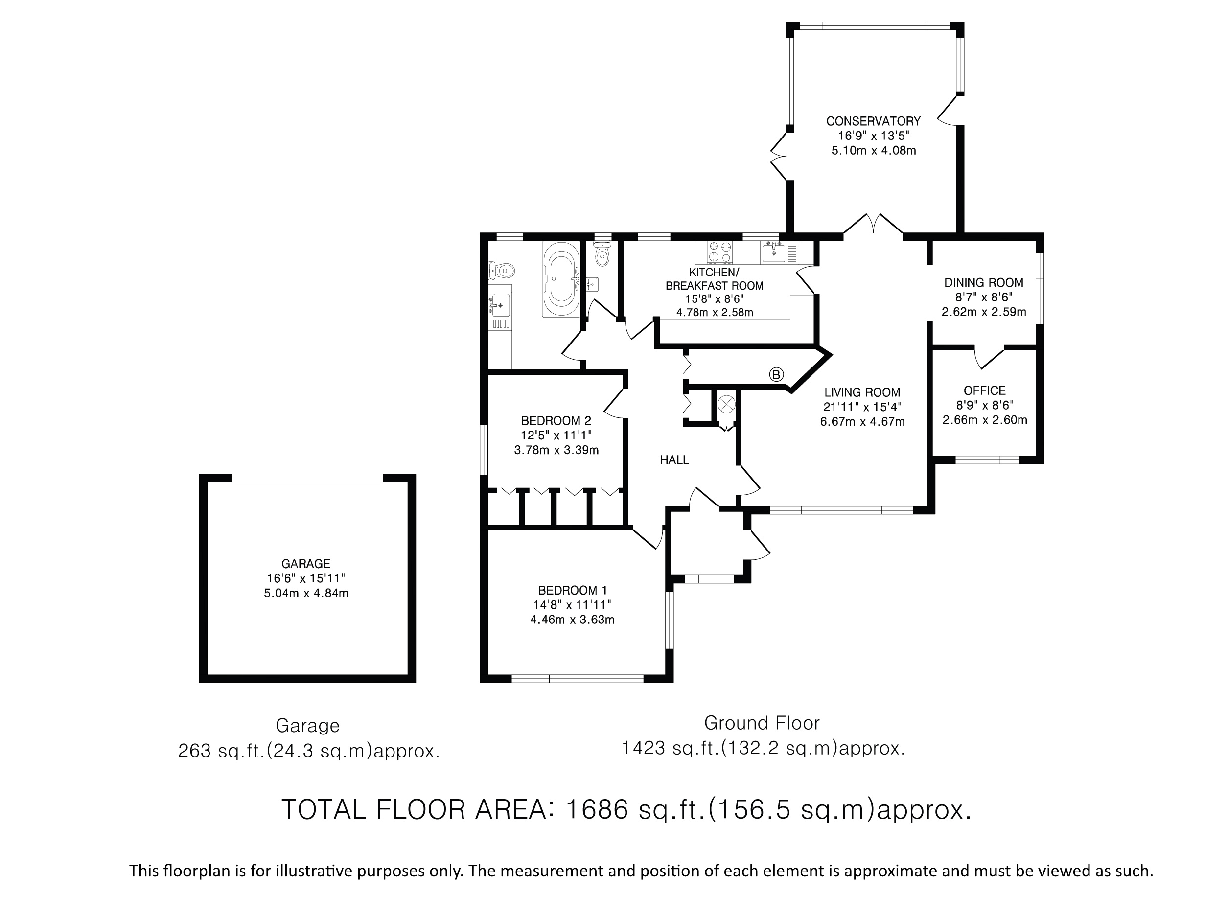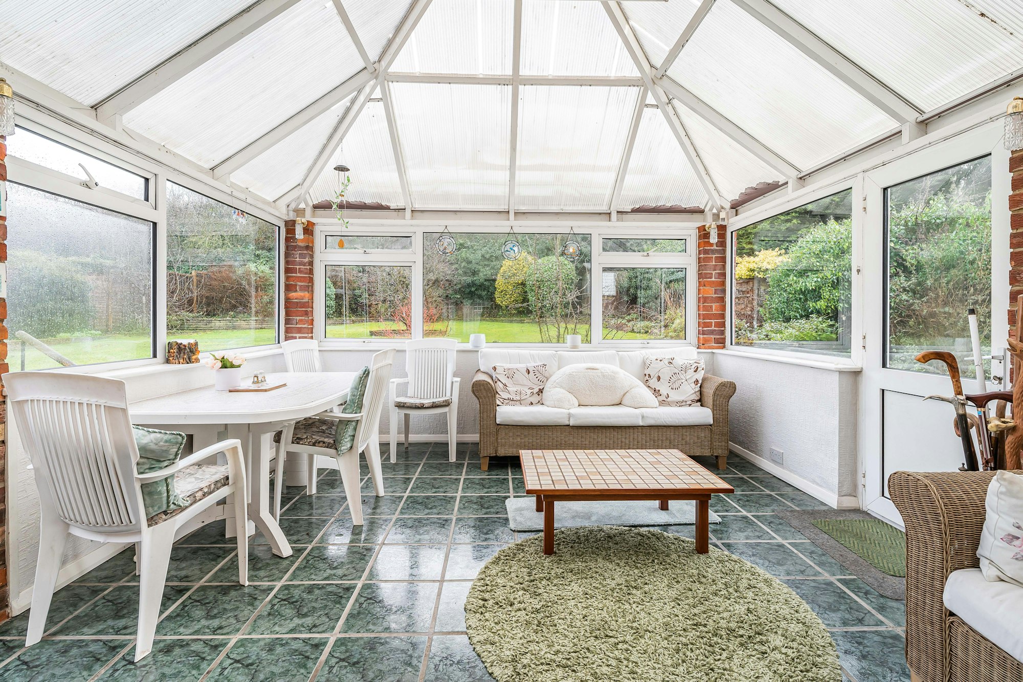 The property is approached via a long driveway with a bridge over the River Red (a tributary of the River Ver) and is well set back from the road on a private plot. The accommodation currently includes a large L shaped living room, which opens into a large conservatory at the rear. The living room also opens into a dining area with a bedroom/study just off. The kitchen/breakfast room is also located at the rear and overlooks the garden. There are two double bedrooms off the hallway served by a good size bathroom. A guest cloakroom completes the accommodation.
