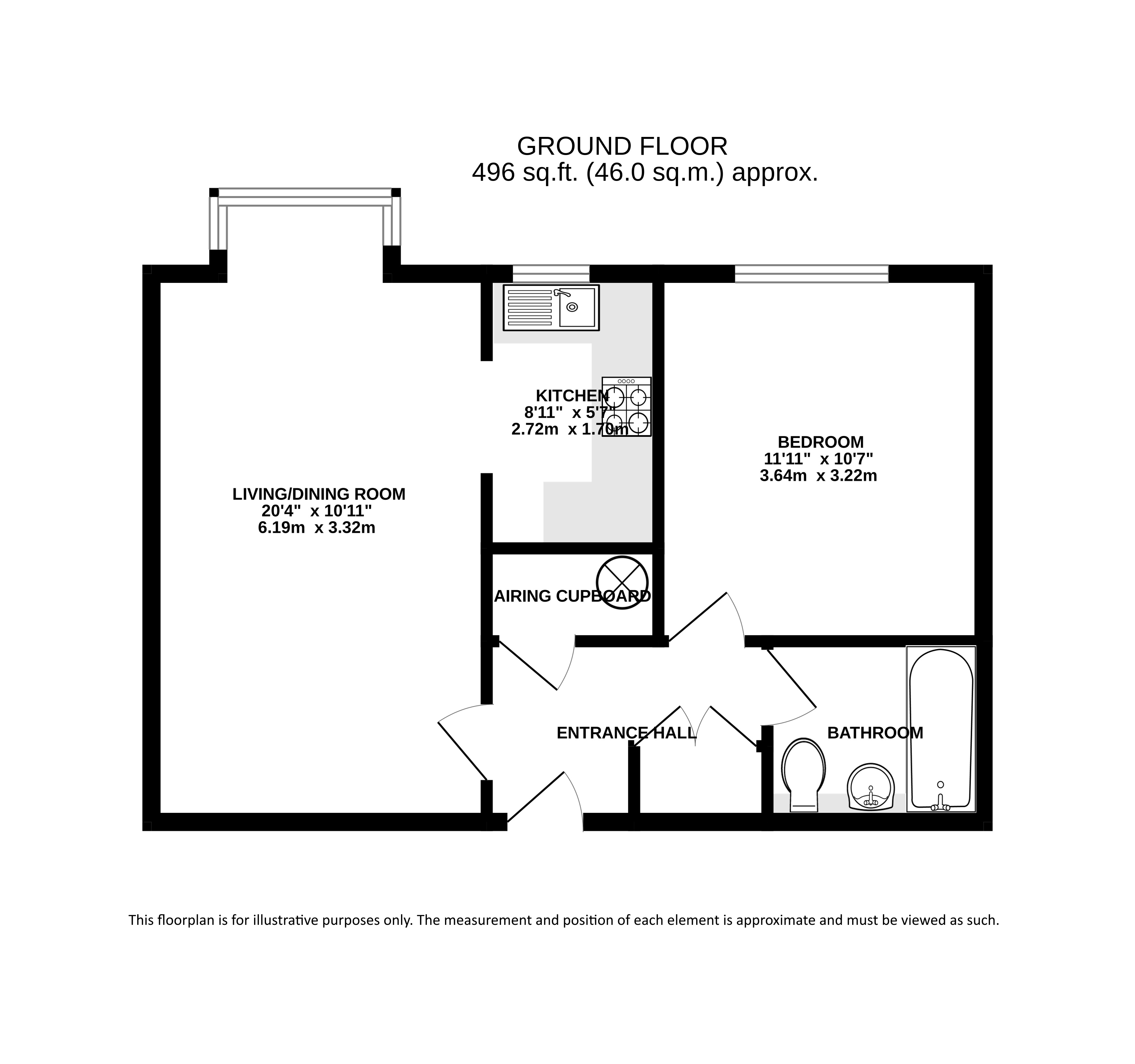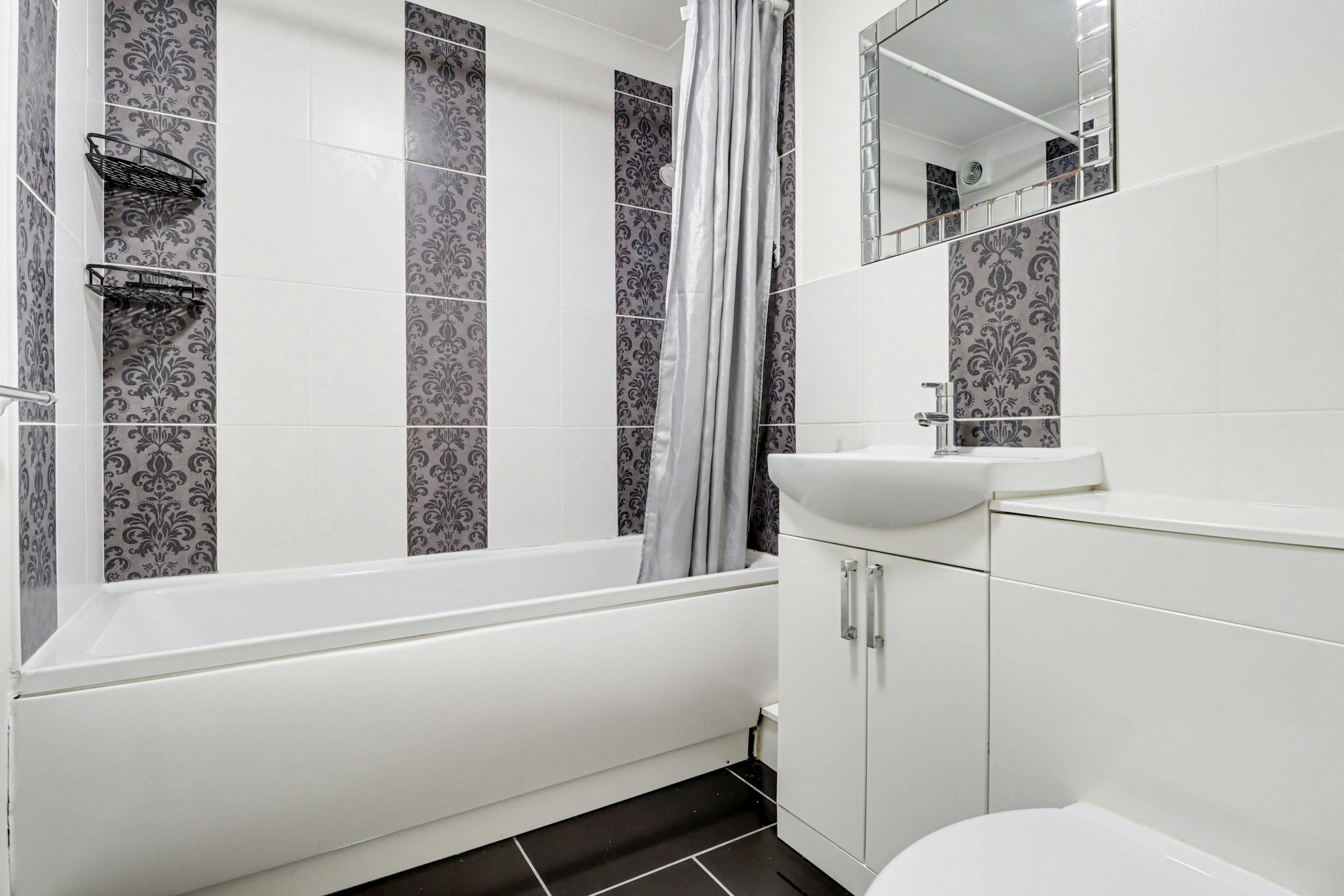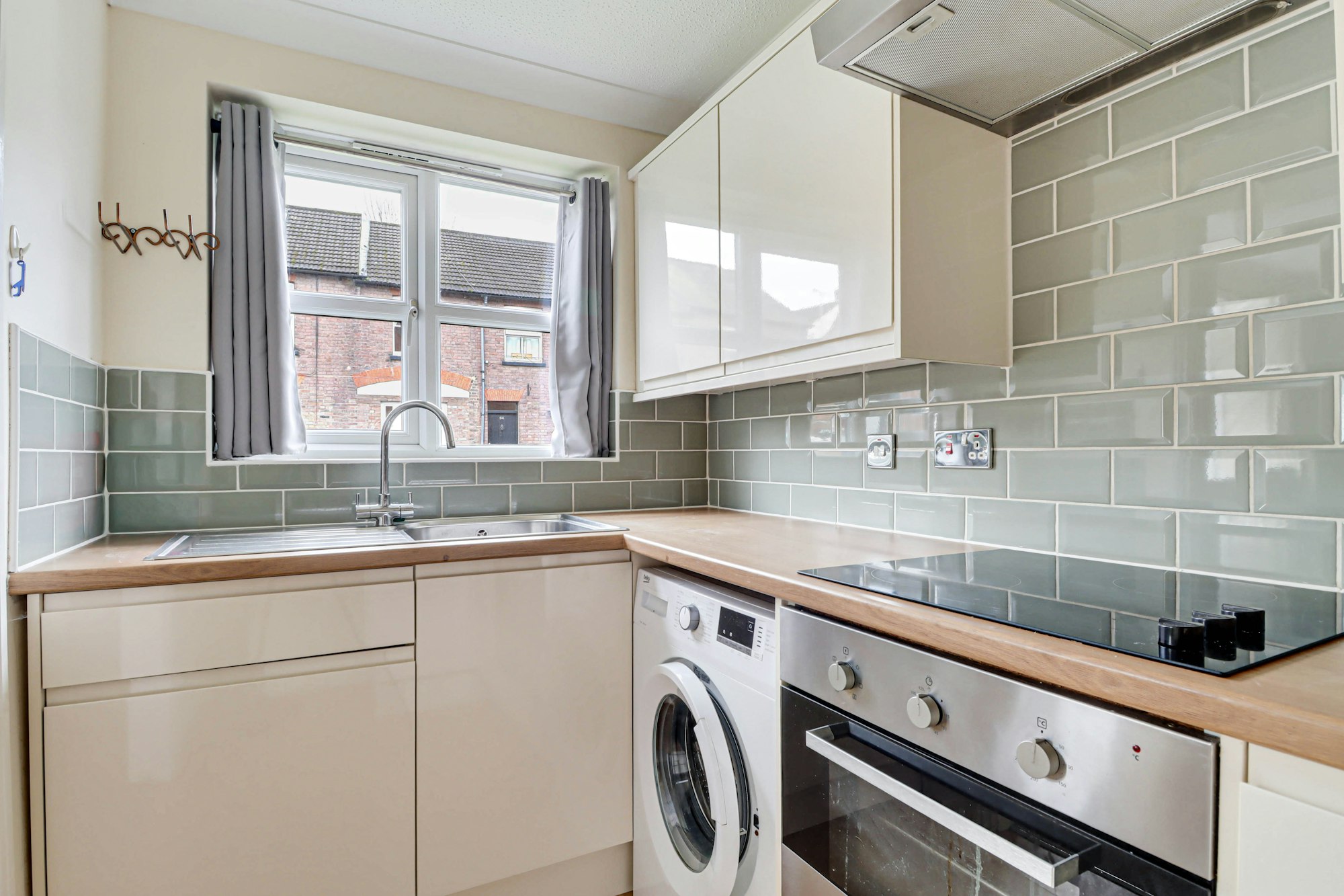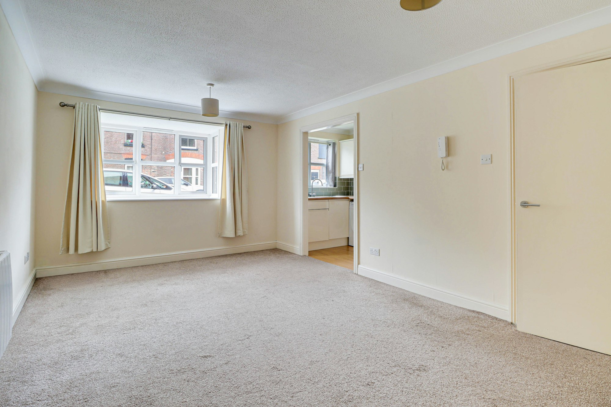 The well presented accommodation includes entrance hall with two storage cupboards leading into a large and spacious living room, which opens into a modern kitchen fitted with a range of stylish units with integrated oven and hob and space for a washing machine and fridge/freezer. A double bedroom is served by a good size modern bathroom with three-piece suite and shower over the bath.