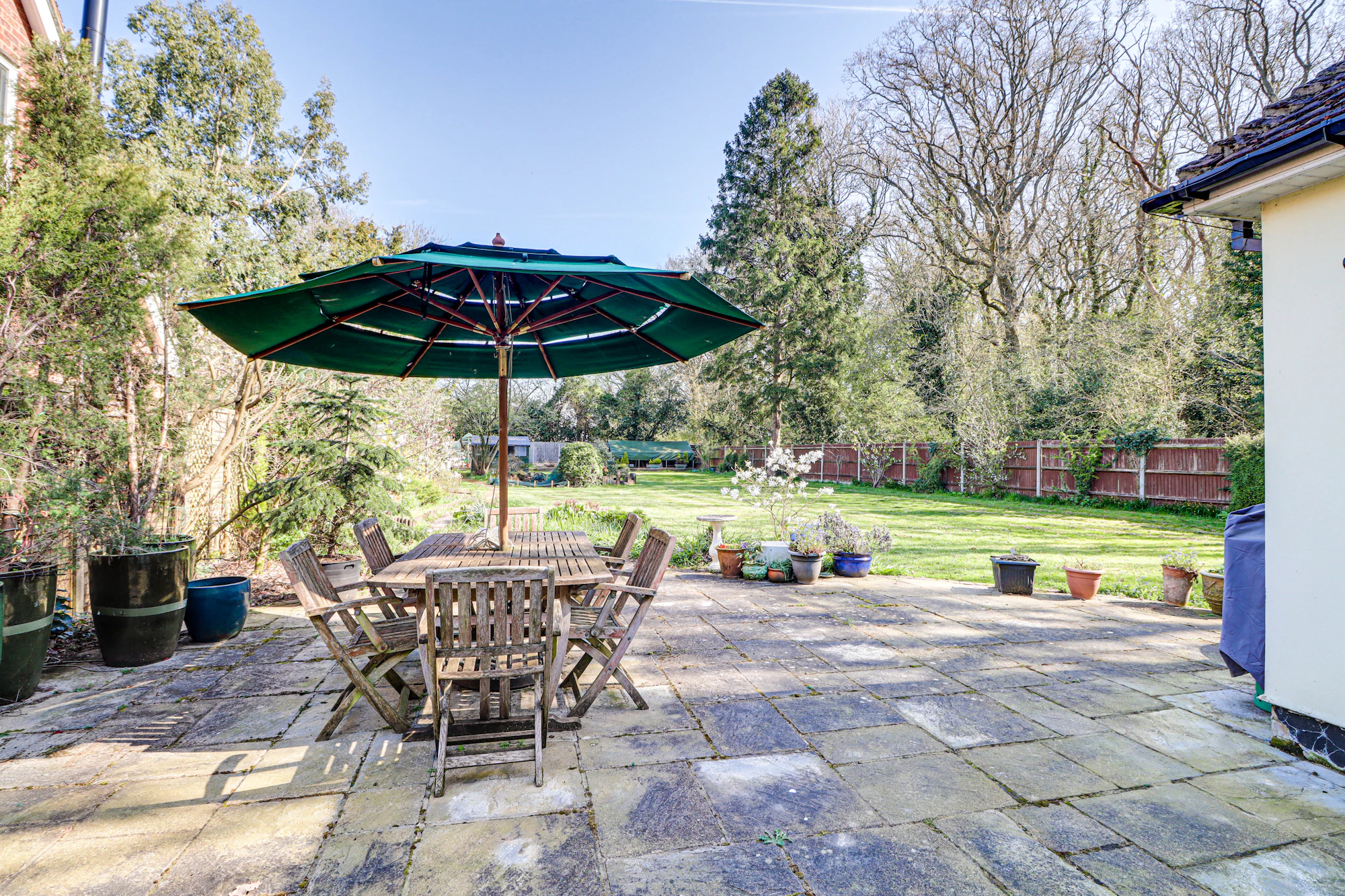Outside the rear garden is a particular feature of this property, wonderfully private and bordered by mature trees, it is mainly laid to lawn with a large patio seating area providing an ideal space for dining and entertaining family and friends. A timber shed offers external storage and there is also a greenhouse and feature pond.