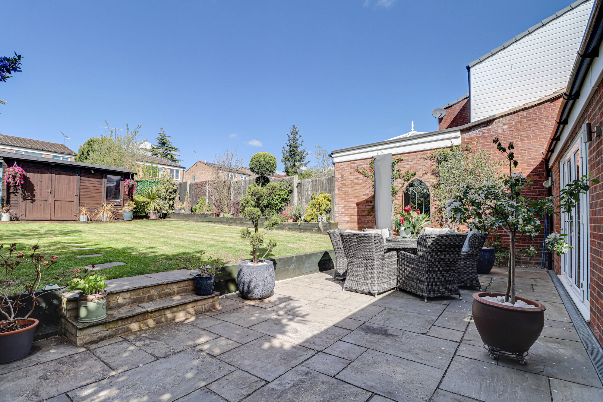 Outside, a block paved driveway provides ample off-street parking and leads to a small integral garage (which is ideal for storage). The sunny rear garden is attractively landscaped with patio seating area and raised lawn with large timber shed.