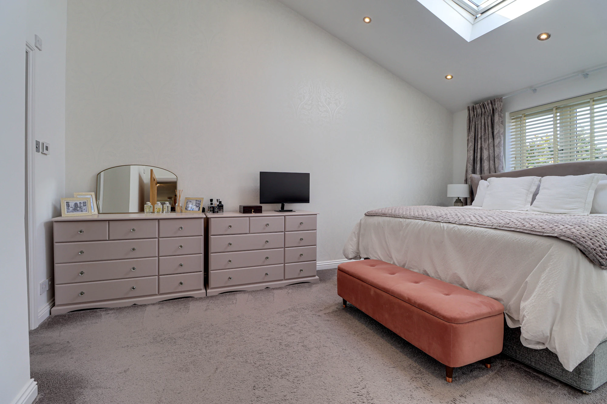 Upstairs there are four bedrooms. The principal bedroom is wonderfully light and benefits from a modern ensuite shower room. A further luxurious family bathroom serves the remaining bedrooms. Bedroom four is currently used as a dressing room and offers extensive fitted wardrobes.