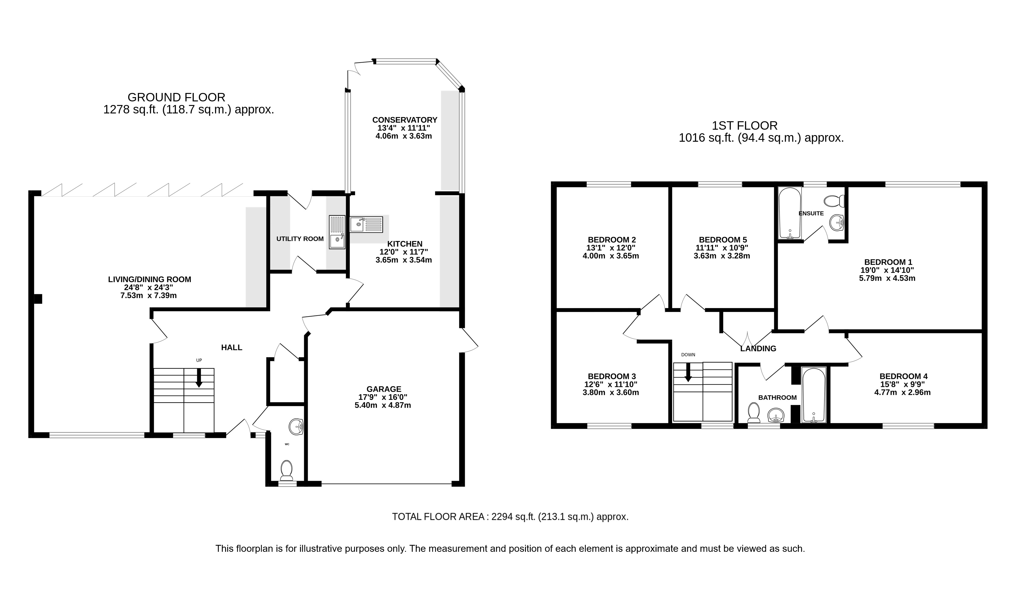 A rare opportunity to purchase an exceptional detached family home in a highly sought after position. The property has been extensively remodelled by the current owners to offer a high quality modern living space. Internally the reception hall is central to the house with guest cloakroom and staircase to the first floor. The open plan reception rooms are beautifully decorated and offer panoramic outlook over the west facing rear gardens. The modern fitted kitchen is intelligently designed with extensive units and workspace and is open plan to a delightful breakfast room/conservatory. There is also a modern refitted separate utility room with garden access. Upstairs there are five double bedrooms. The impressive master suite incorporates an ensuite bathroom and has delightful views over the extensive rear garden. The remaining bedrooms are served by the family bathroom. Outside the property enjoys a generous frontage, well screened from the road by a mature hedgerow. The gravelled drive provides off street parking for several cars and leads to the integrated double garage. The rear garden is a particular feature, extremely private and measuring 120ft in depth with a westerly aspect it has been well stocked by the current owners with a variety of lawned areas surrounded by flower and shrub borders and patio, an ornamental Japanese style water feature with bridge, garden storage and a greenhouse.