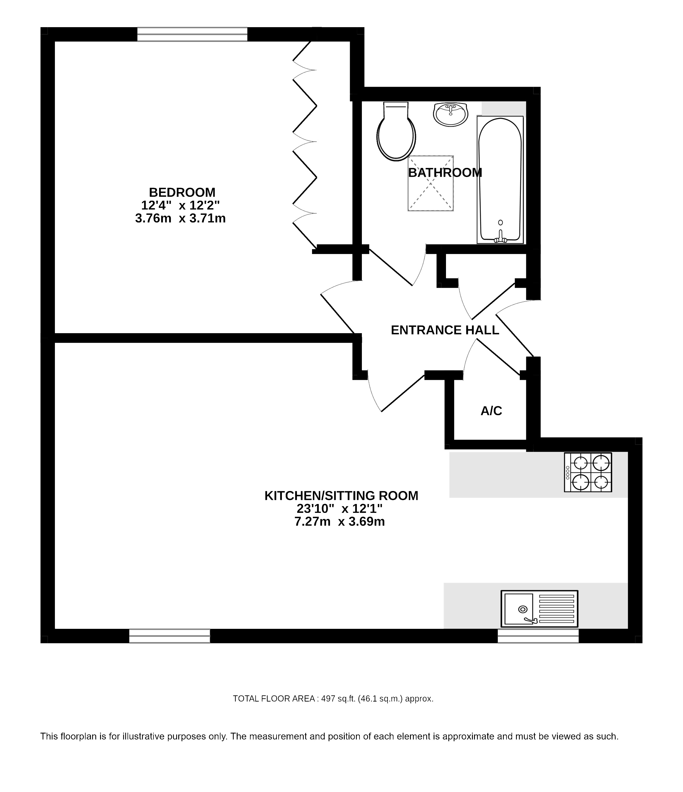 The light and airy accommodation includes a good size open plan living room/kitchen with wood flooring and views over St Mary's church. The kitchen is fully fitted with a stylish range of units and integrated appliances. There is a double bedroom with built-in wardrobes and a modern bathroom with bath/shower.