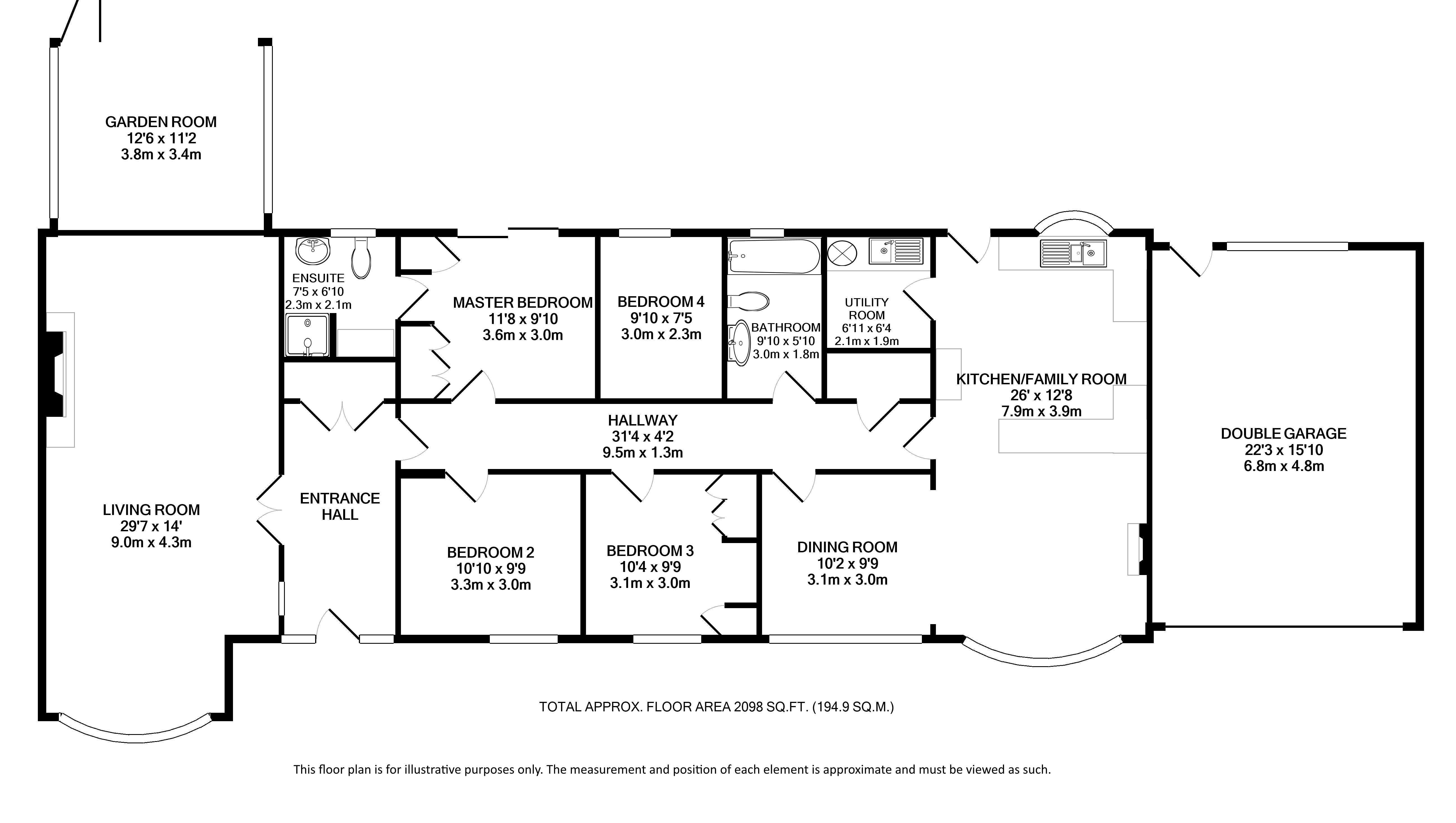 The bedroom accommodation is arranged centrally. The principal suite benefits from fitted wardrobes and a stylish en-suite shower room, while three further bedrooms (two doubles and a single) are served by a luxurious, fully tiled family bathroom.