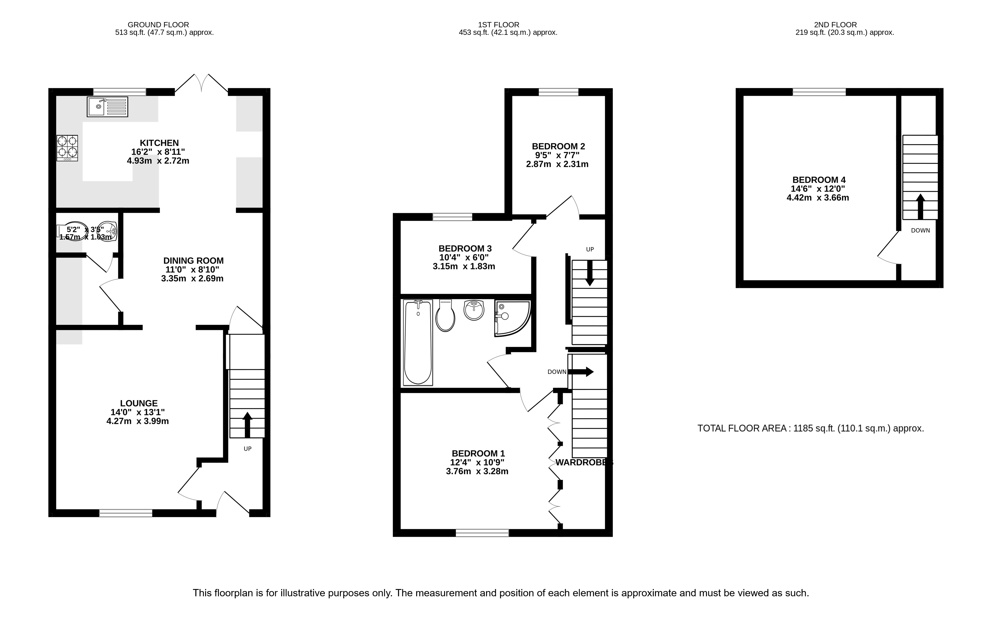 On the first floor are three good sized bedrooms, the main bedroom benefits from built-in wardrobes and walk in dresser area, and there is also a modern fitted bathroom with separate shower cubicle. On the second floor is a further double bedroom / study with views over the garden.