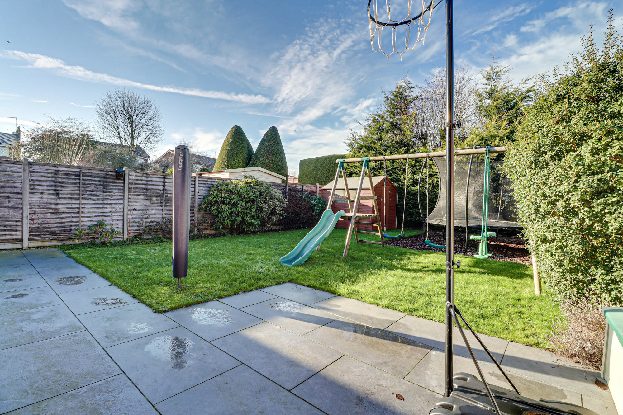 Outside to the front a block paved driveway provides ample off-street parking. The rear garden has been attractively landscaped and is west facing measuring approx. 45ft in depth.