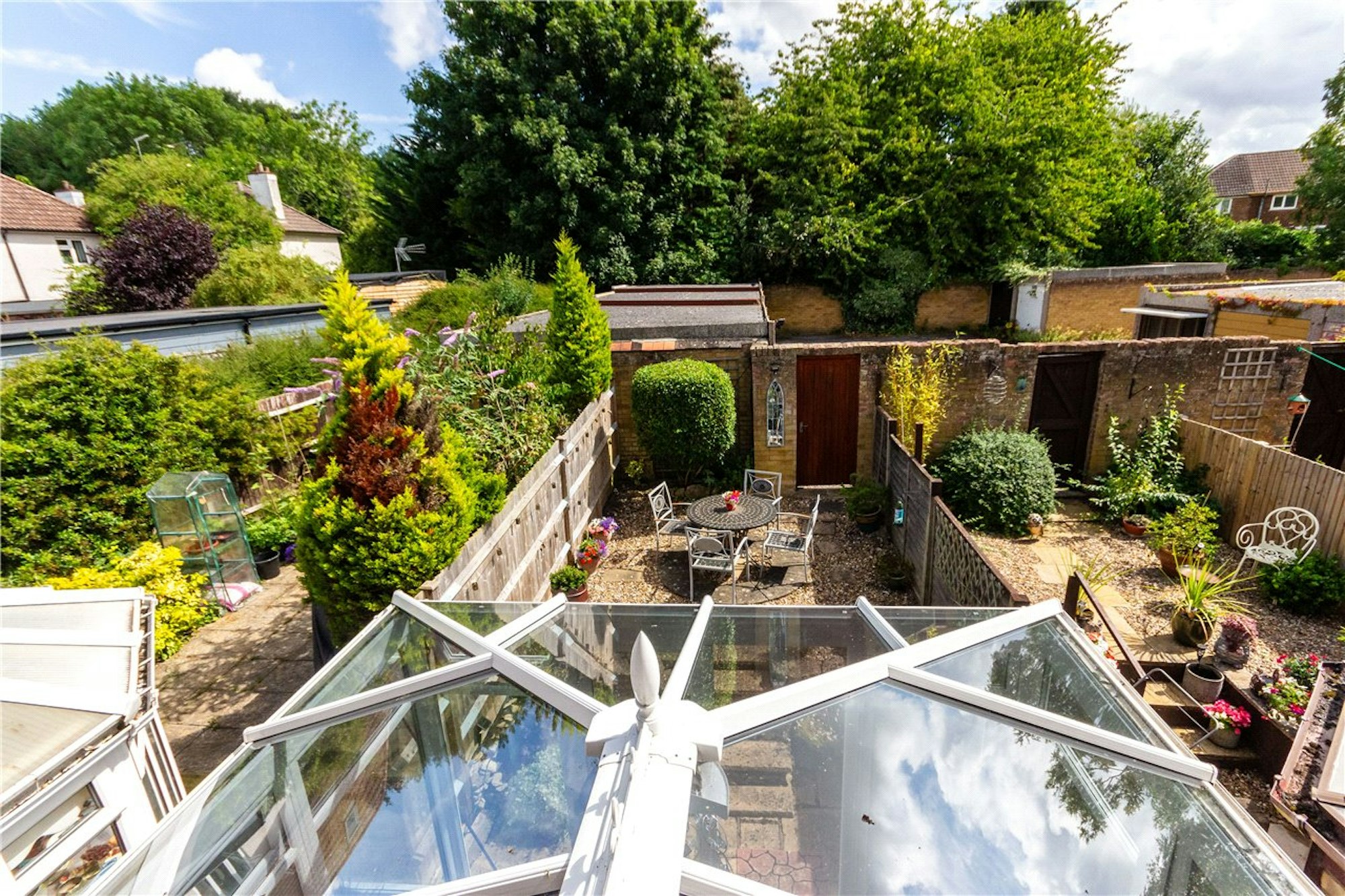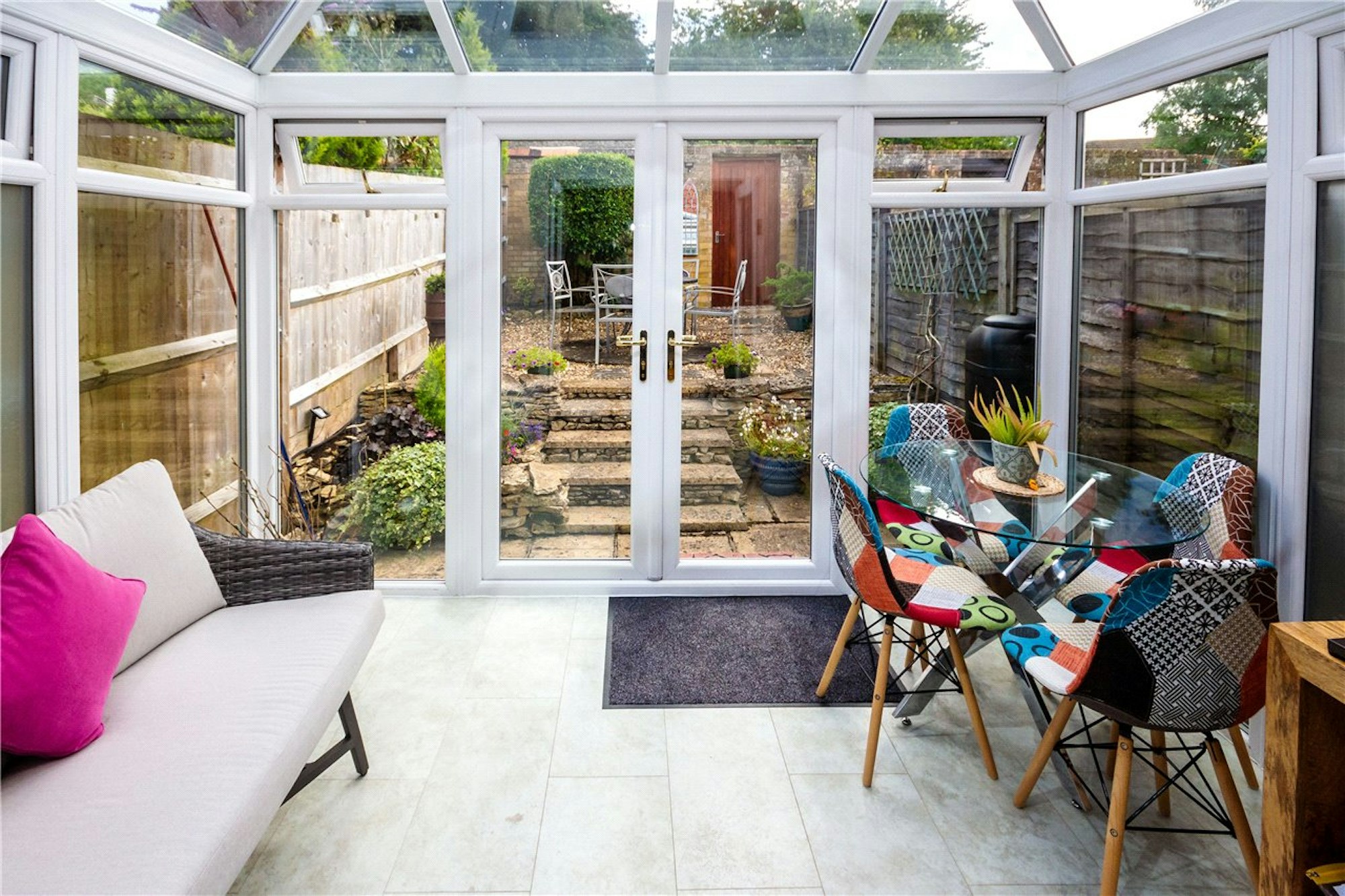 A newly fitted contemporary kitchen with breakfast bar opens into a spacious living room with doors leading through to a pretty conservatory overlooking the rear garden.