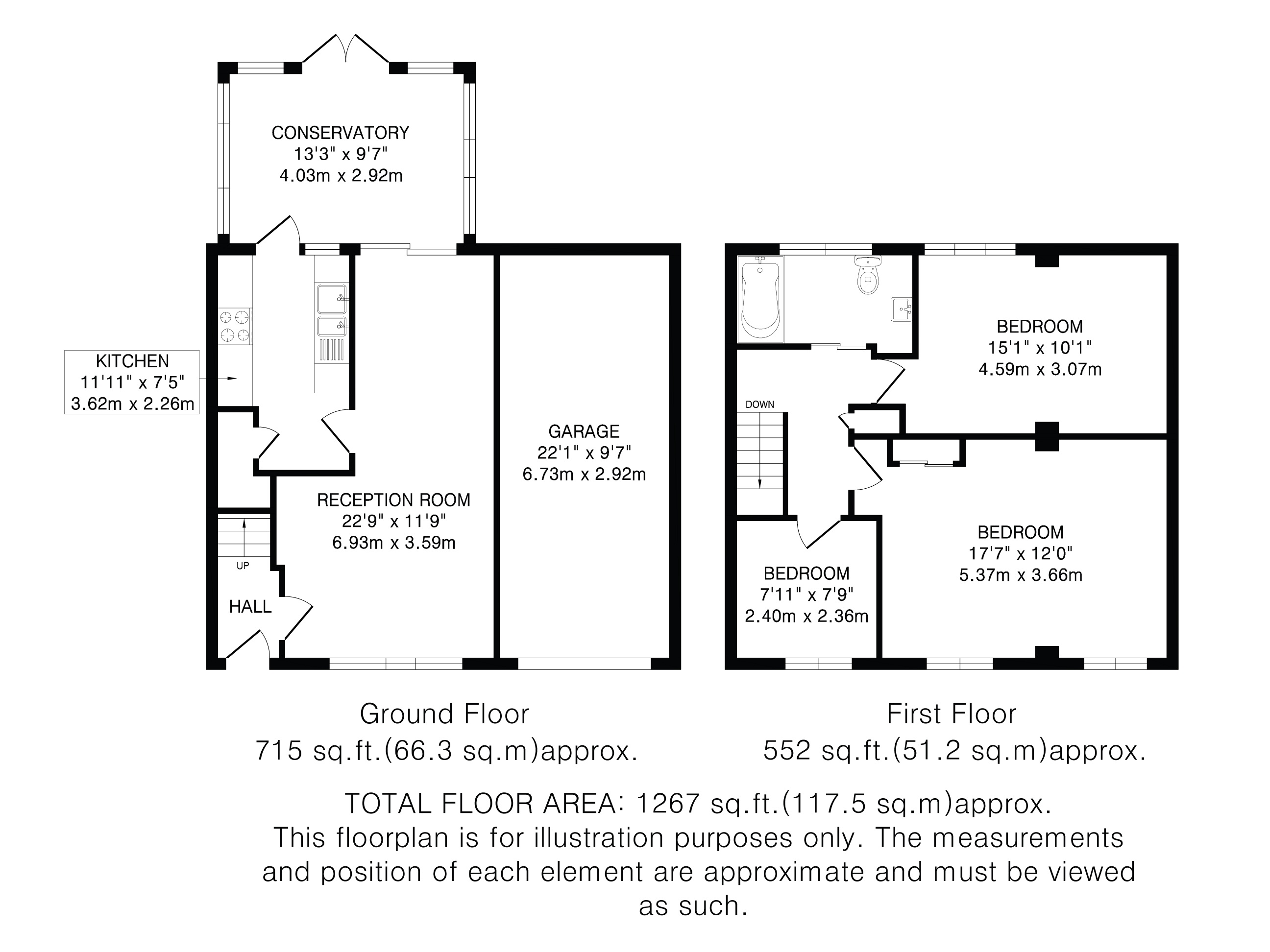 Upstairs, the largest bedroom benefits from a fitted wardrobe and all three are served by a family bathroom.