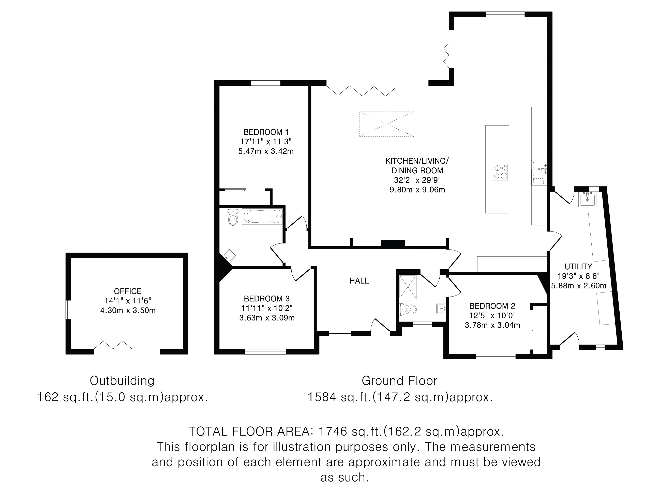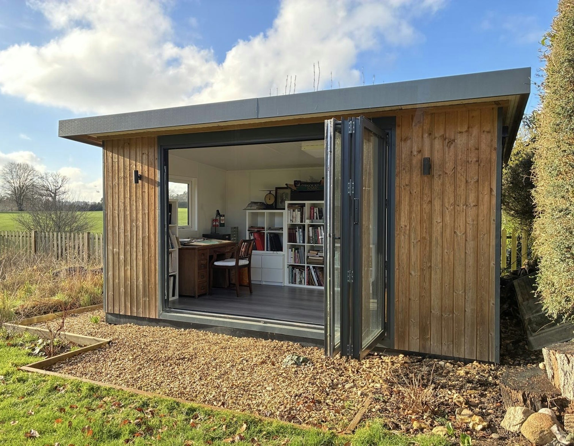 A modern office building is located in the attractive rear garden which happily enjoys the best of the afternoon and evening sunshine.
