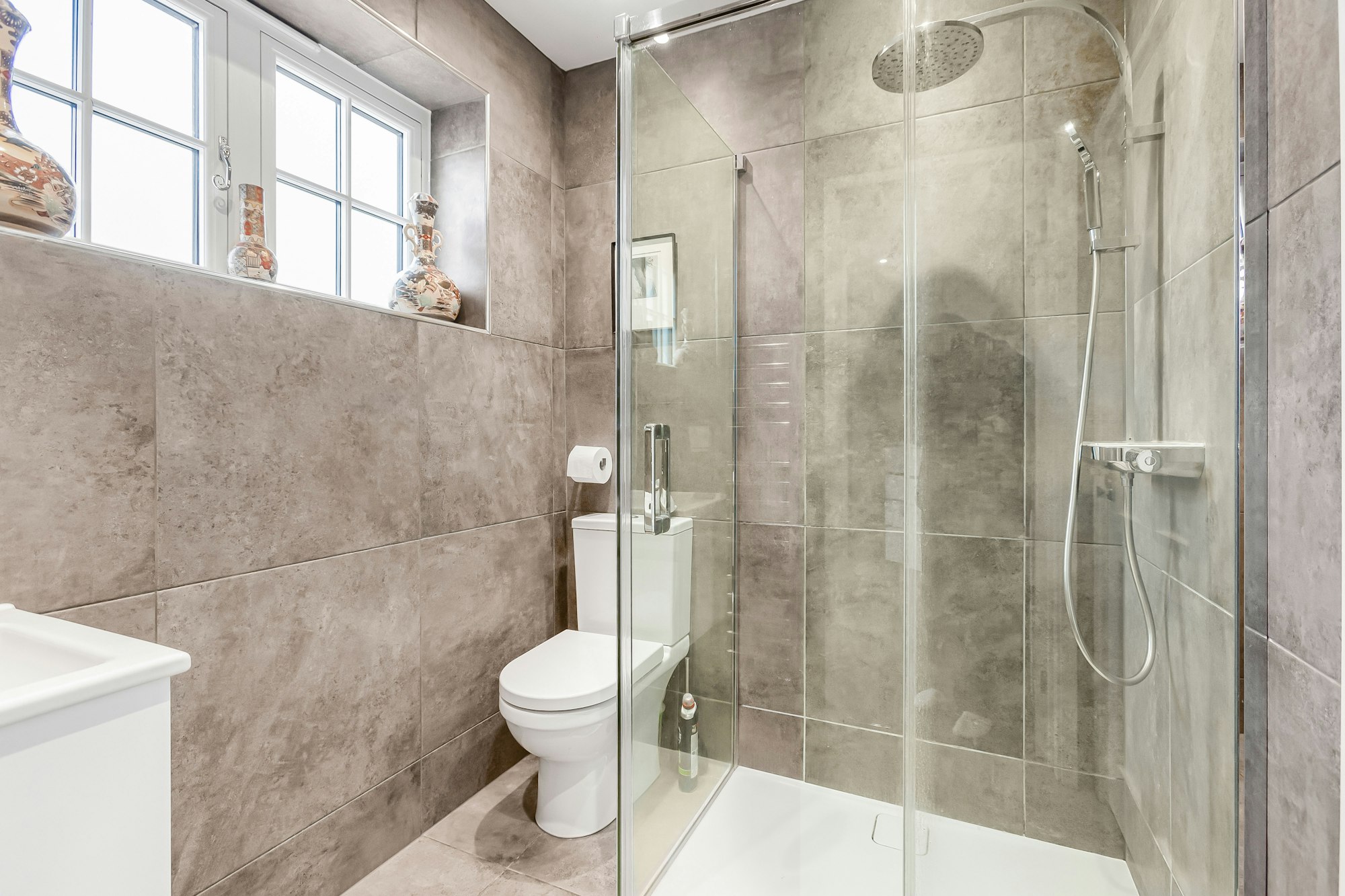 The main bedroom at the rear of the property, benefits from fitted wardrobes and enjoys delightful views of the garden and picturesque golf course beyond. This room and the third bedroom is served by a modern family bathroom. The separate shower room can be accessed from the hall as well as from the second bedroom at the front, which also has the advantage of fitted wardrobes.