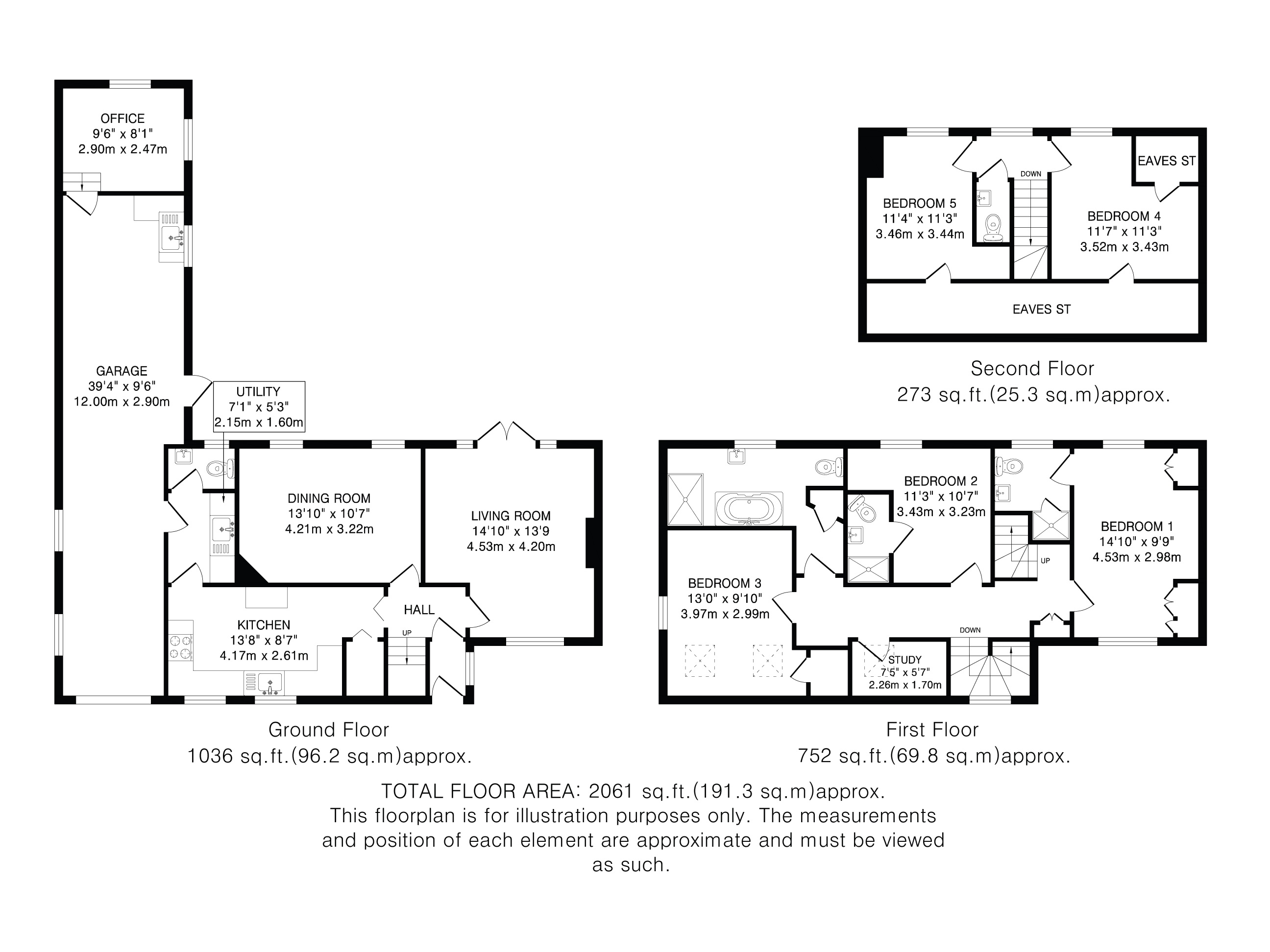 The dual-aspect, main bedroom suite is located on the first floor and boasts fitted wardrobes and a fully tiled en-suite shower room. On this floor there are two further double bedrooms (one with stylish en-suite), a study and a fully tiled, modern family bathroom with deep, free-standing bath tub, walk-in shower and a heated towel rail.