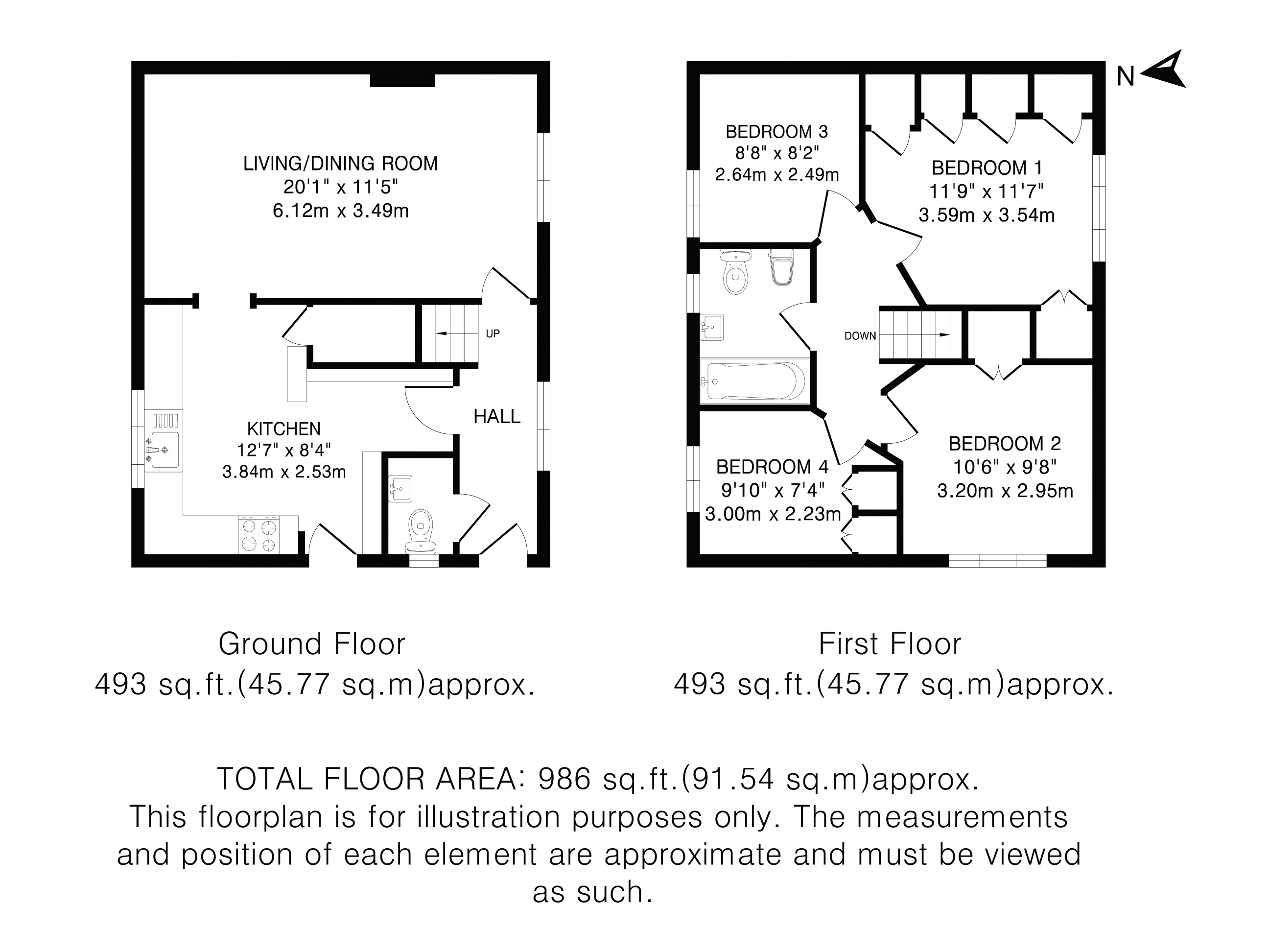 The ground floor accommodation comprises a separate kitchen, a spacious living room, and a convenient downstairs WC. Upstairs, there are four well-sized bedrooms and a family bathroom.