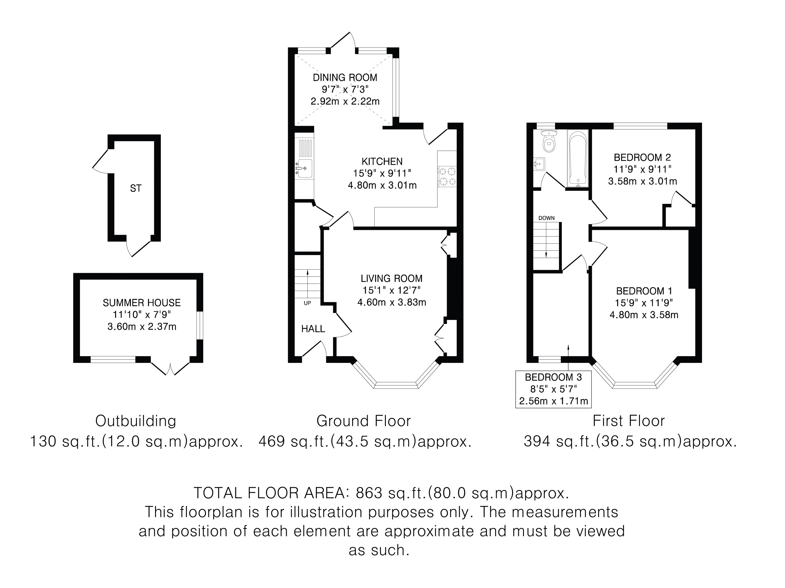 Upstairs, a newly refurbished family bathroom with built-in storage serves three bedrooms. The largest bedroom has a deep, wide bay window and there is a fitted cupboard in the second bedroom.
