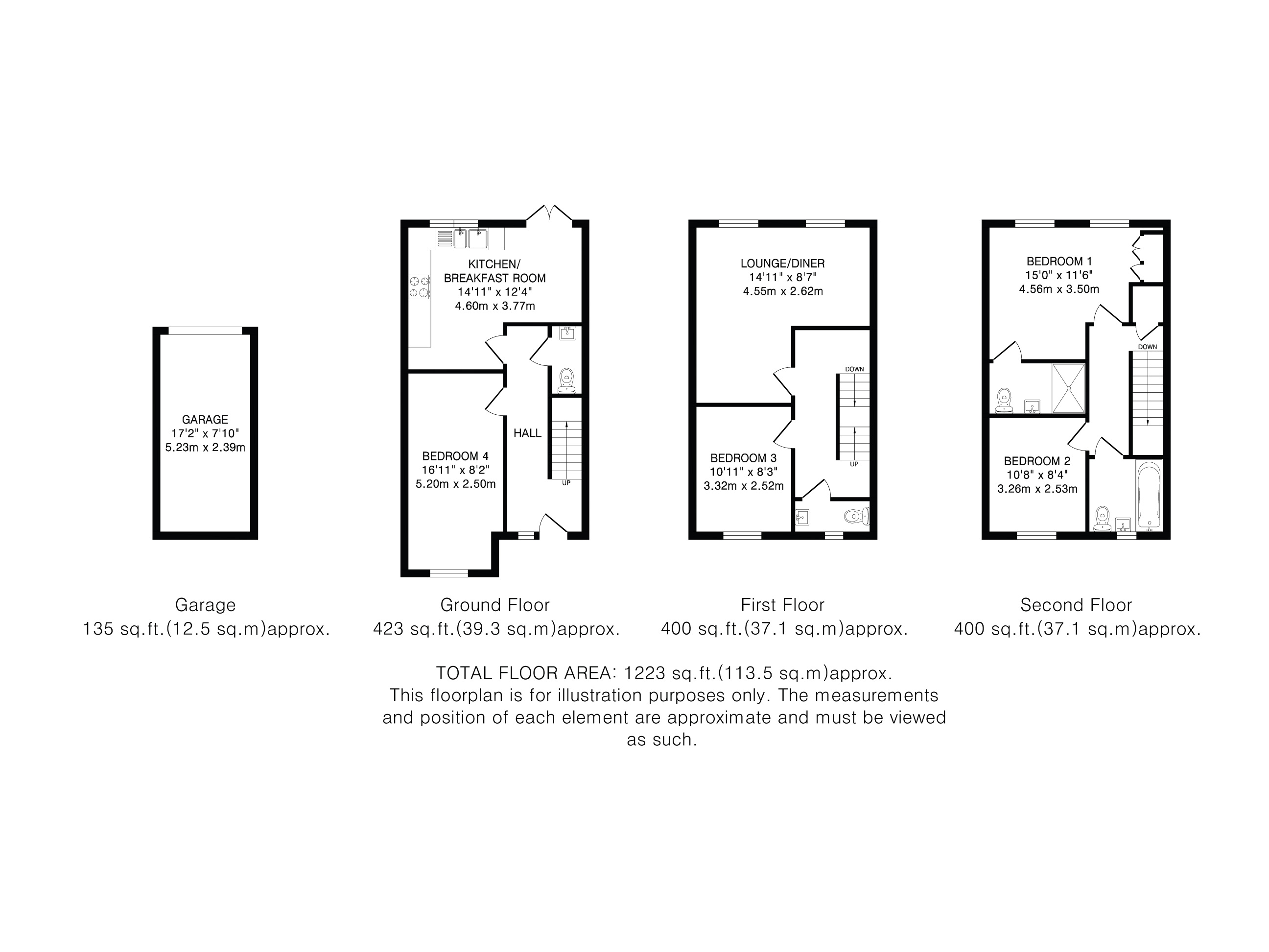 The ground floor features a modern fitted kitchen with ample storage and space for a breakfast table - perfect for informal dining. An additional reception room on this level provides flexible living space and can be used as a formal dining room, home office, or a fourth bedroom, depending on your needs, along with a useful guest cloakroom.