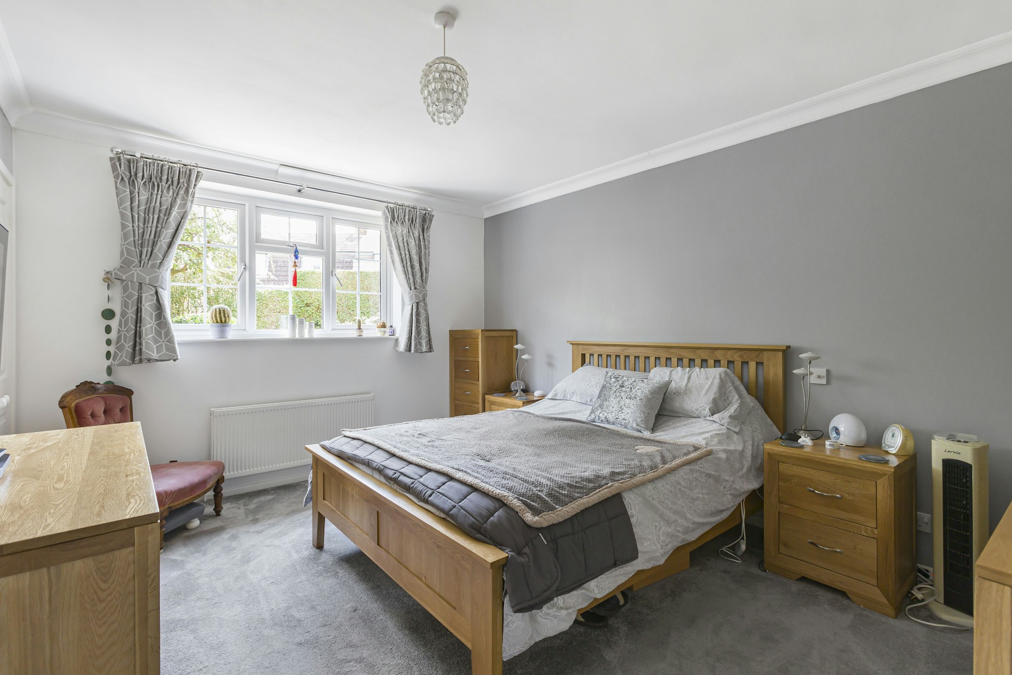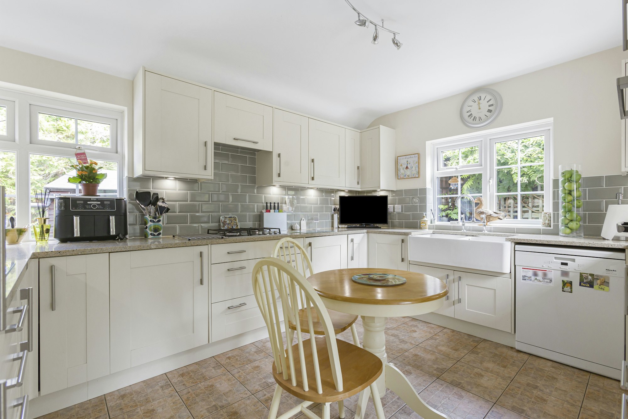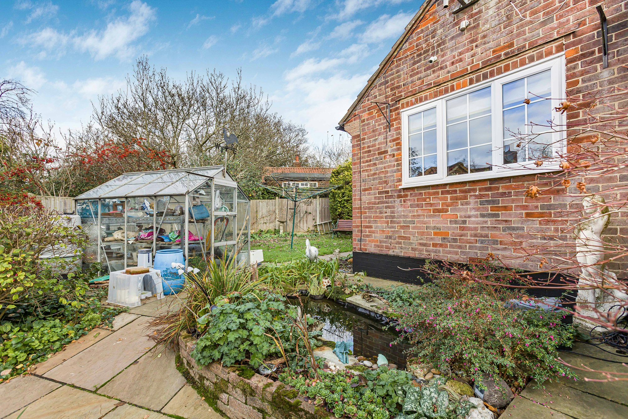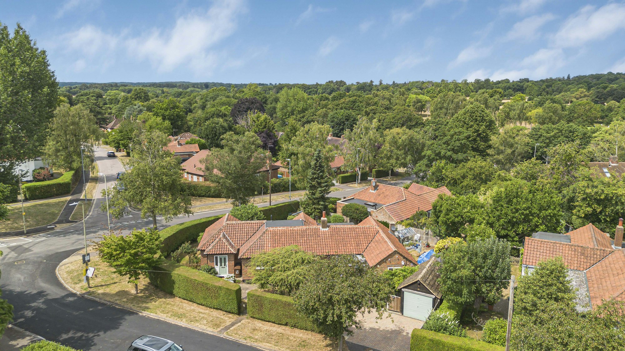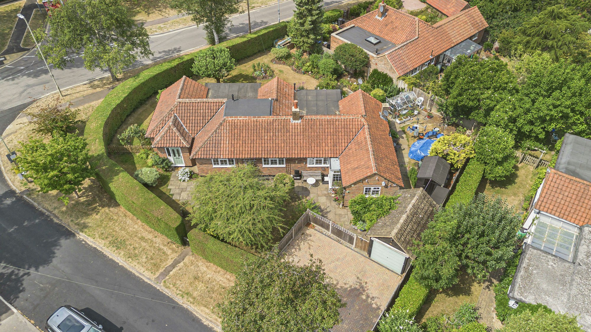 The main entrance to the bungalow is via a porch which leads directly into a spacious, dual-aspect reception room with patio doors leading out onto a pretty patio and garden beyond. The hallway is accessed from this bright room, presenting doors to the left to a kitchen, family bathroom and separate shower room, with two bedrooms opposite, the largest of which benefits from two deep fitted double wardrobes.
