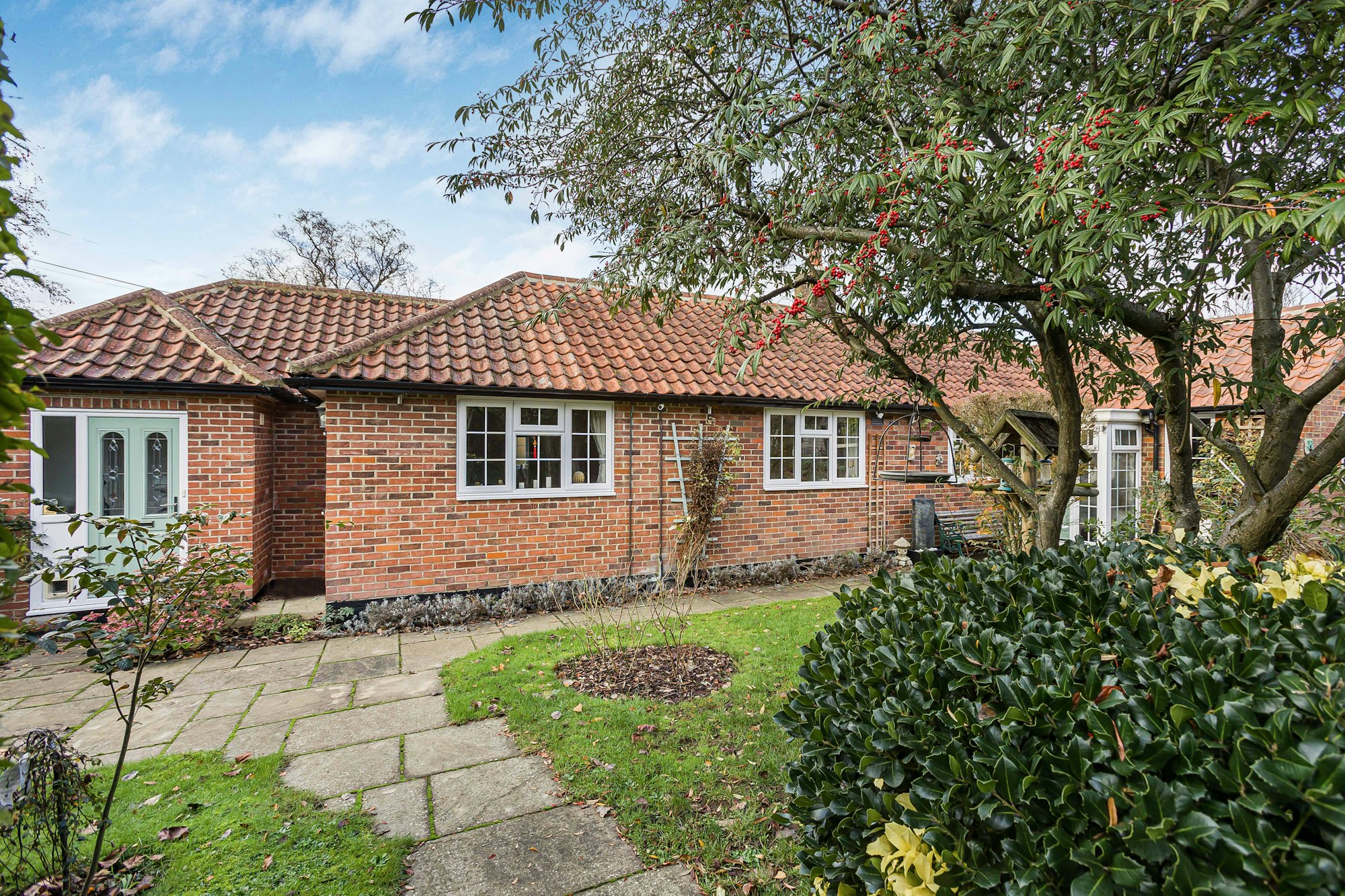 The property's most generous reception room lies beyond, currently divided into a bright living room with access to the delightful garden and an elegant dining room to the front. A door leads from the dining room into a second hallway, off of which the second bedroom and the large family kitchen is accessed, as well as a useful utility room. Conveniently, a second porch and entrance to the bungalow is located adjacent to the main kitchen.