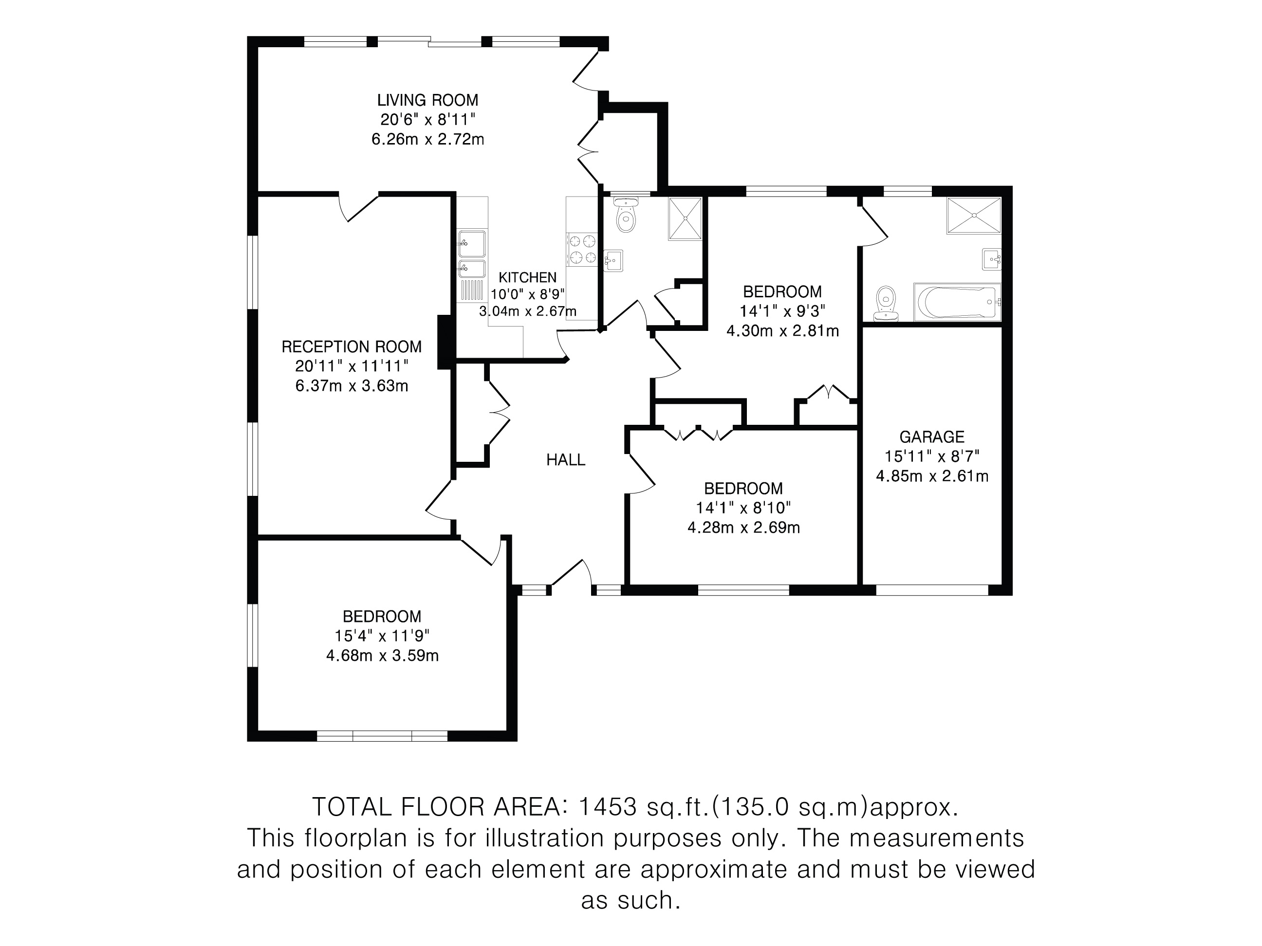 Upon entering, a broad and inviting entrance hall unfolds, featuring useful cloakroom cupboards and an immediate sense of space and light. To the right, a well-appointed double bedroom with fitted wardrobes offers comfort and functionality—ideal for guests or family. Opposite, to the left of the hall, lies a particularly spacious dual-aspect bedroom, filled with natural light and offering flexibility in its use.