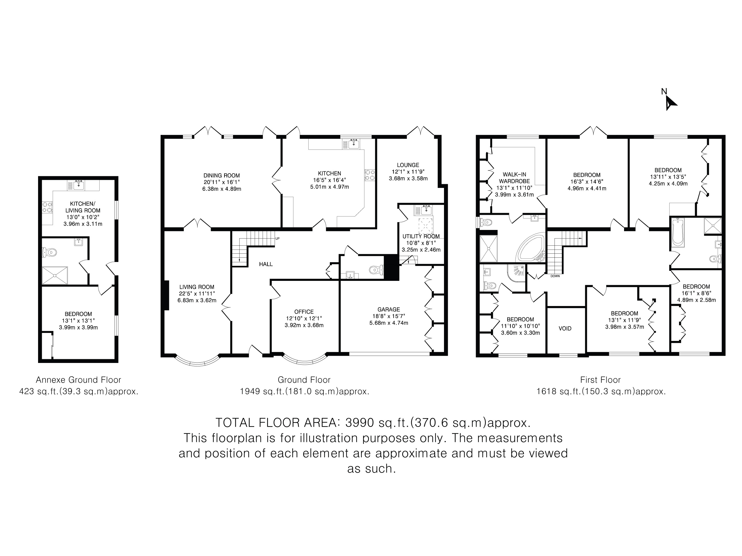 The first floor boasts five well-proportioned bedrooms, including a luxurious principal suite with a walk-in wardrobe and an adjoining en suite bathroom. The remaining bedrooms are served by a spacious family bathroom, making this floor both comfortable and practical for larger families.