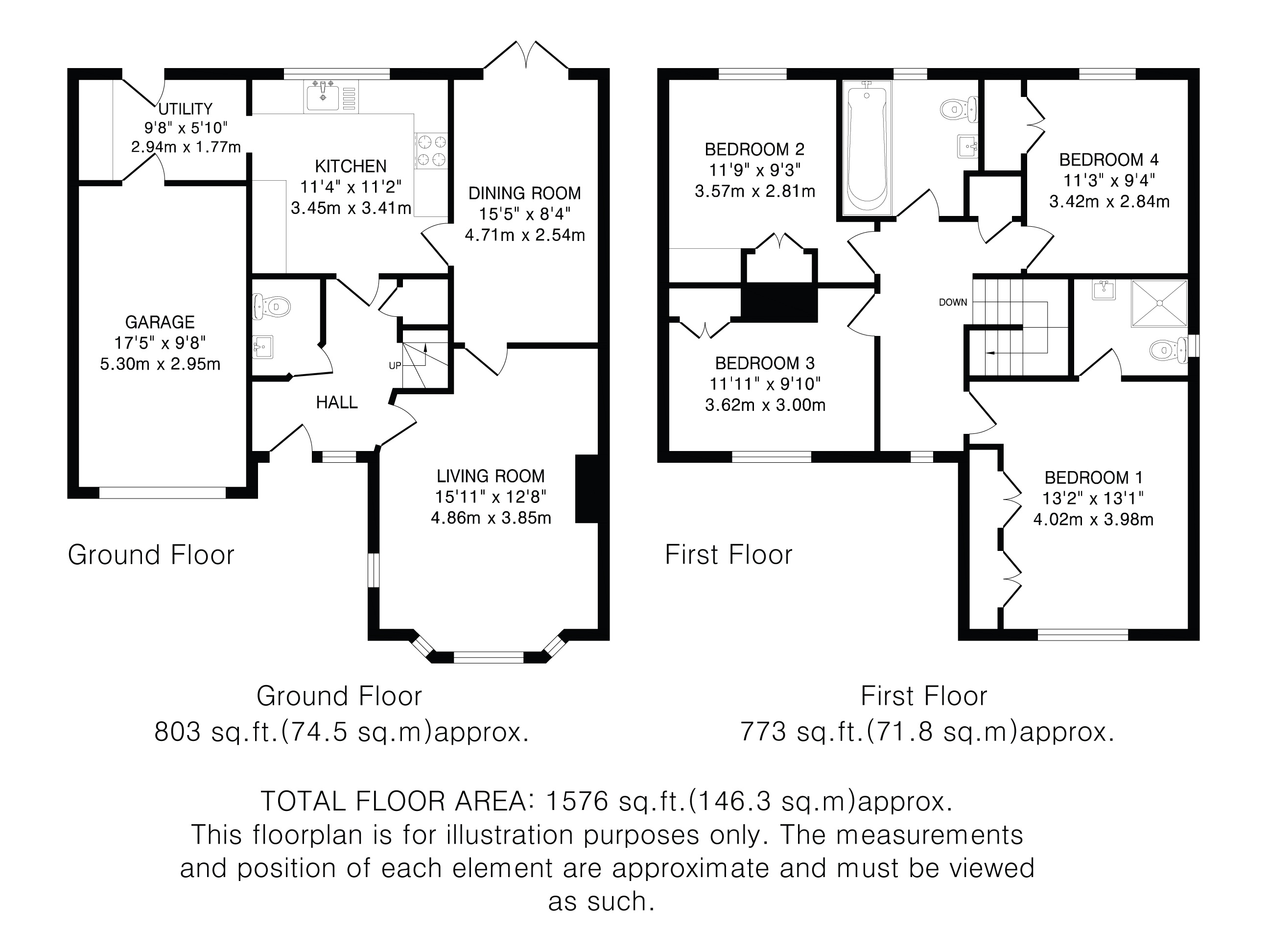 Upstairs, there are four generously sized bedrooms, all featuring fitted wardrobes, ensuring excellent storage throughout. The principal bedroom boasts a private en-suite shower room, while the remaining bedrooms are served by a stylish family bathroom.