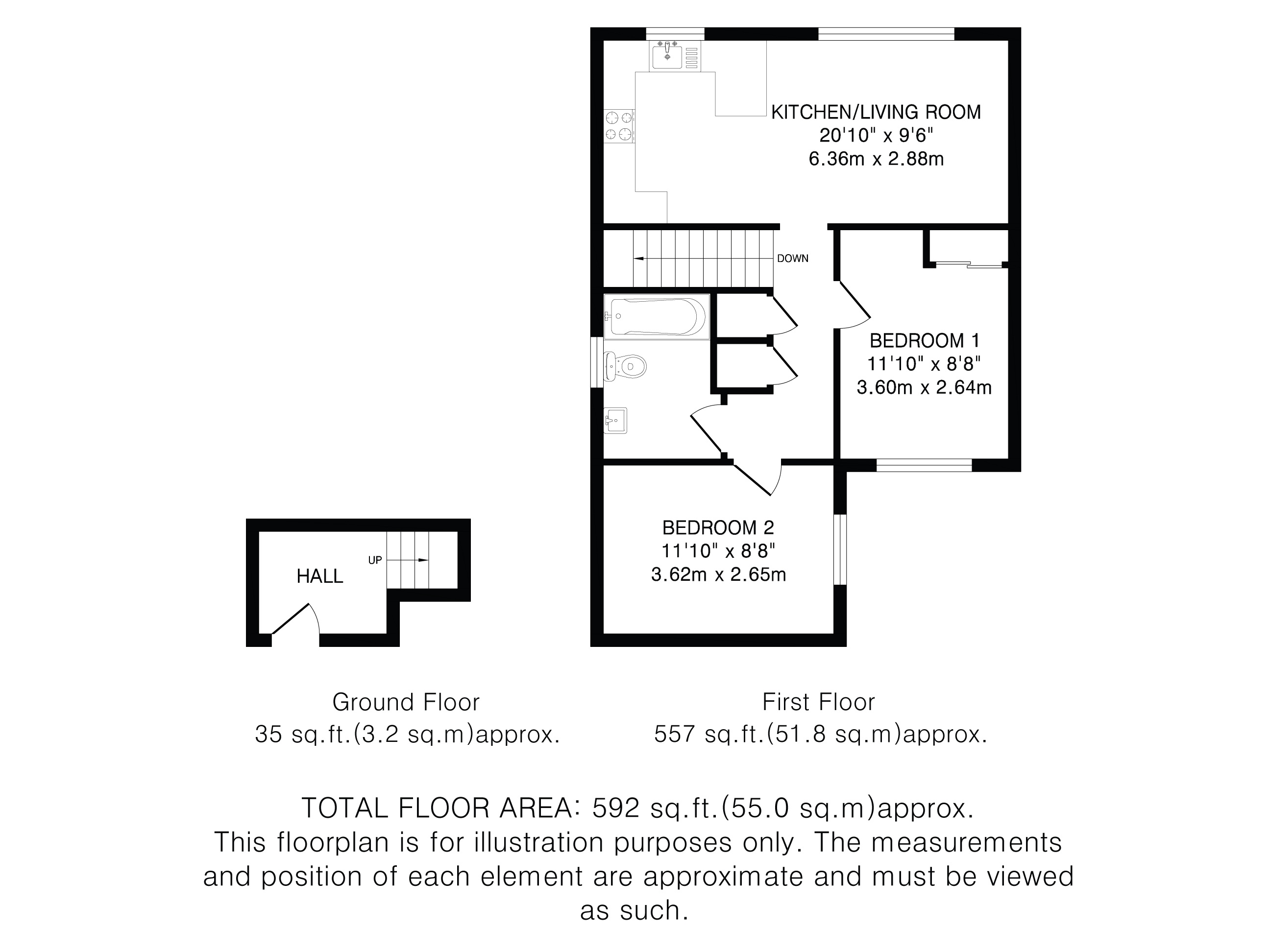 Accessed via its own private entrance, the home opens to a staircase leading to a bright and spacious main living area. Tastefully decorated in modern, neutral tones throughout, the property boasts a thoughtfully designed layout that includes two generously proportioned double bedrooms.