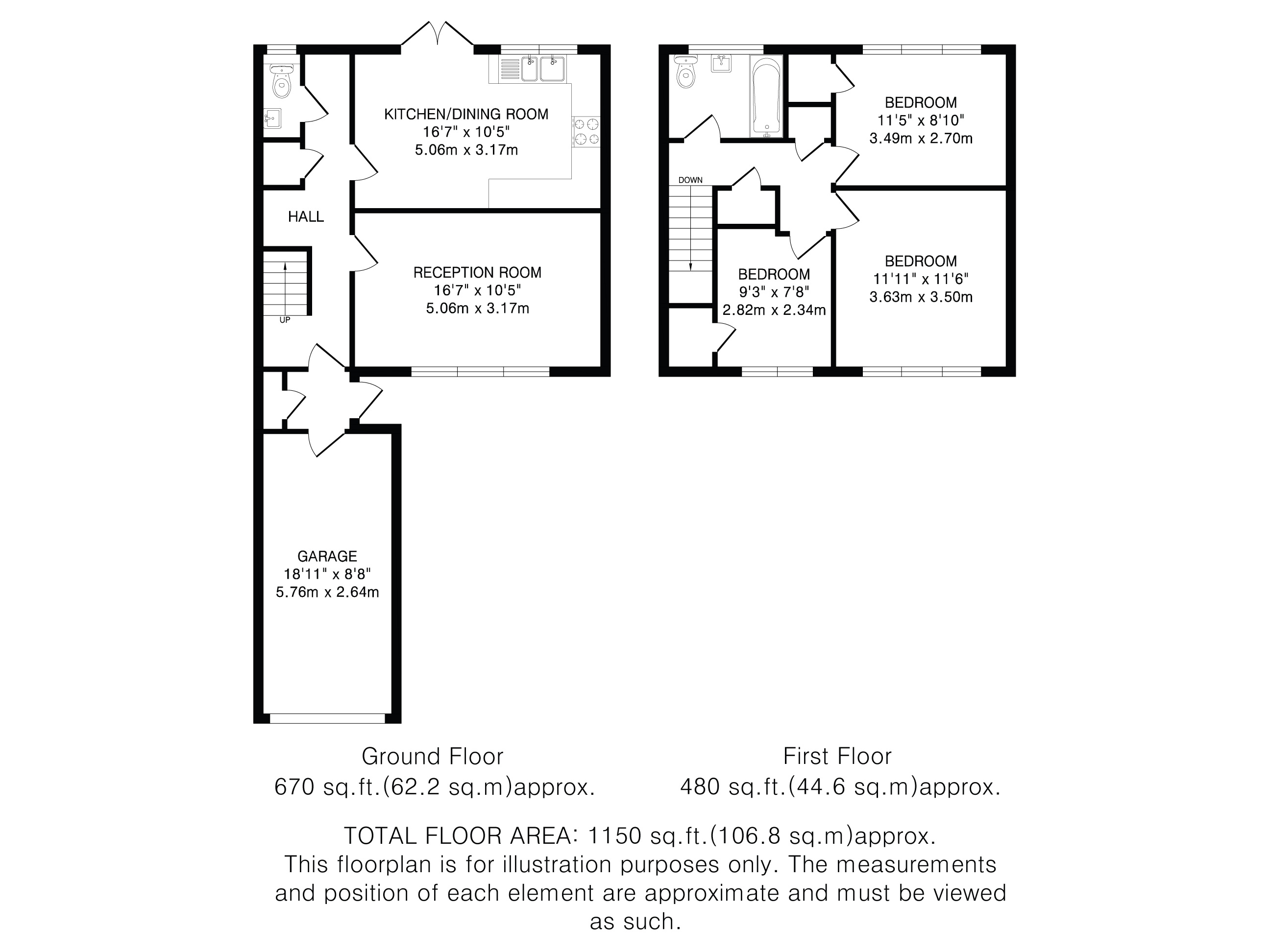 A convenient downstairs WC complements the main family bathroom, which serves all three bedrooms upstairs.