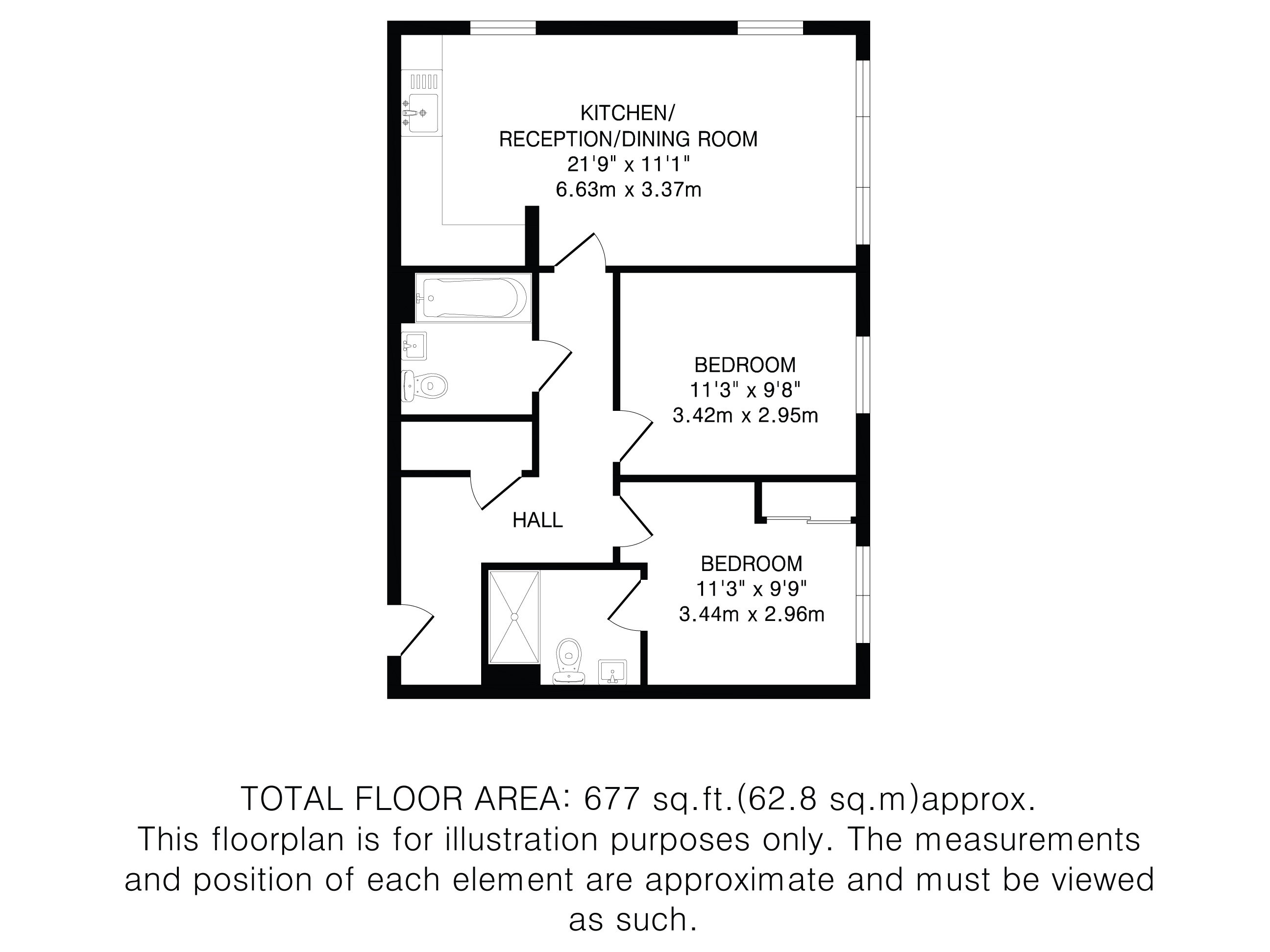The principal bedroom features built-in wardrobes and a sleek en-suite shower room, while the second generously sized double bedroom is served by a pristine family bathroom with a modern white three-piece suite.