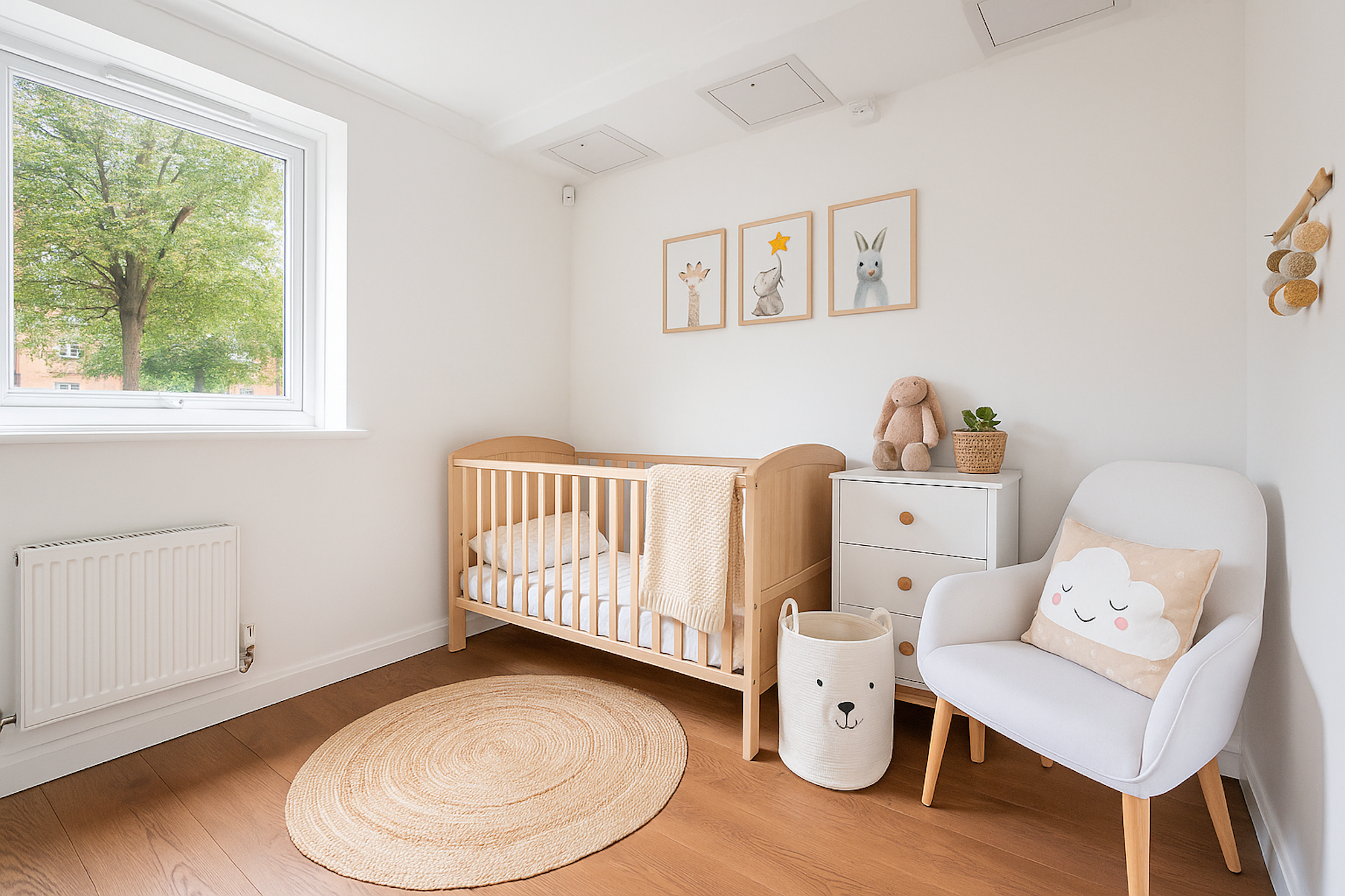 Please note the second bedroom nursery photo has been AI generated for illustrative purposes.