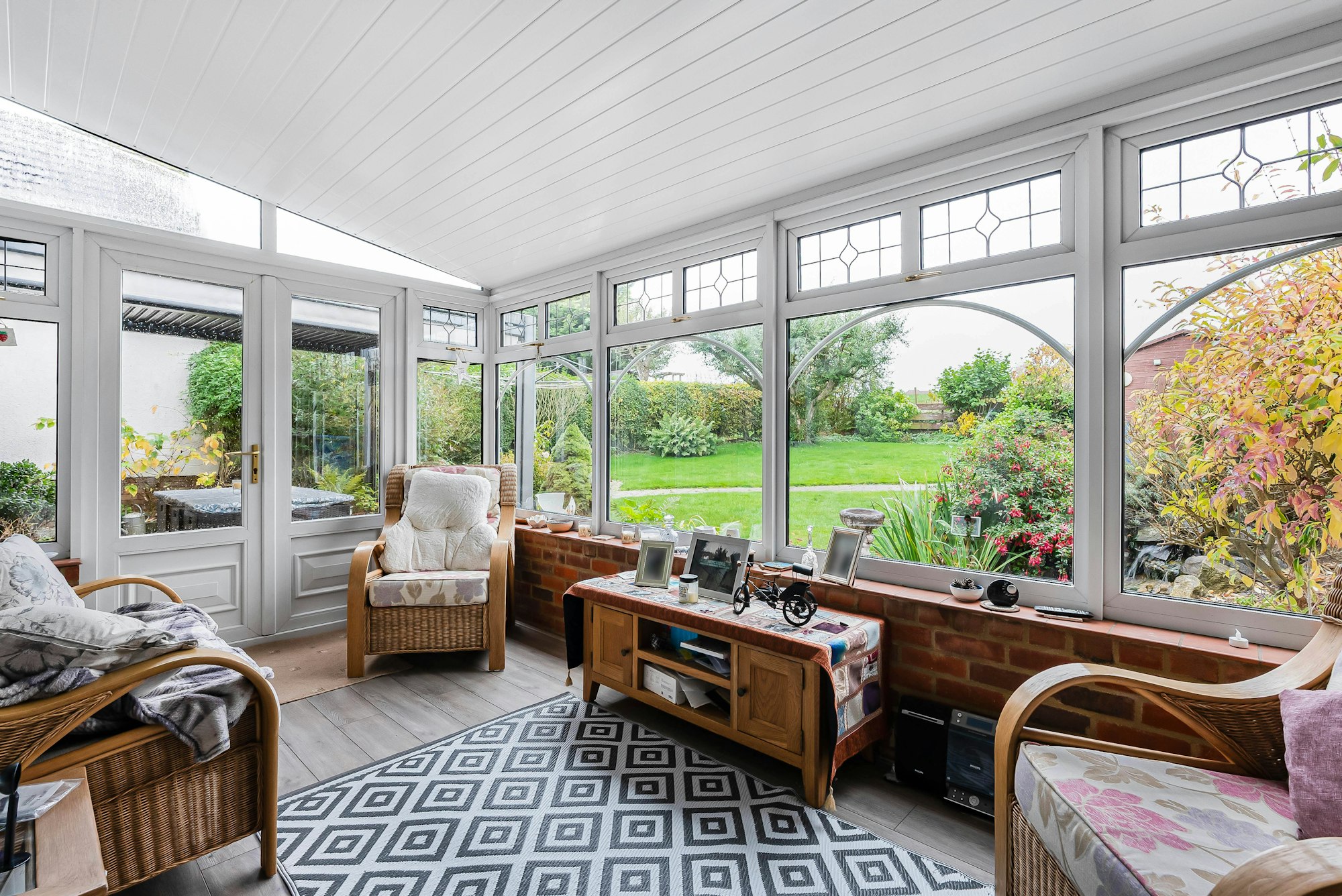 At the rear of the property sits the kitchen, complete with a Rangemaster oven and a separate utility area, with convenient access to the side passage. The garden can also be accessed through the conservatory, offering a seamless connection between indoor and outdoor spaces.