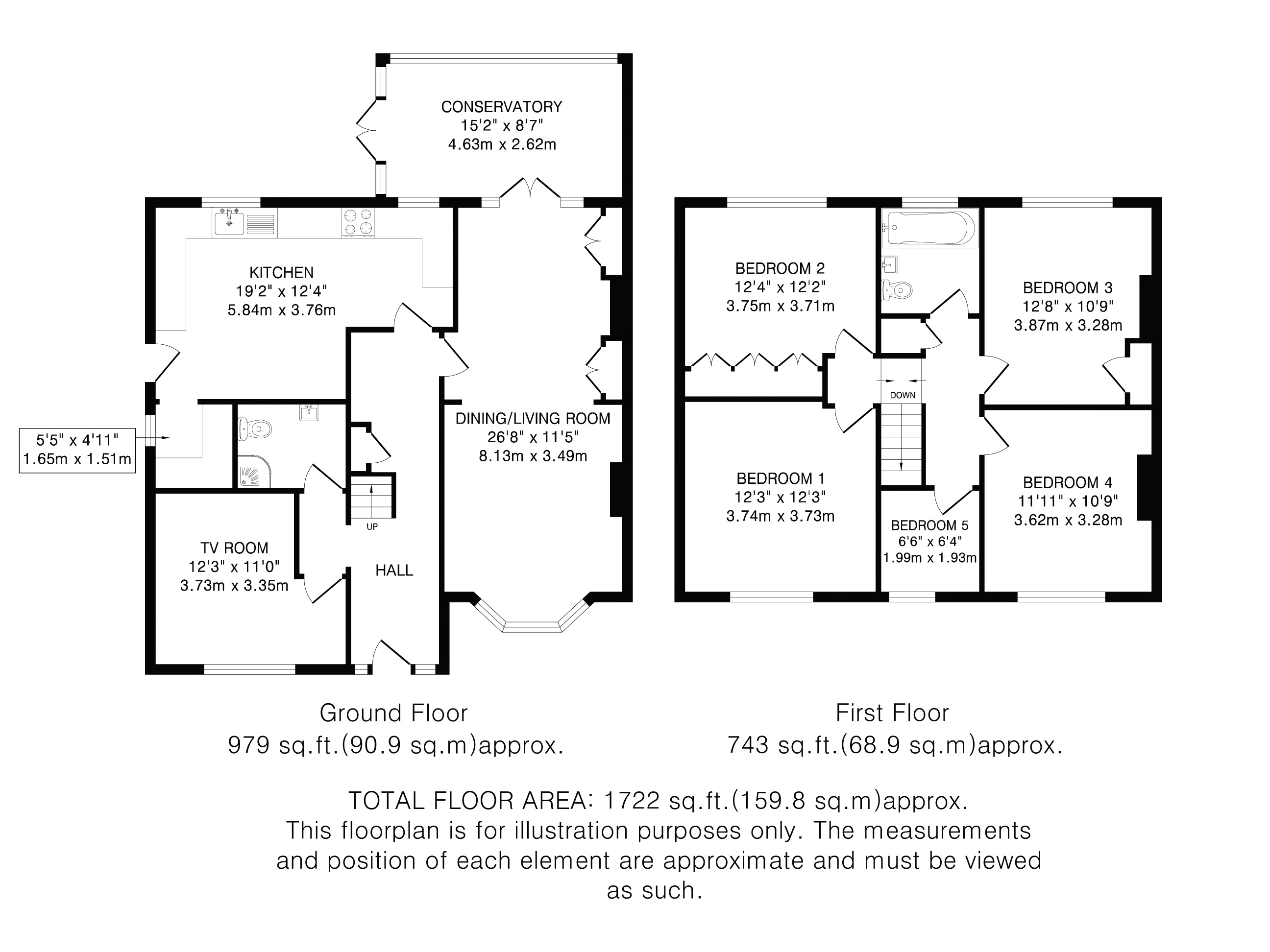 Upstairs, there are four well-proportioned bedrooms and a fifth single bedroom, along with a family bathroom.