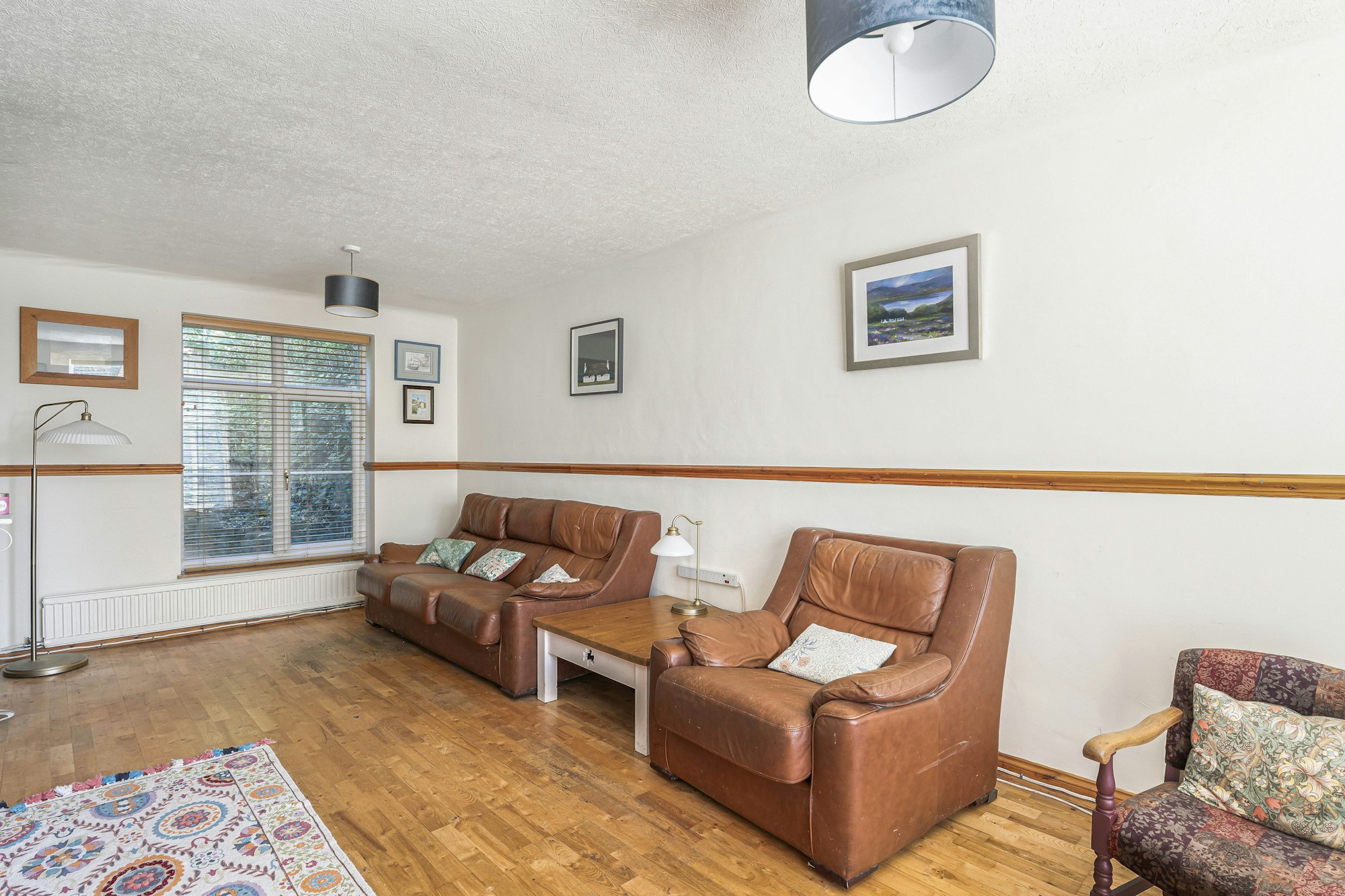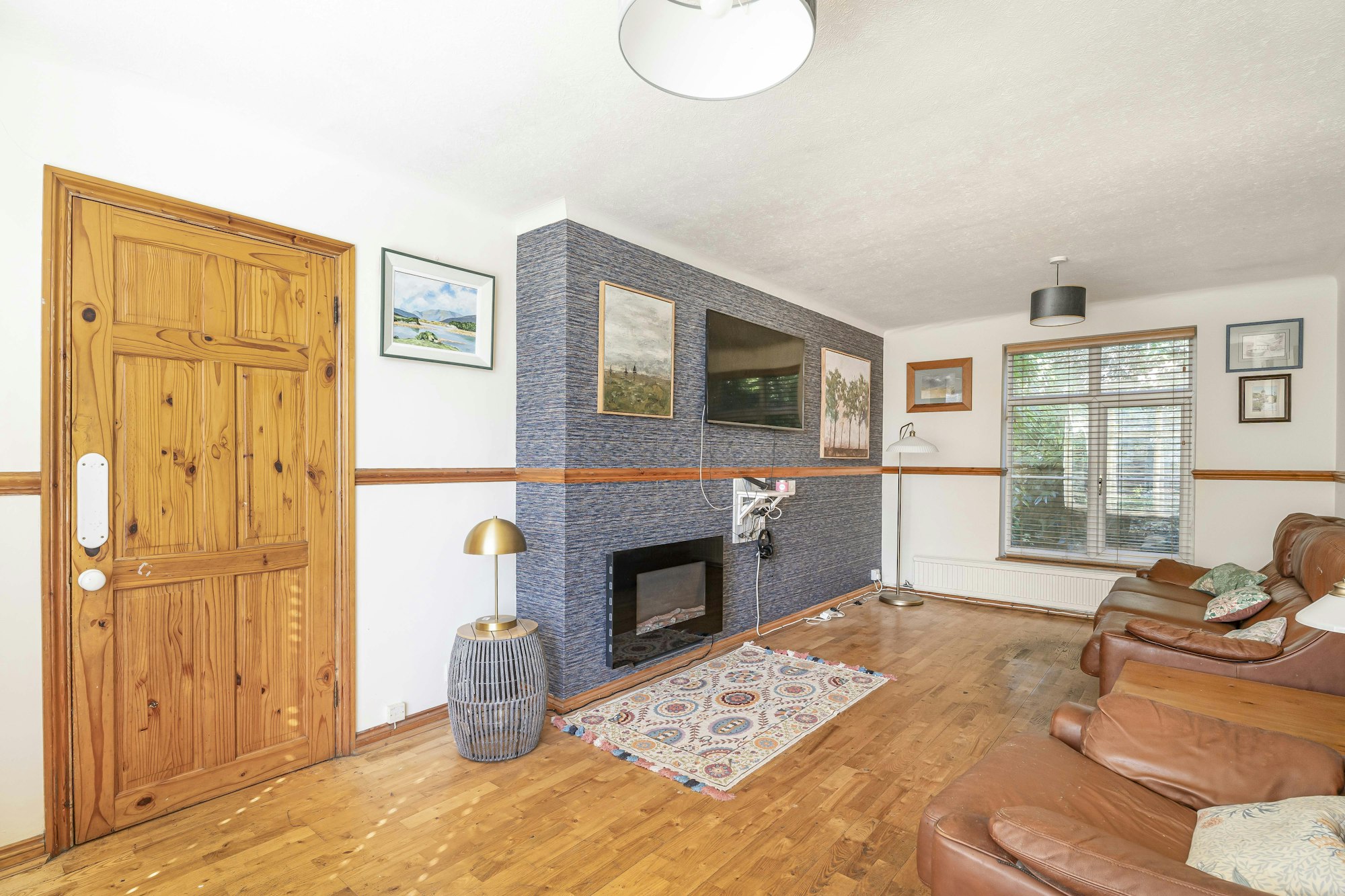 Stepping inside, you are welcomed into a bright and airy entrance hall, beautifully illuminated by a well-placed window partway up the stairwell, setting the tone for the natural light that flows throughout the property. From here, a door leads into the impressive dual-aspect living room, a 20-foot space running the full depth of the house and endowed with large windows at both ends. This generous room comfortably accommodates multiple seating arrangements and provides an inviting setting for family life and relaxation.