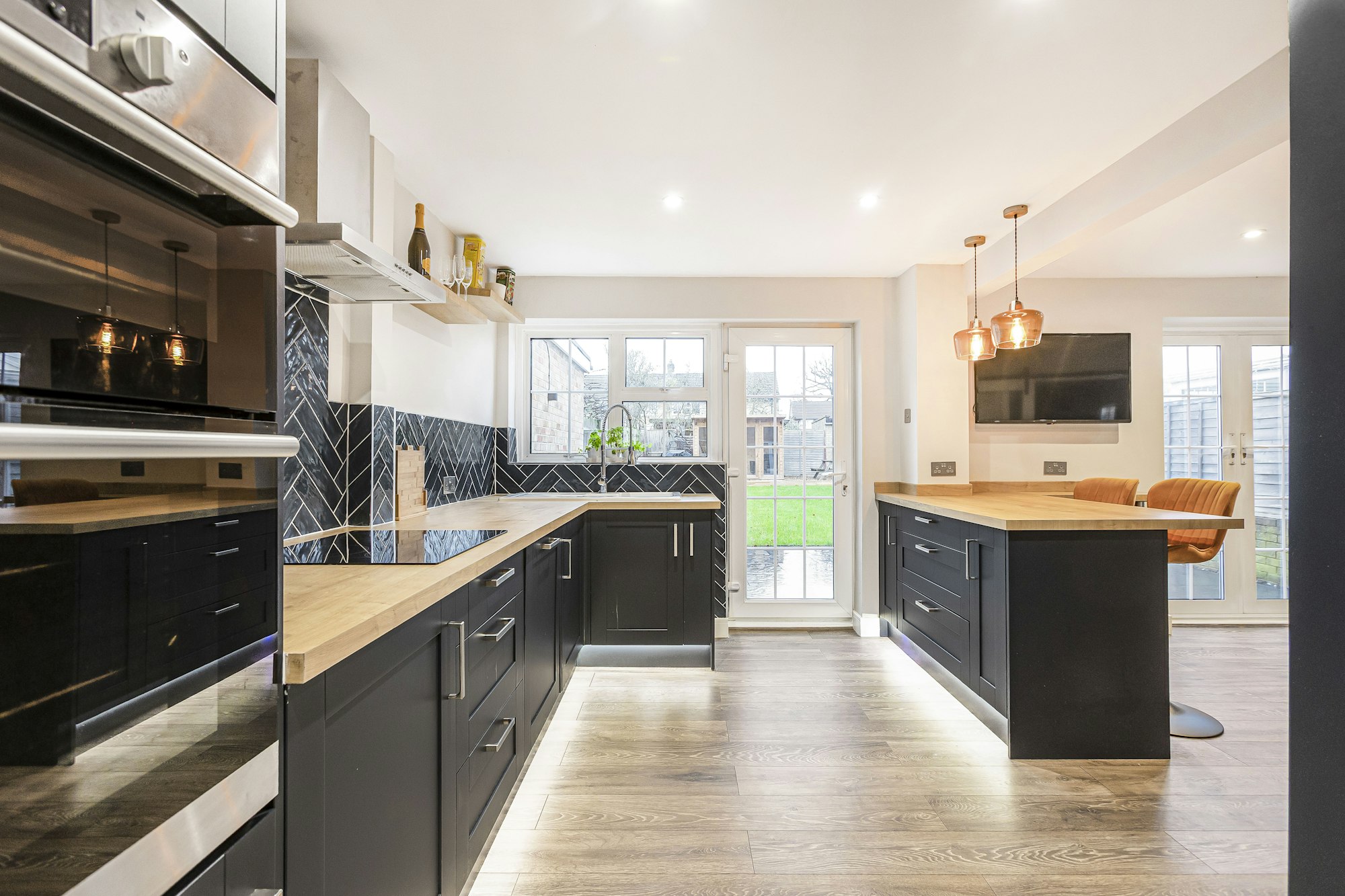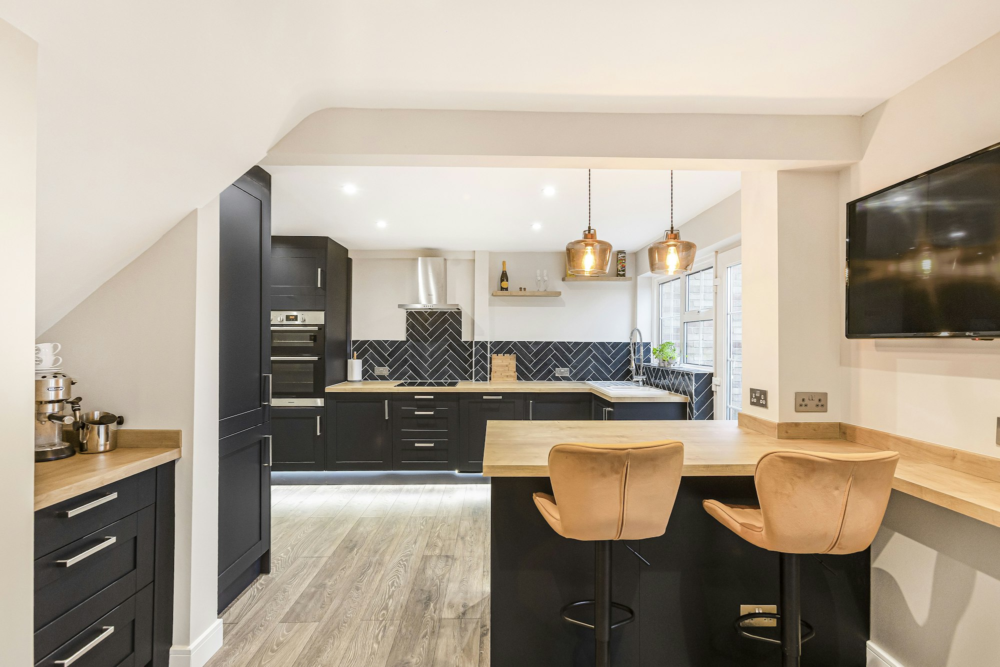 To the first floor are three well-proportioned bedrooms, all served by a sleek, modern family bathroom.