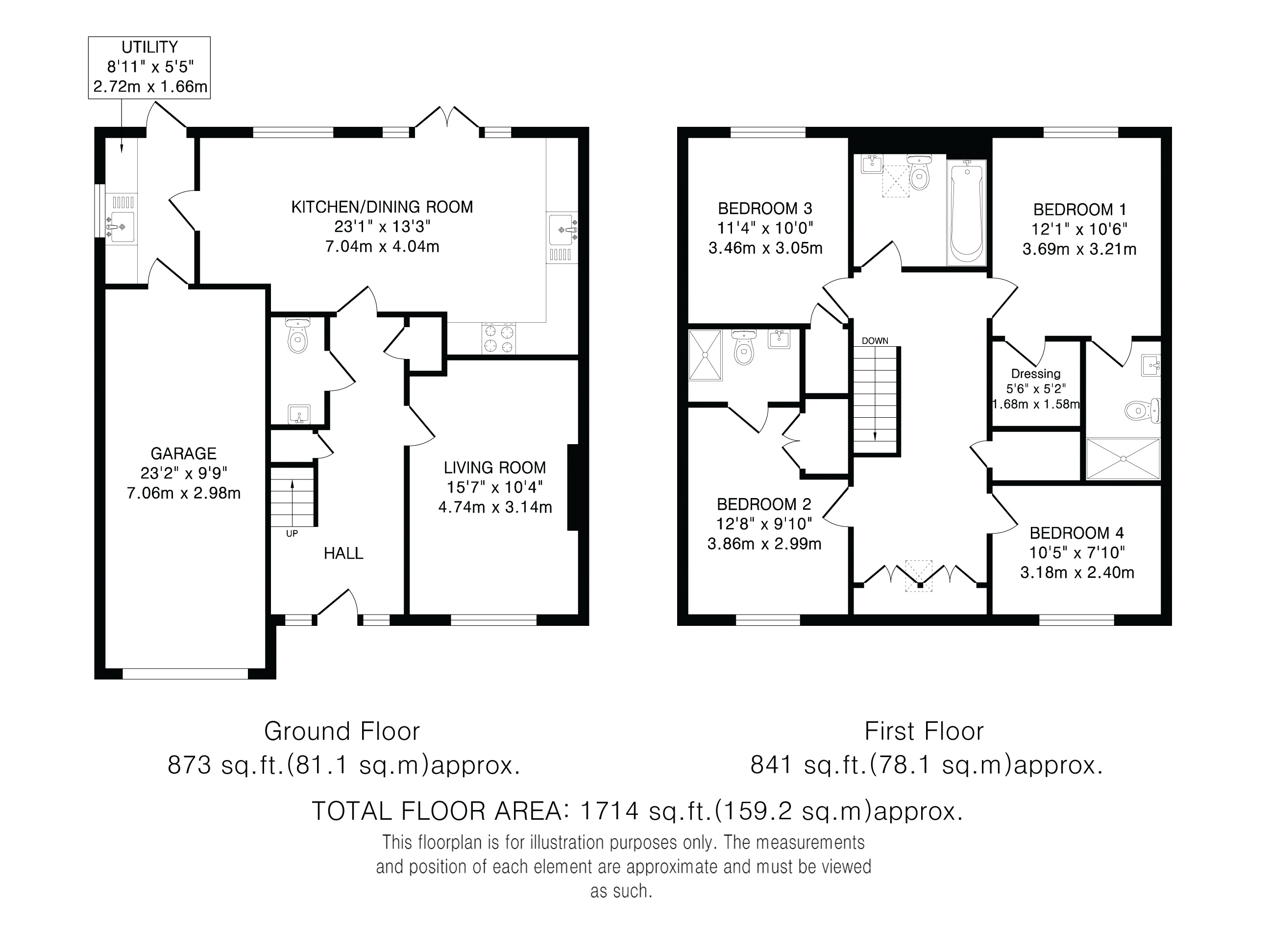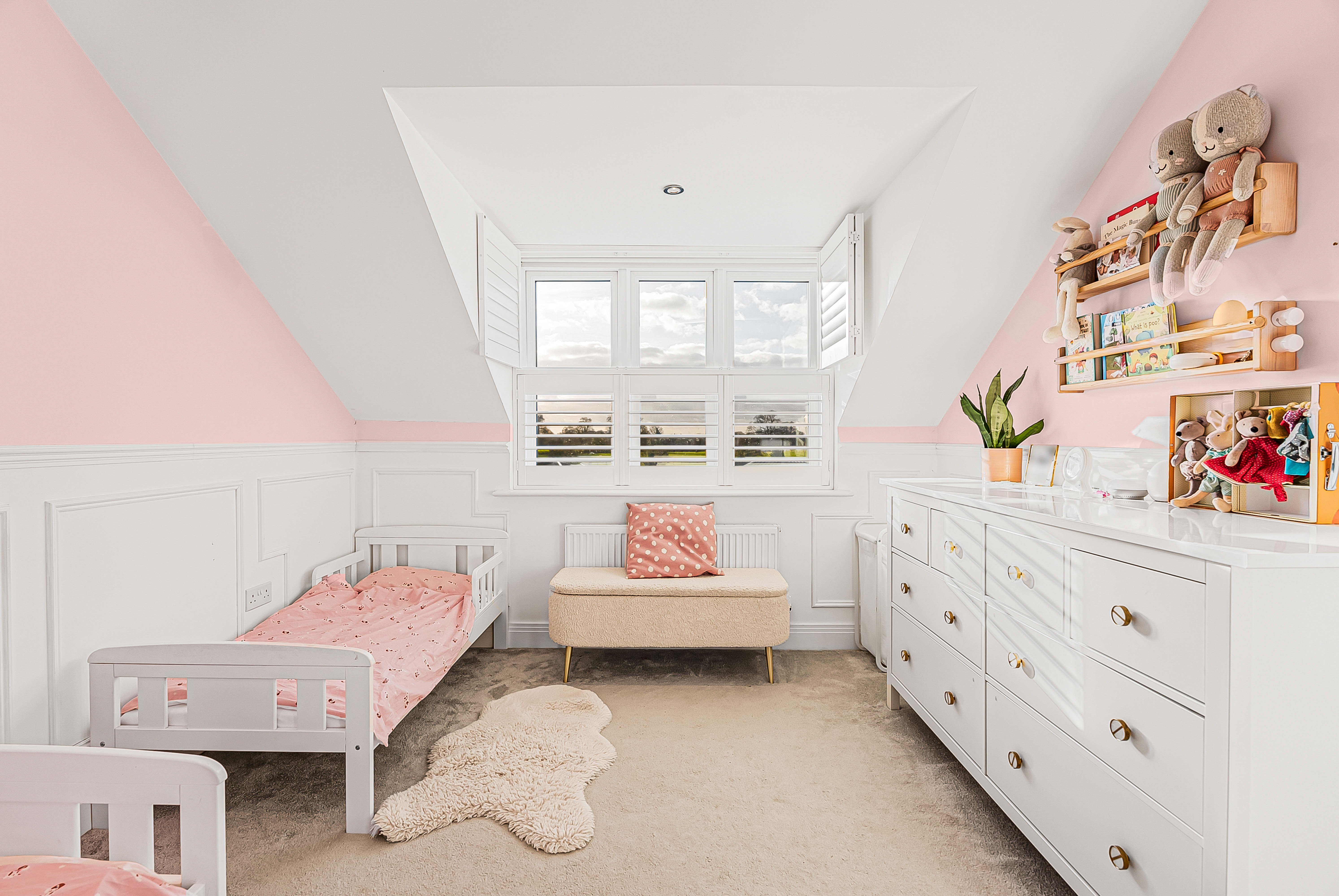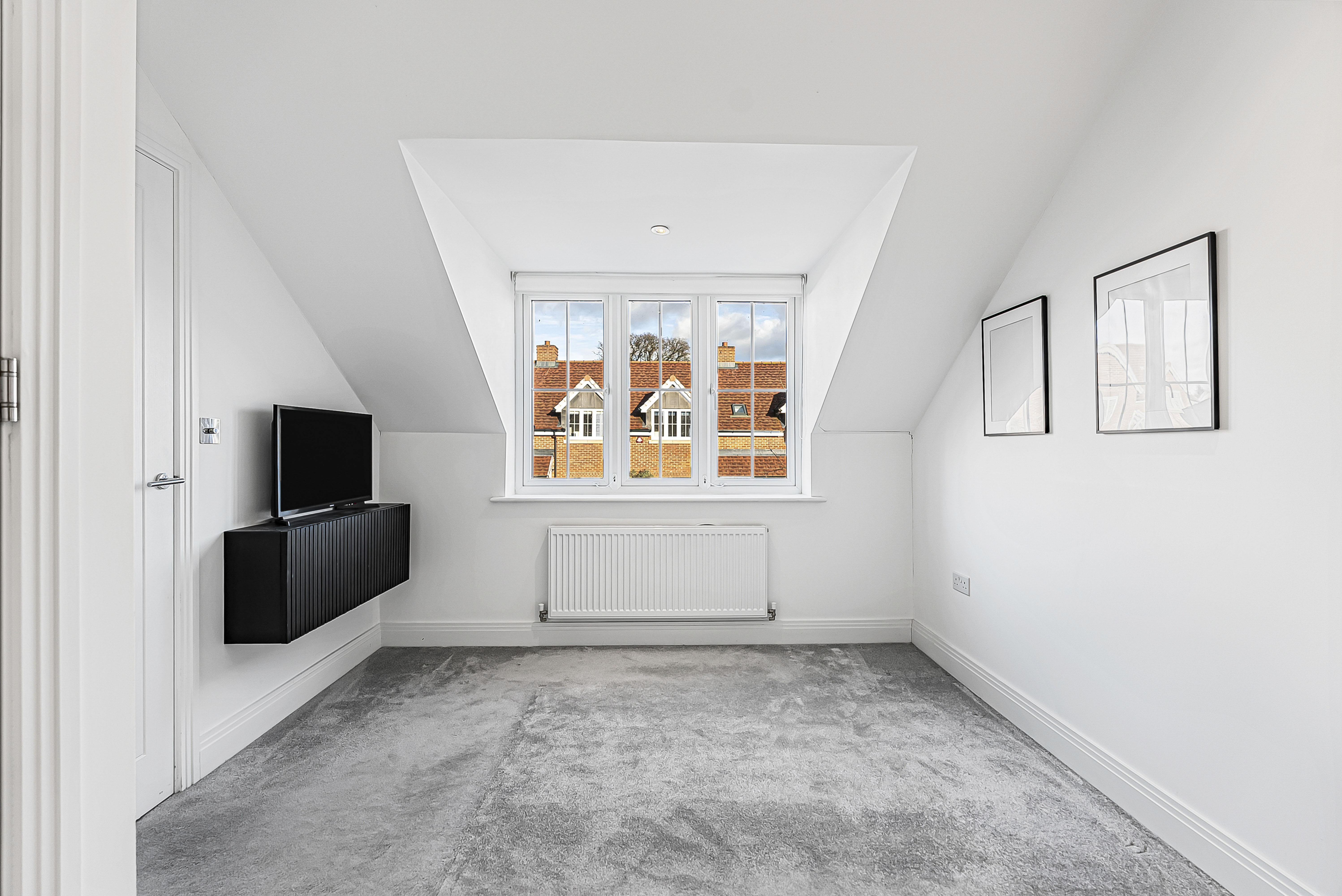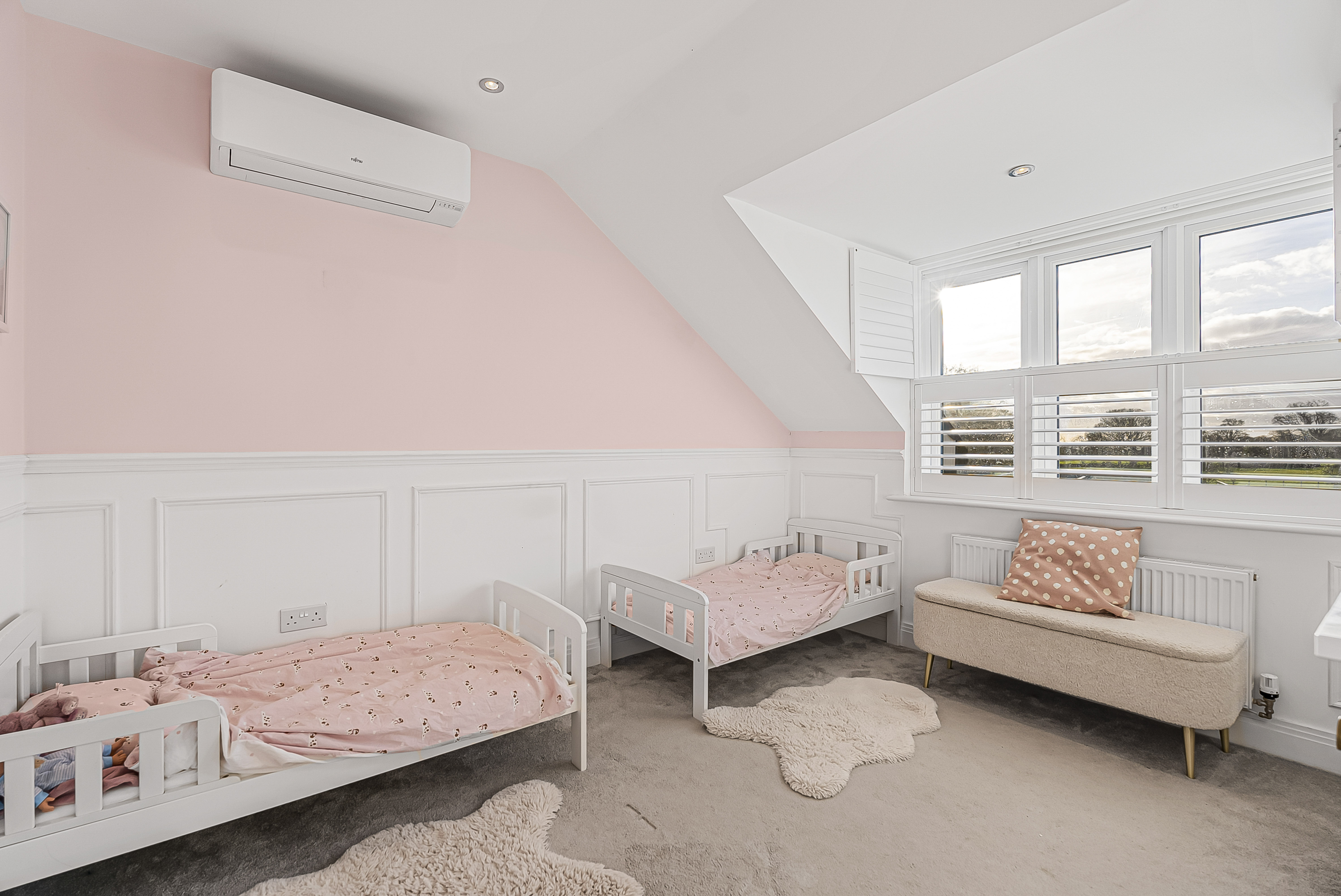 The first floor continues to impress, with a spacious landing illuminated by a Velux roof window, additional storage and access to a partly boarded loft. The principal bedroom enjoys elevated countryside views and benefits from a walk-in wardrobe and sleek en-suite shower room. A second double bedroom also boasts en-suite facilities, while two further generous double bedrooms are served by a modern family bathroom.