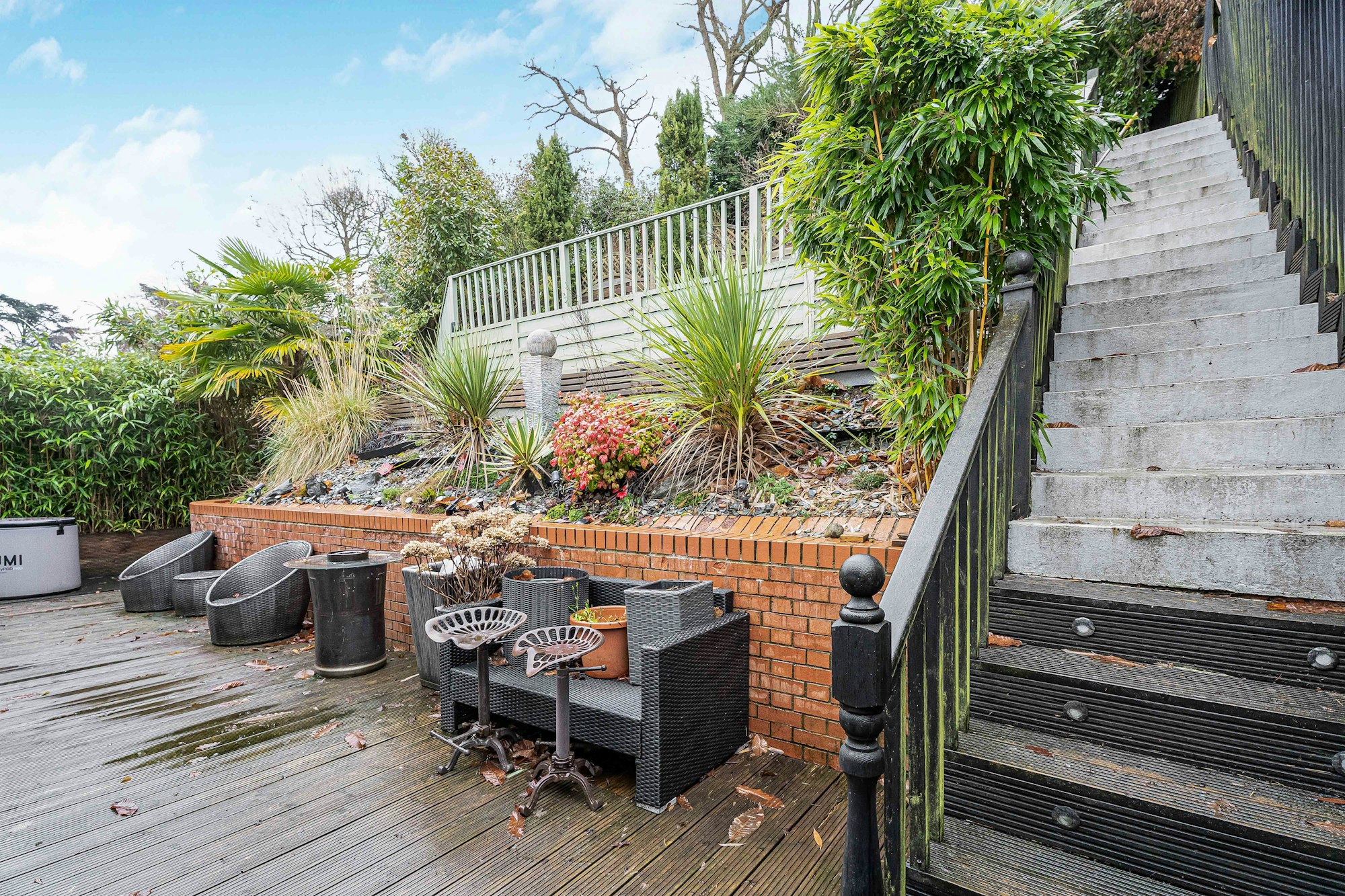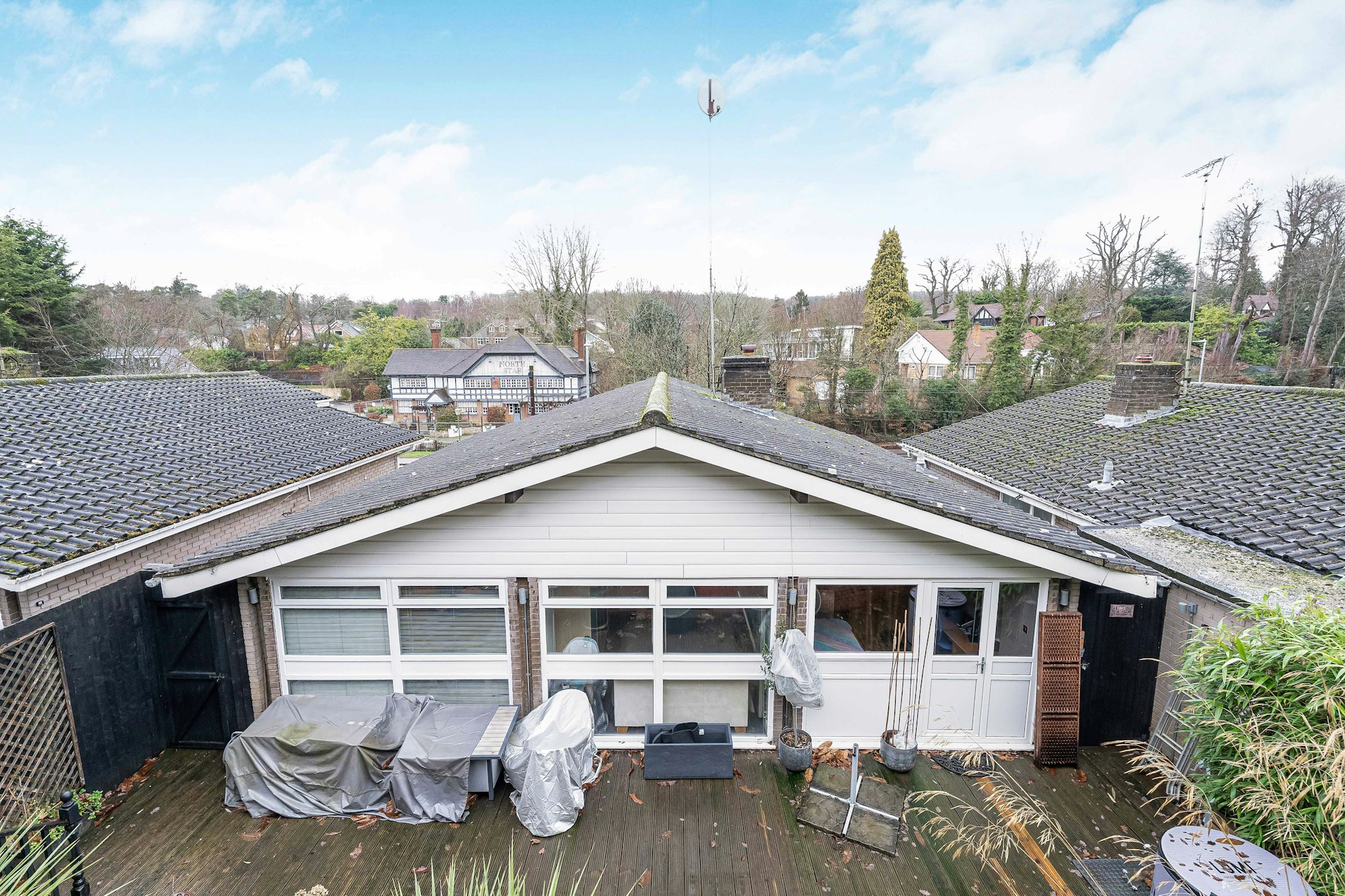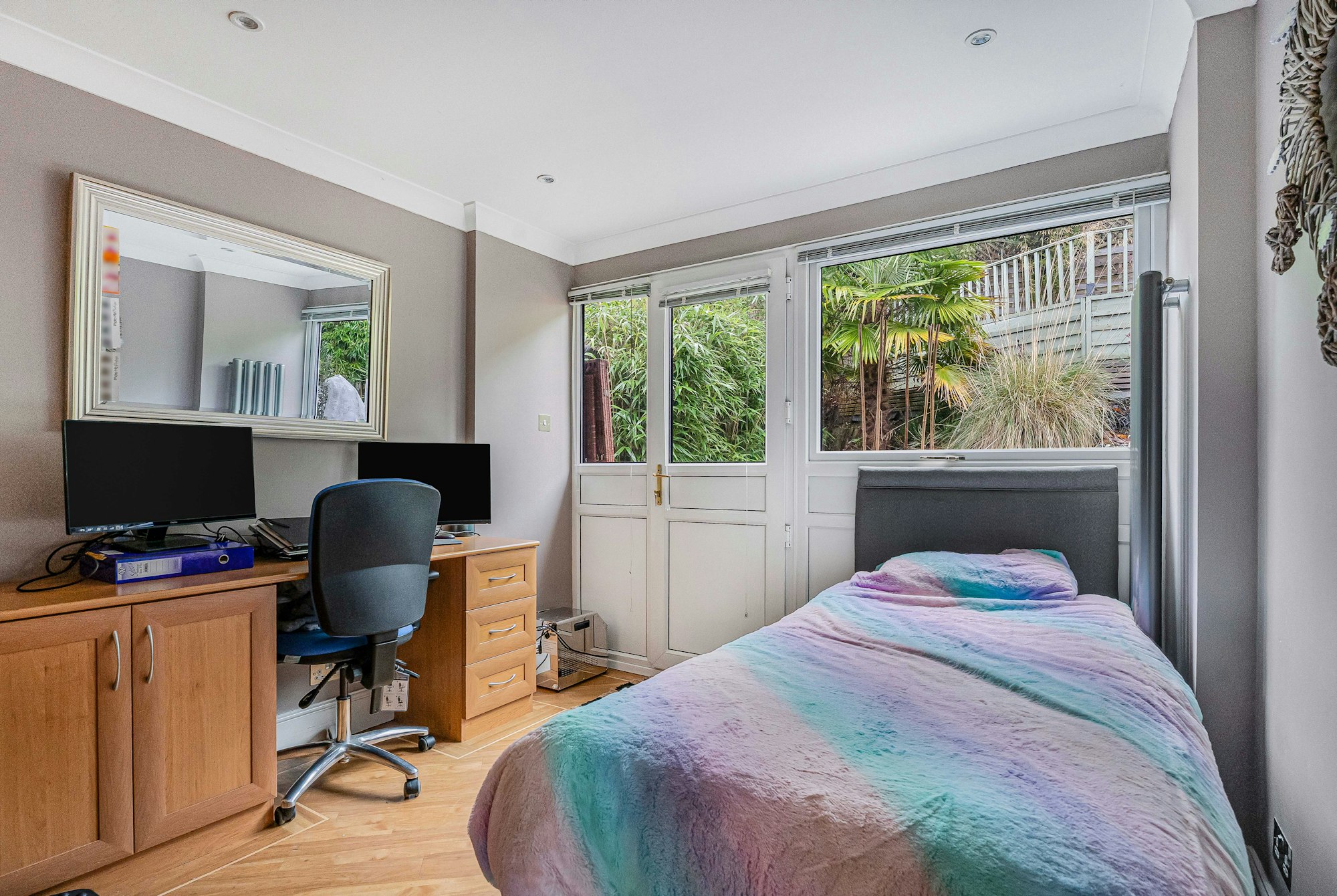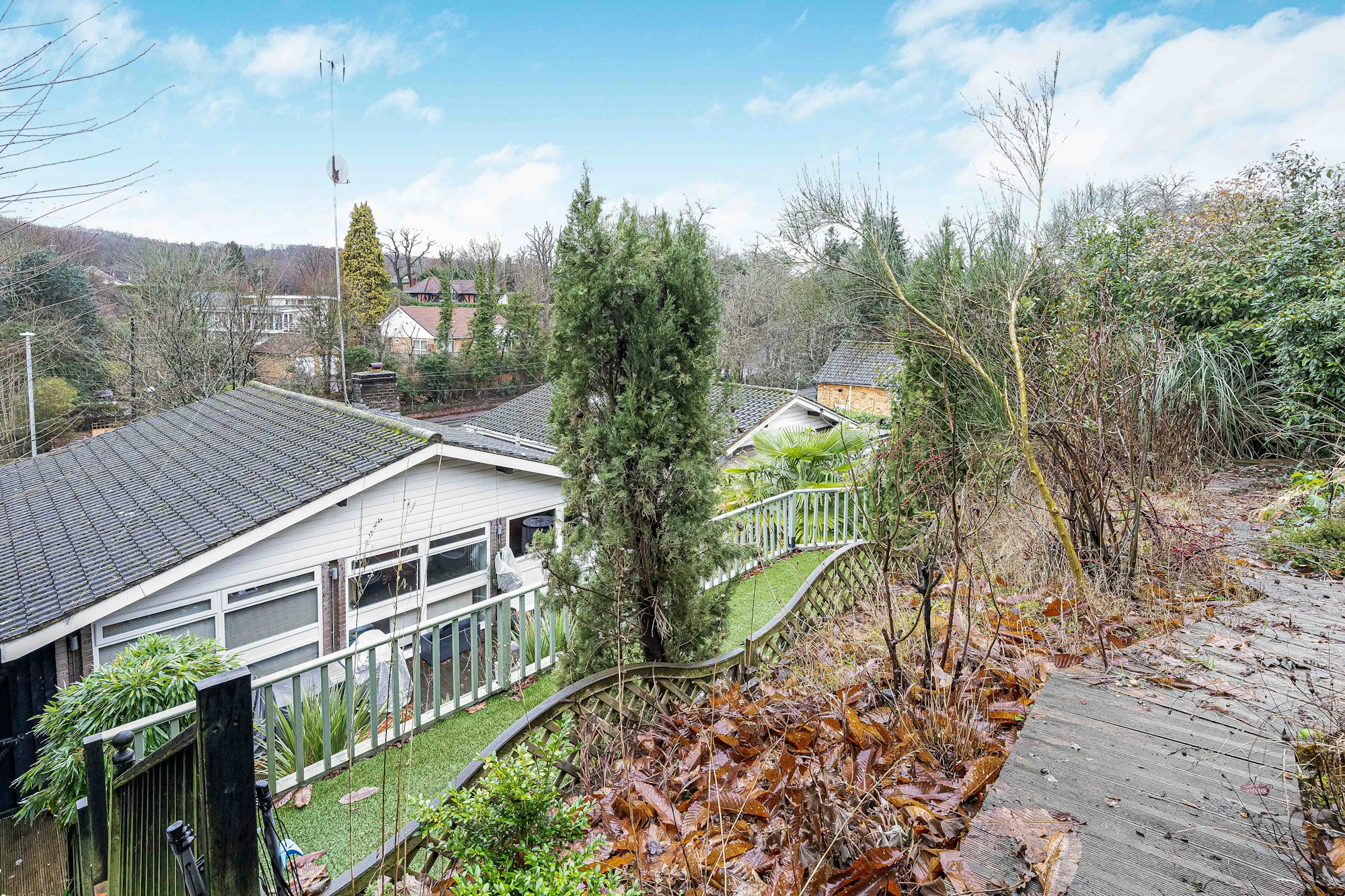 Externally, the property enjoys a secluded, three-tiered garden, with the upper level offering attractive views across the surrounding countryside. Additional benefits include off-street parking, making this an ideal home for those seeking both space and privacy.