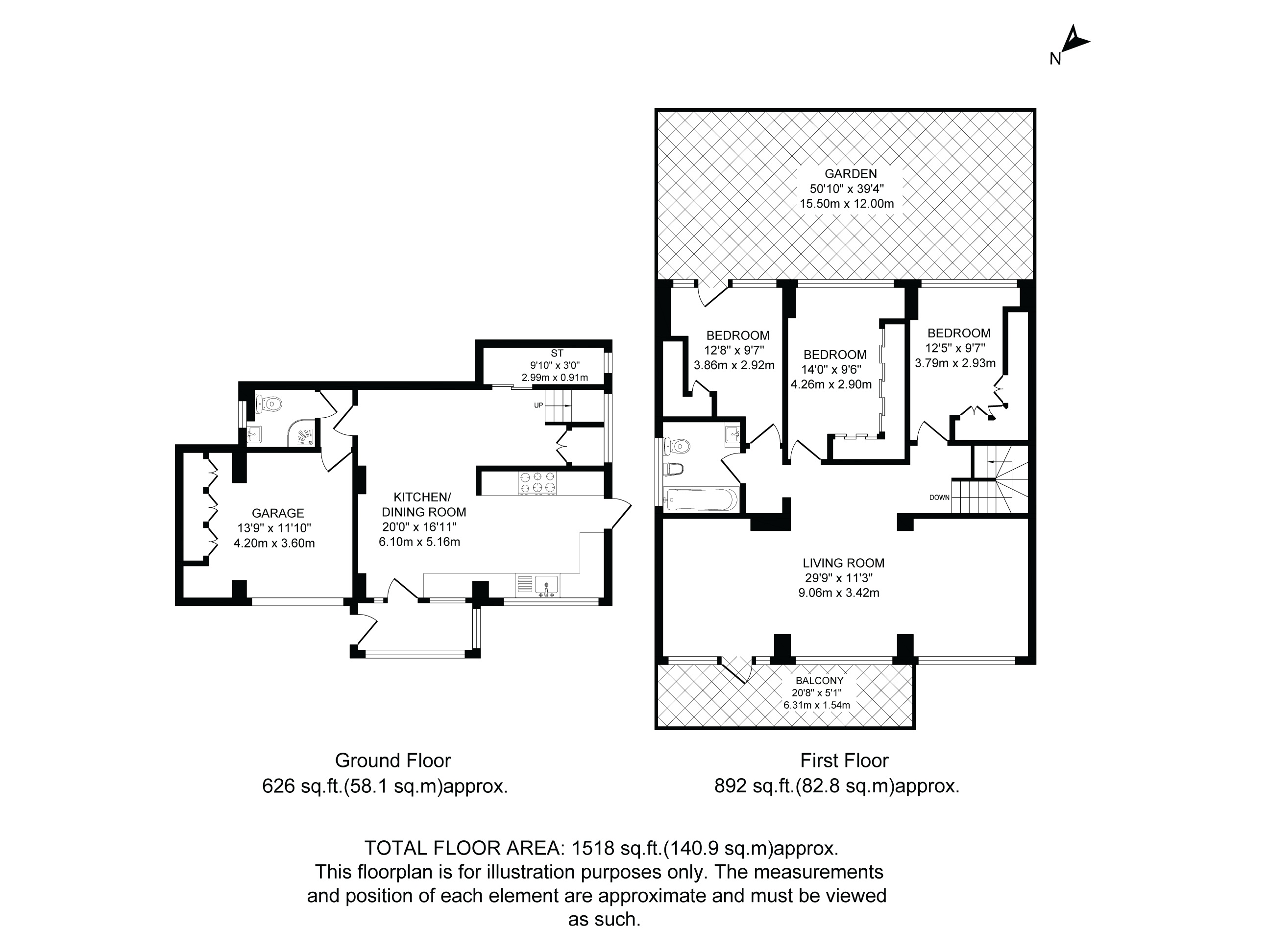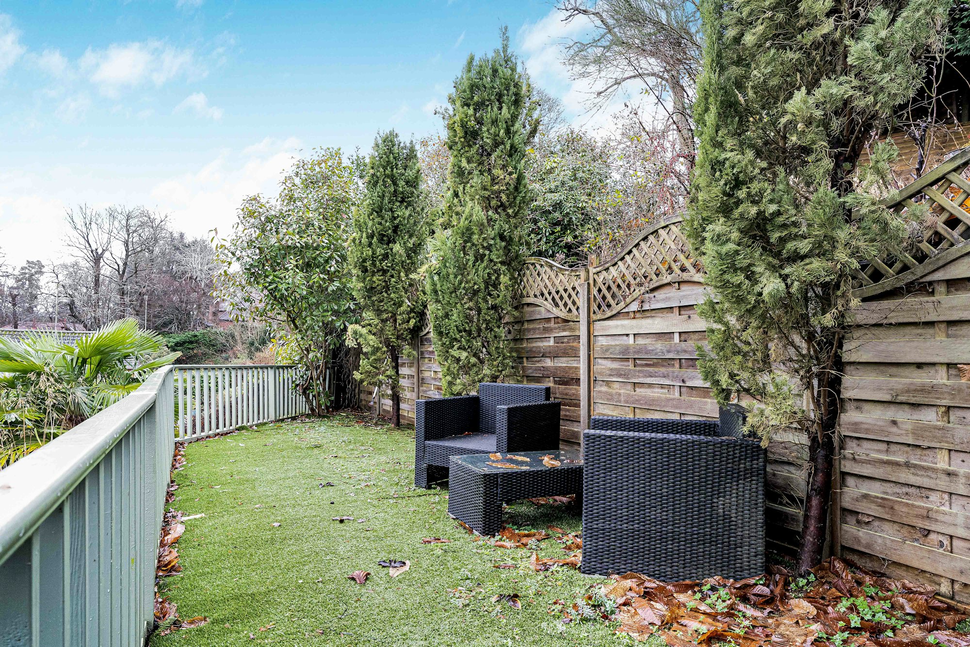 Upstairs, a generous living room opens onto a balcony, creating an excellent space to relax and enjoy the outlook. There are three well-proportioned bedrooms, all benefitting from built-in storage, along with a contemporary family bathroom.