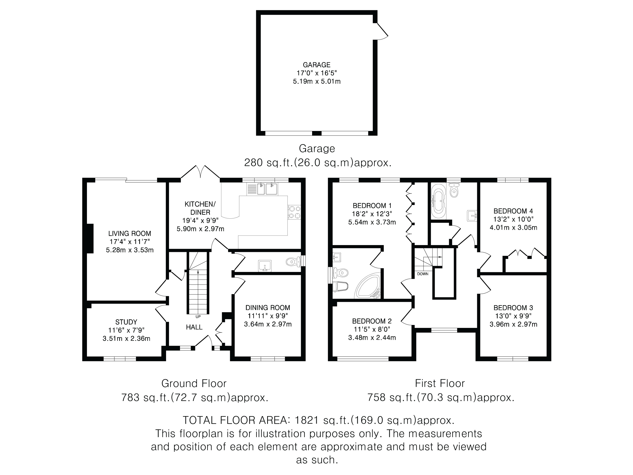 To the first floor, the principal bedroom benefits from an en suite shower room, while the remaining three bedrooms are served by a family bathroom.