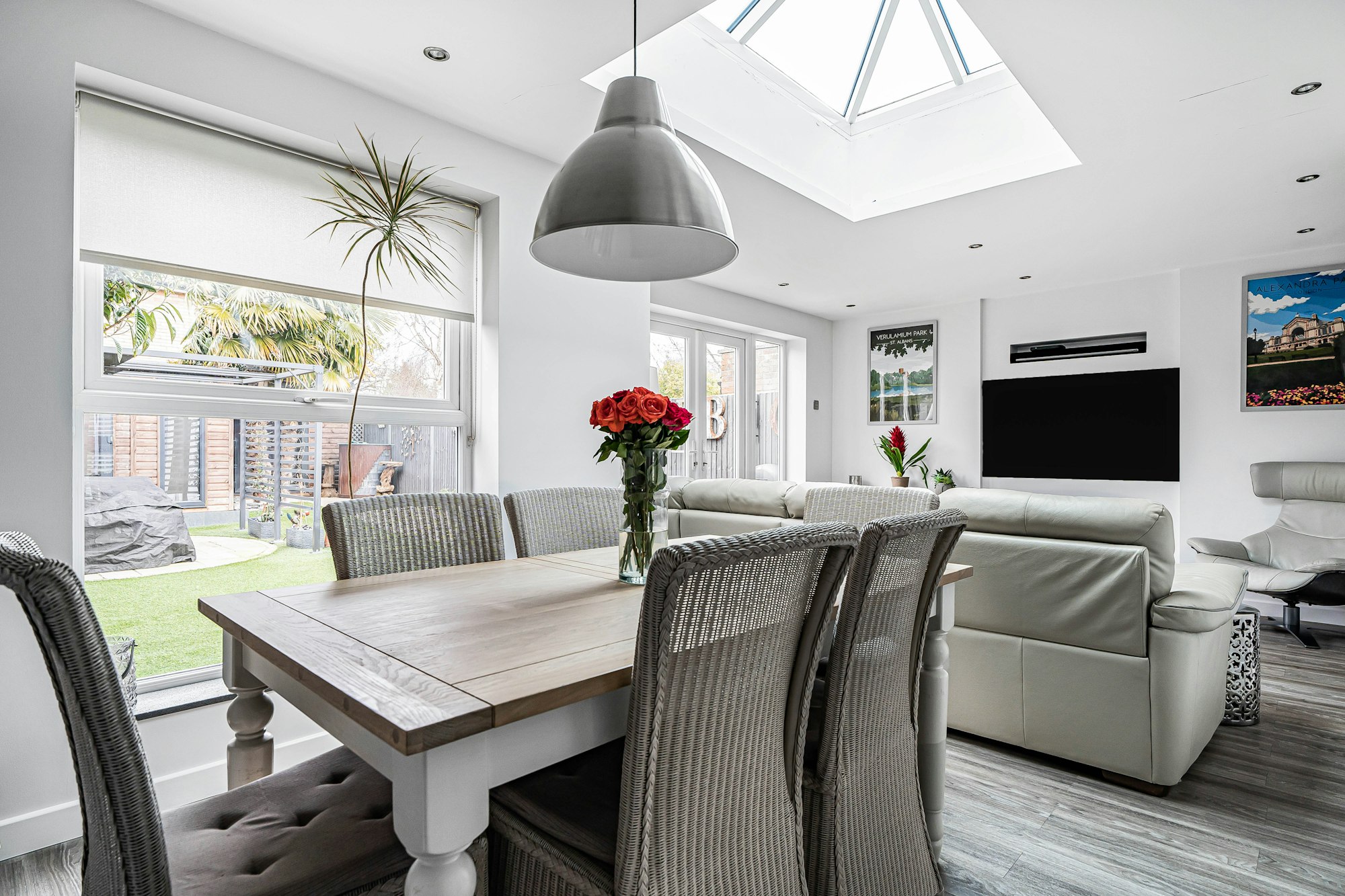 The property features a spacious and inviting lounge, seamlessly complemented by a contemporary fitted kitchen positioned adjacent. Both rooms flow effortlessly into a bright and airy dining/family area, creating a superb open-plan layout perfect for entertaining and everyday living. This impressive space opens directly onto a low-maintenance rear garden, which has been tastefully landscaped to provide an attractive and private outdoor retreat.