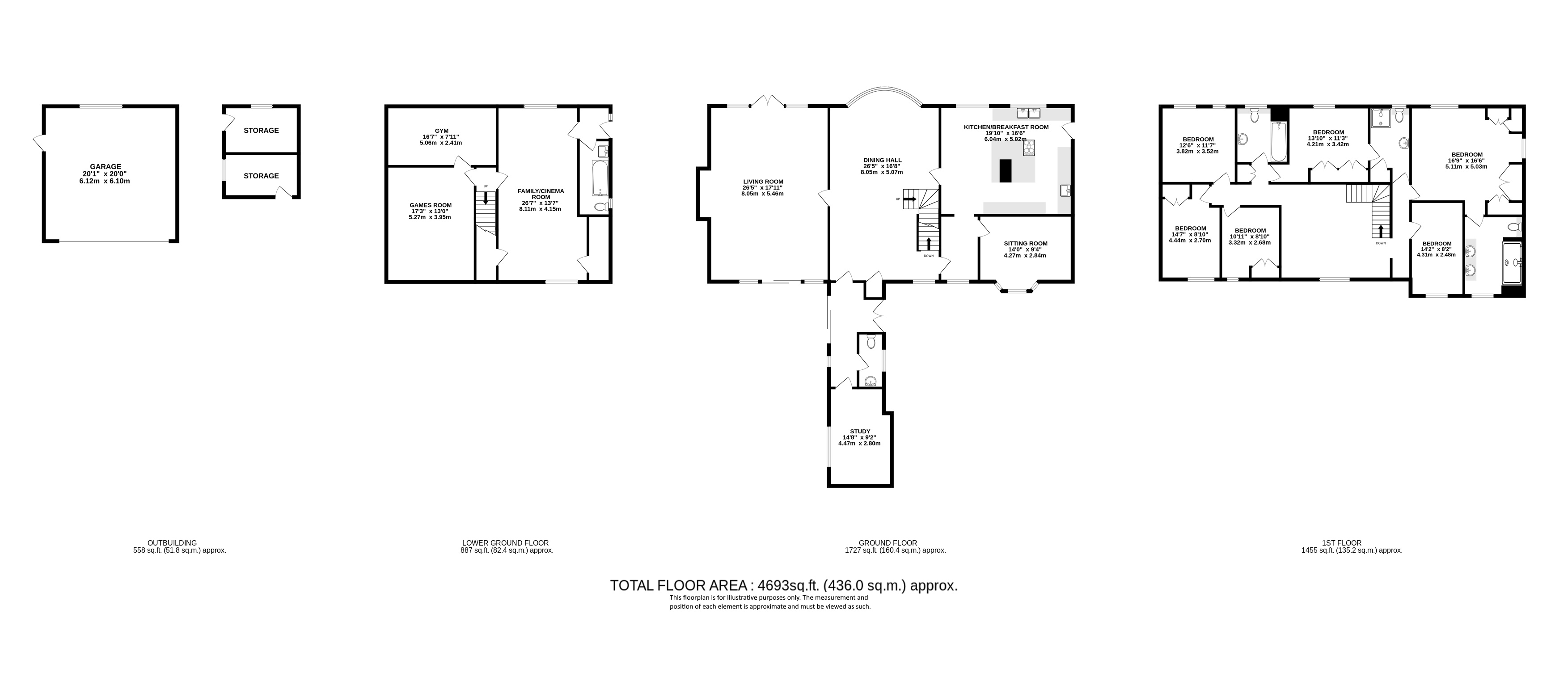 The lower ground floor provides versatile living, ideal for a self-contained annexe if required, and includes a cinema room, games room, gym, and bathroom. Access is available via a side entrance or staircase from the main reception hall.