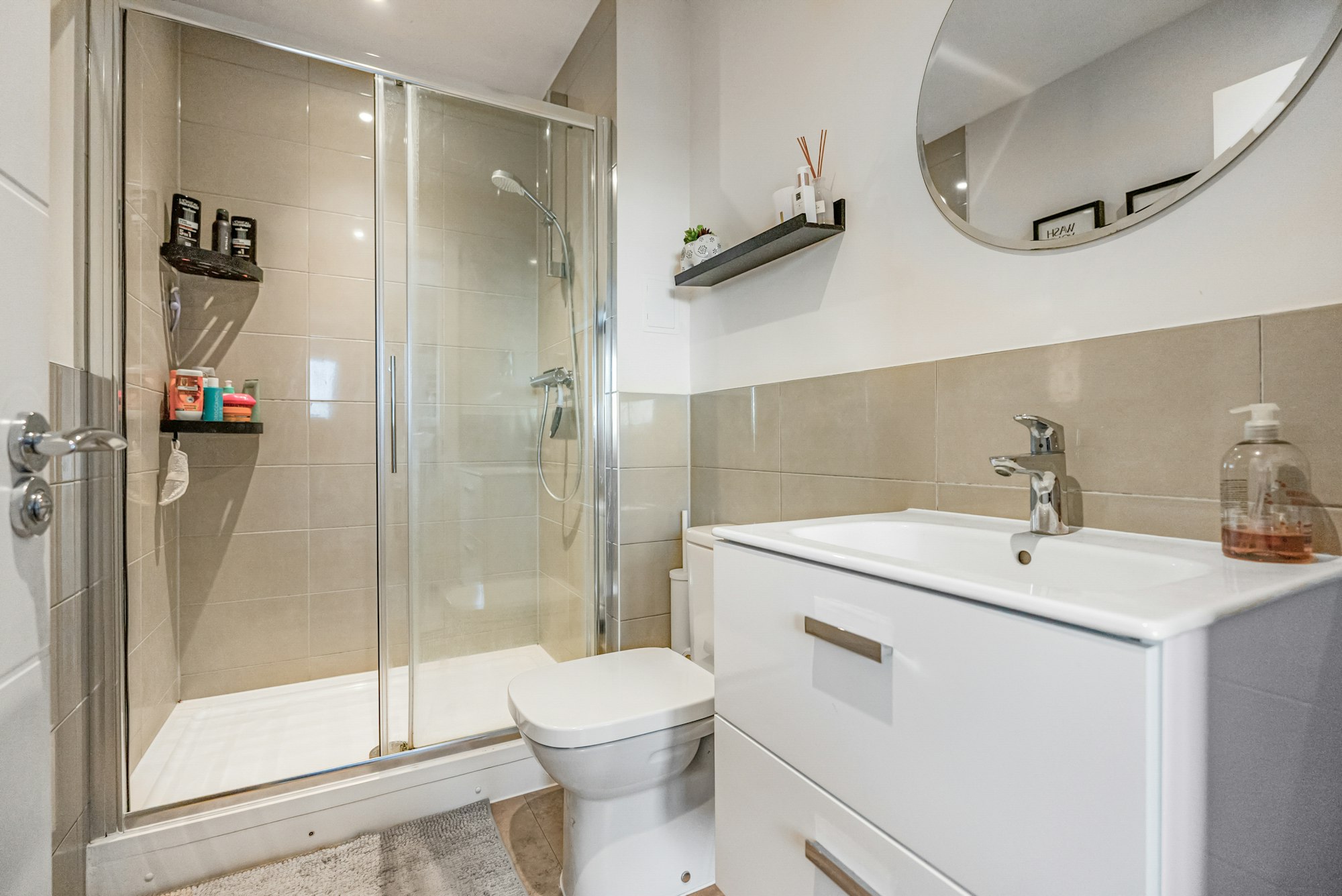 Upstairs, the property offers a generous principal bedroom with en-suite facilities, a substantial second double bedroom, and a contemporary family bathroom.