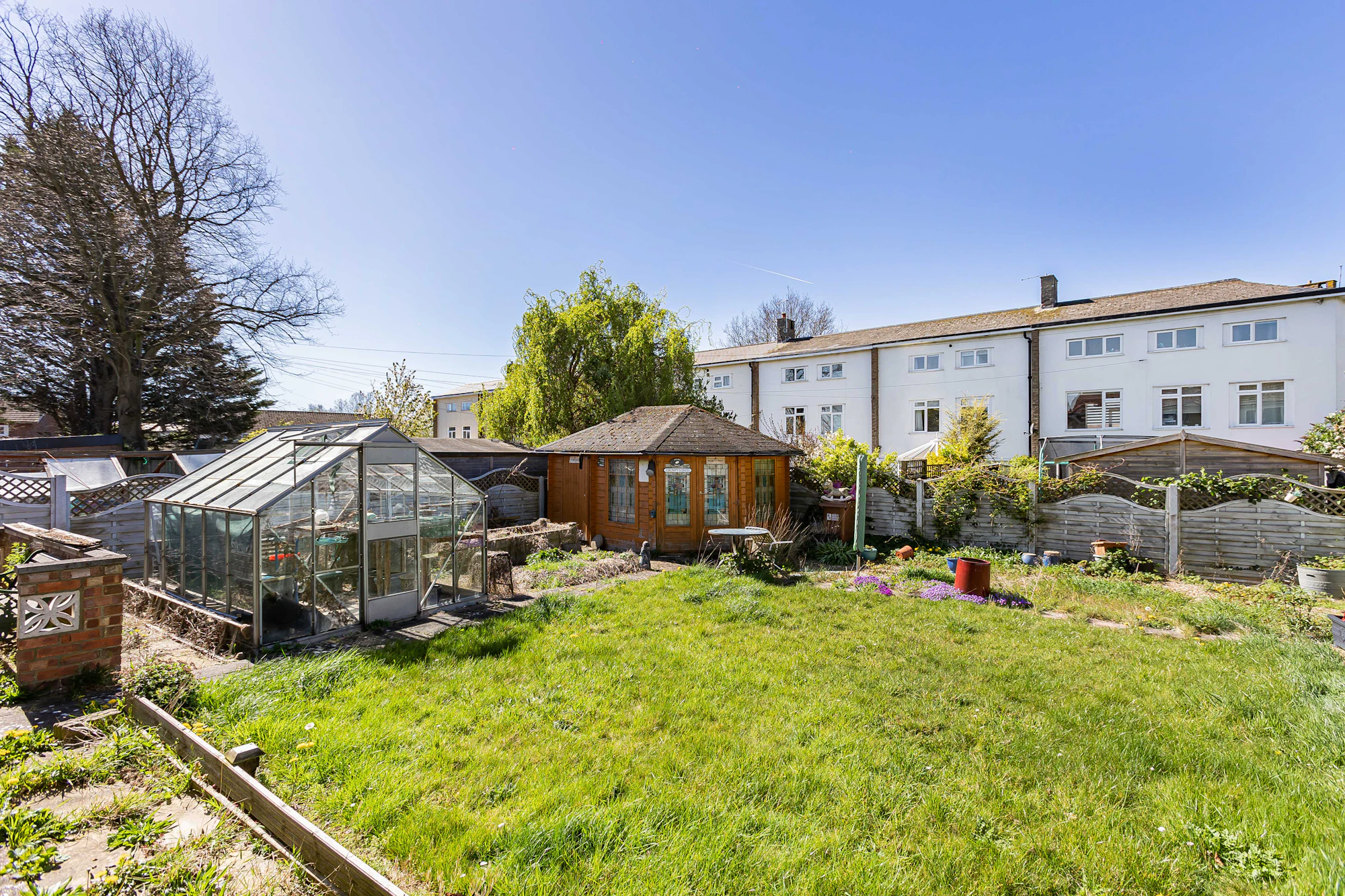 Externally there is an enclosed frontage and good size south facing rear garden with patio leading to lawn, summerhouse/storage shed, greenhouse and gravelled seating area at the rear.