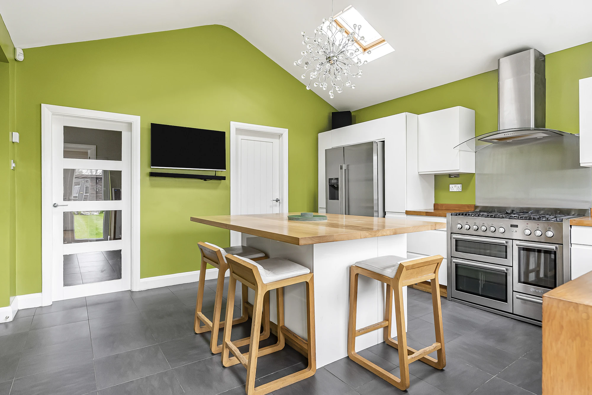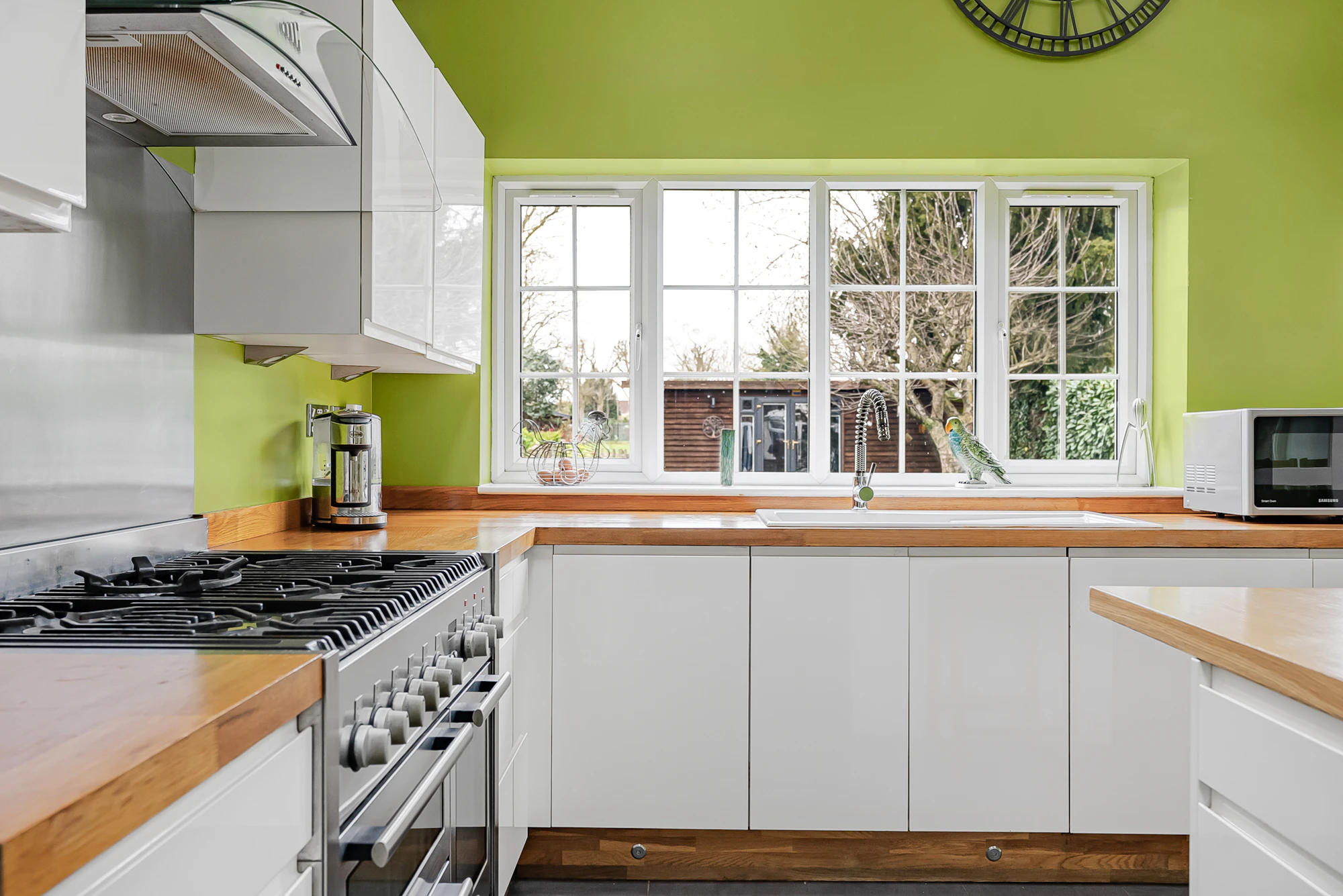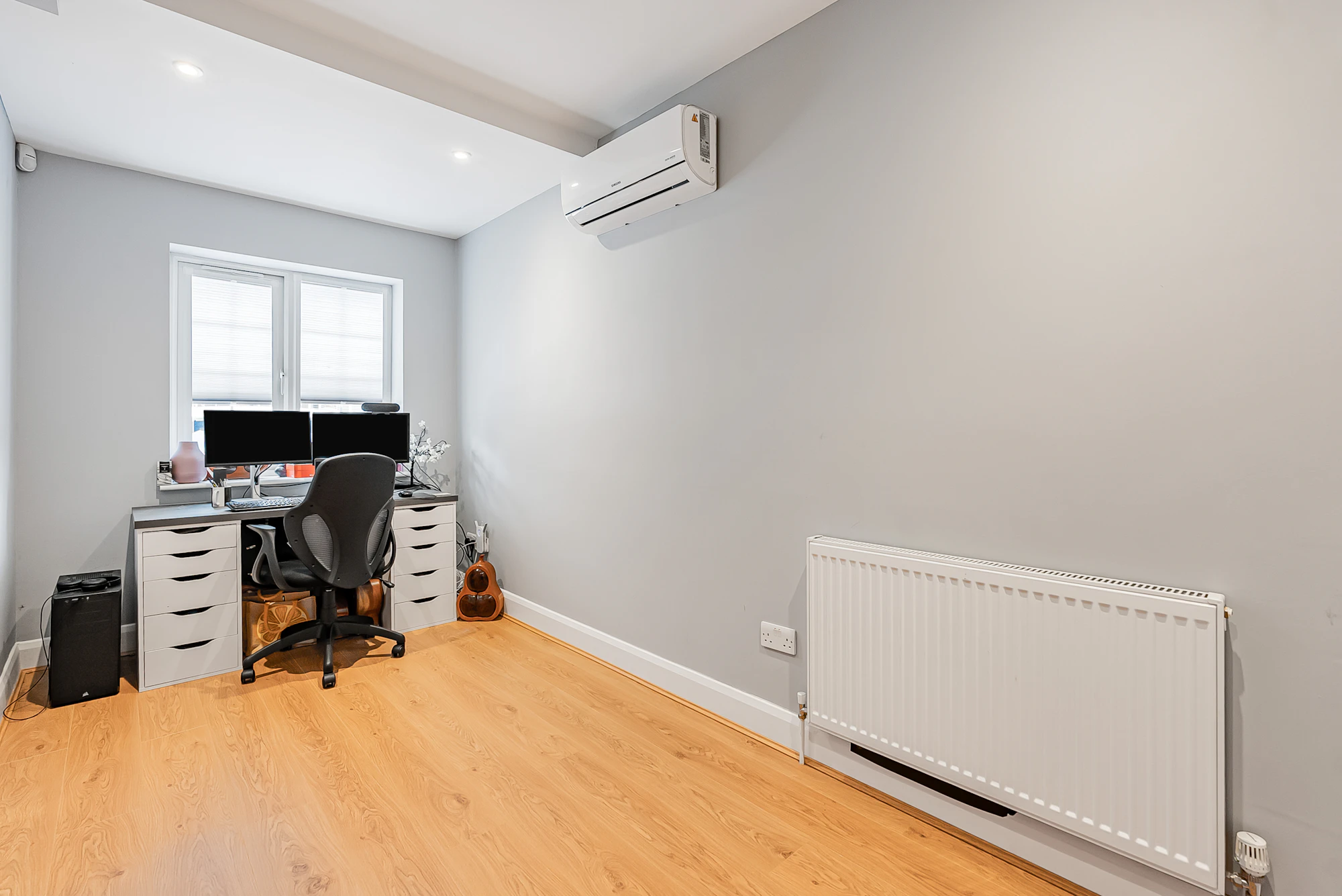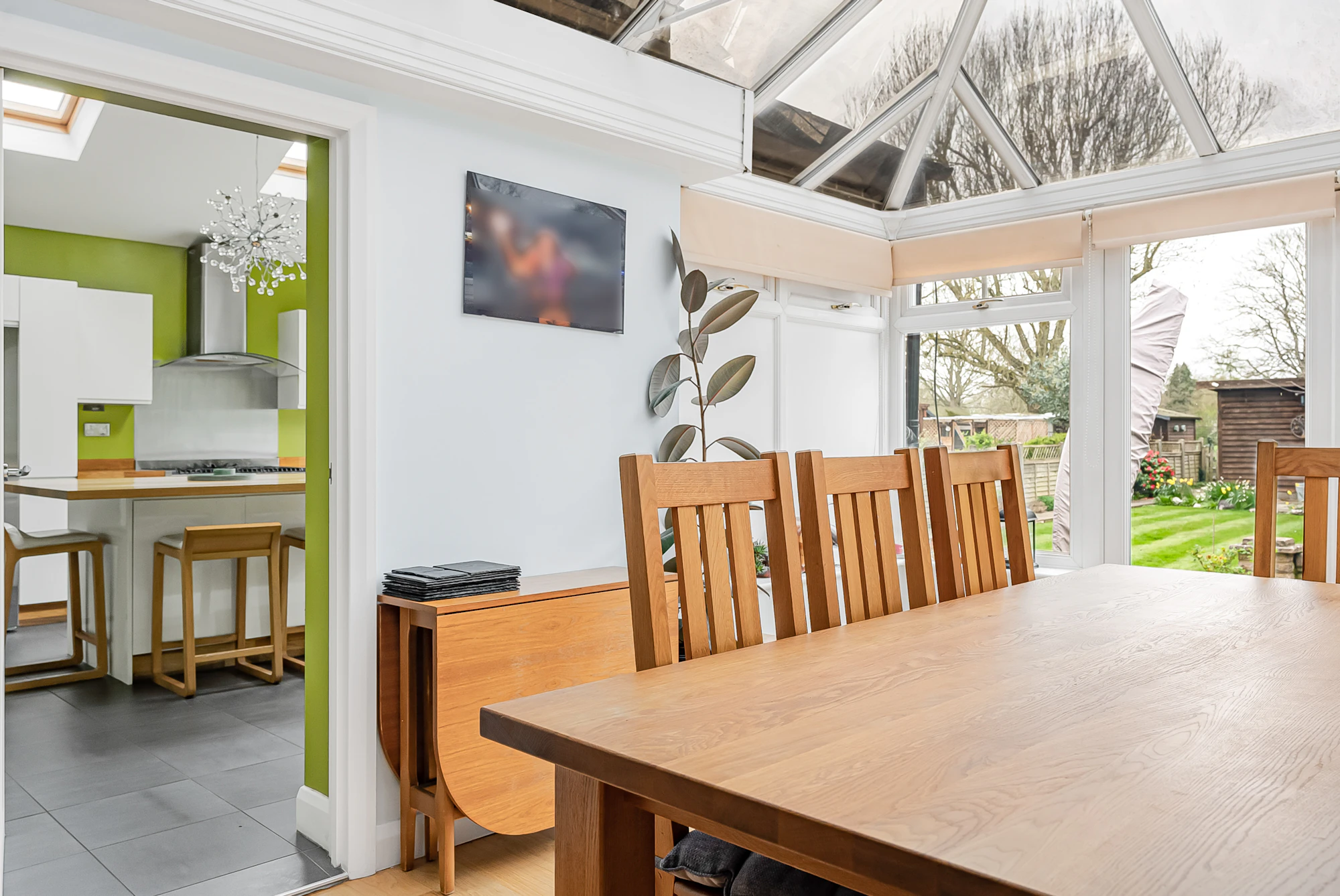 Additional benefits include a versatile outbuilding used as a home office/cinema room/studio, a sauna, EV charging point, air conditioning in selected rooms, a recently installed Vaillant boiler, a zoned alarm system with CCTV, and off-street parking for multiple vehicles via a private driveway.