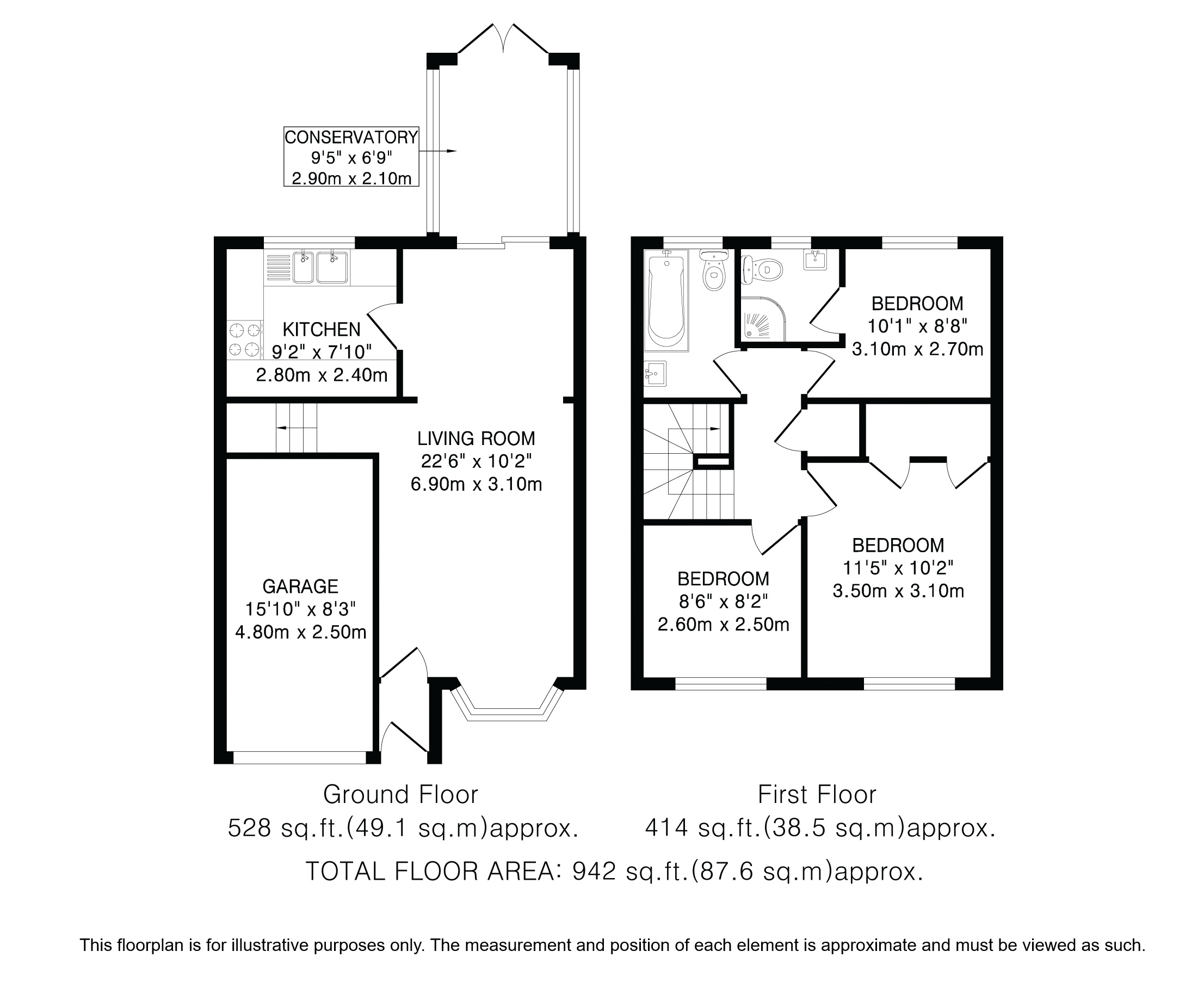 On the ground floor, the living room has a feature fireplace and opens into the dining room which, in turn, has French doors into a sunny aspect conservatory. There is a fitted kitchen and a single garage, which many local residents have converted to further reception space.