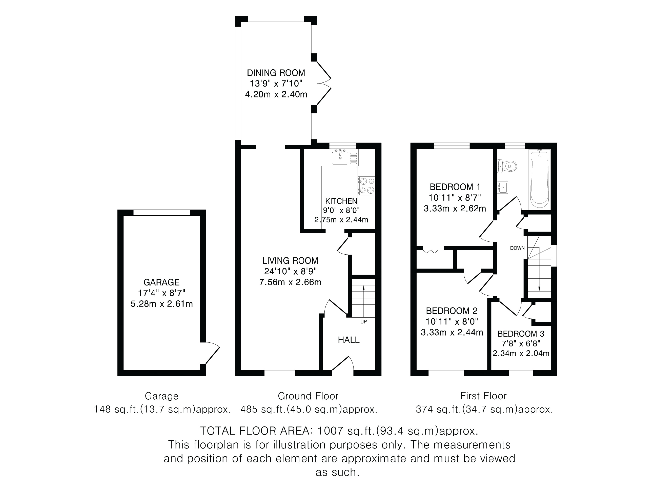 Upstairs, three well-proportioned bedrooms are served by a family bathroom fitted with a three-piece suite.