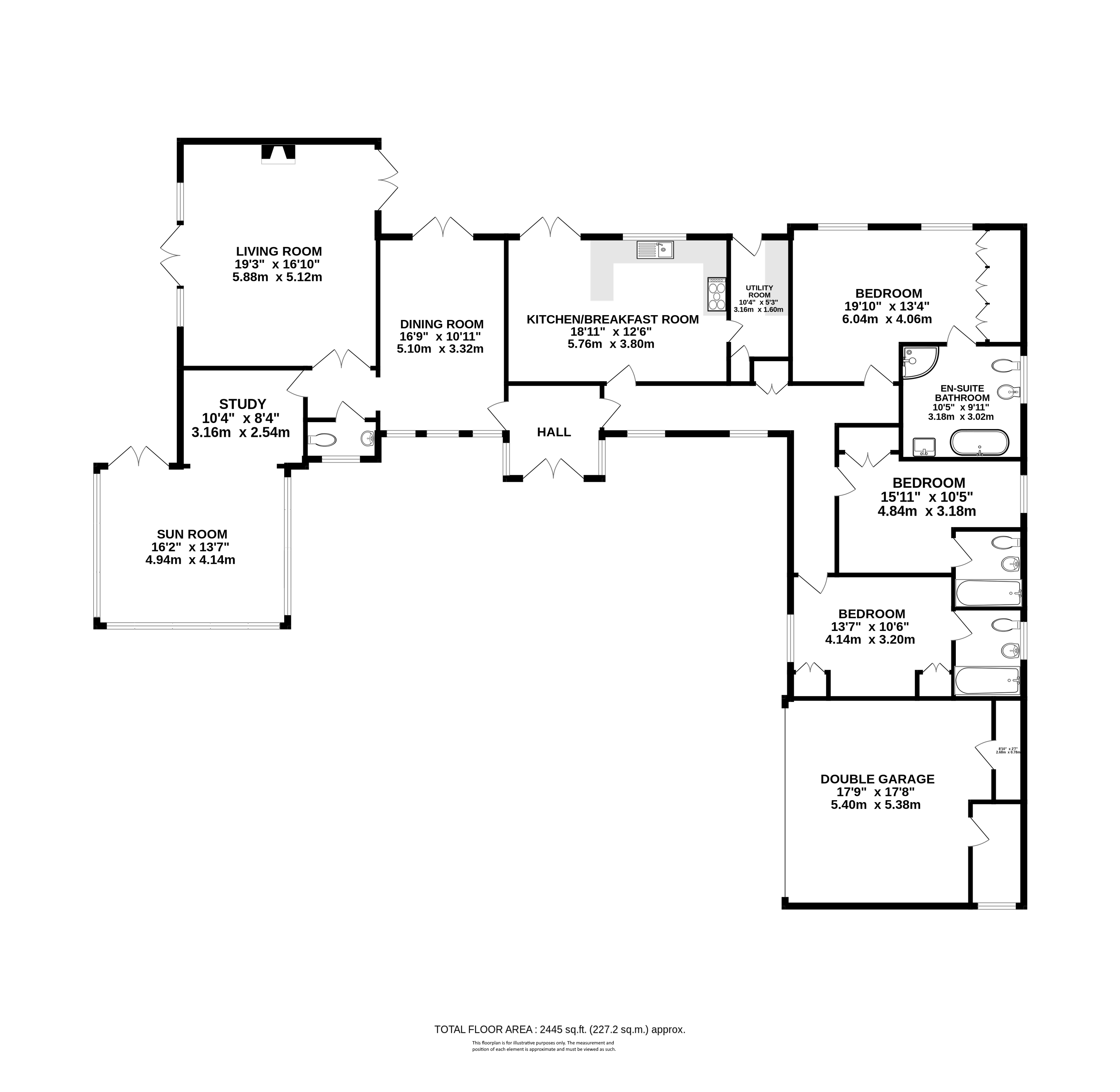 Inside, an inviting reception hallway flows through to a spacious dining room and a formal sitting room, complete with two sets of French doors onto the garden and a striking brick-built fireplace and wood-burning stove - perfect for relaxed evenings. An open-plan sun room with a dedicated study area benefits from underfloor heating and air conditioning, creating a versatile, light-filled space to enjoy year-round. A sleek, modern cloakroom adds further convenience.
