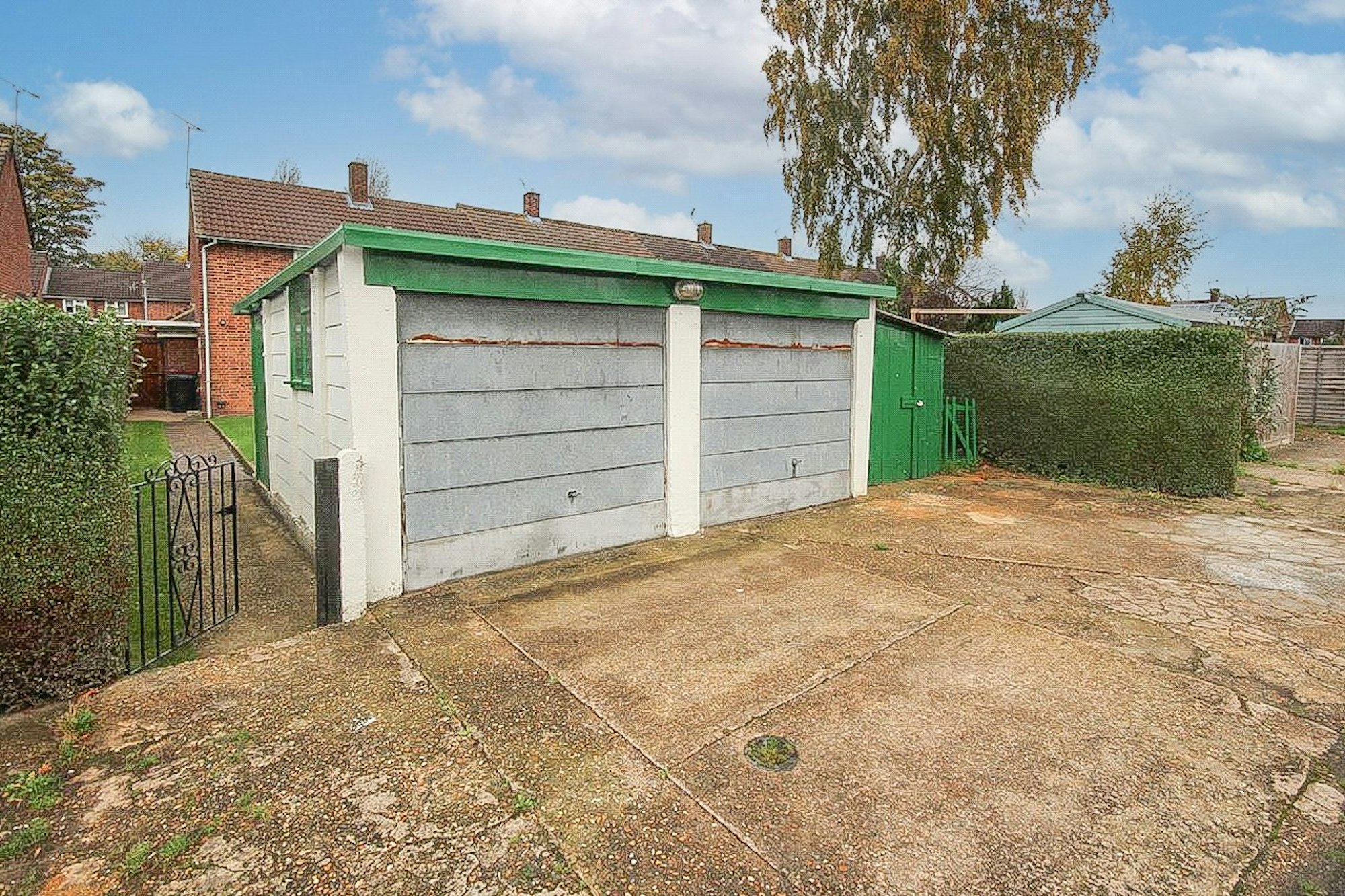 The property's exterior boasts a double garage, providing ample space for parking or storage, and off-street parking for several cars.