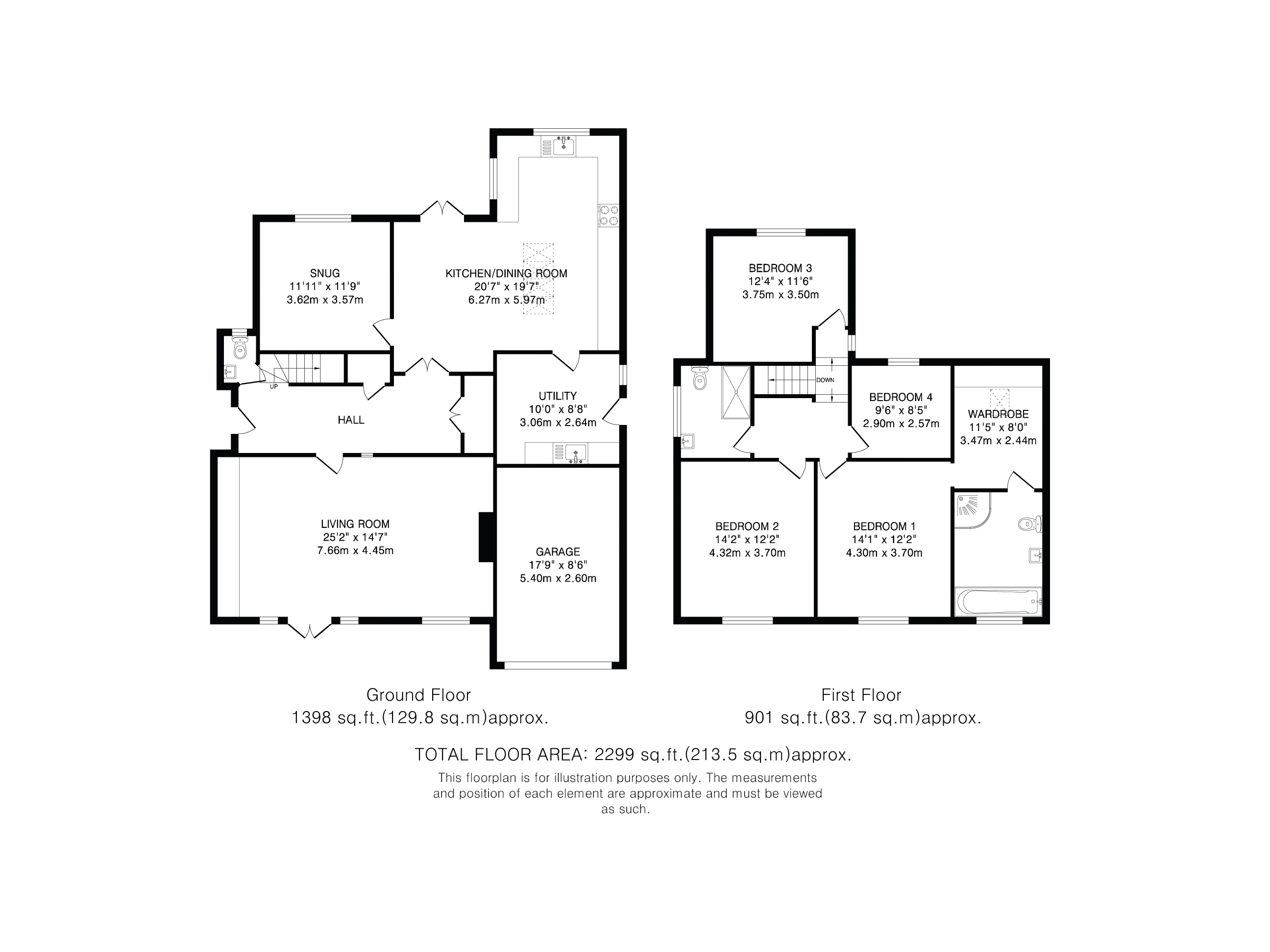 Upstairs, the luxurious principal suite enjoys elevated views across the fields and includes a vaulted dressing room and an expansive en-suite bathroom with Fired Earth tiles, underfloor heating, and premium fittings. Three further bedrooms; two doubles boasting great views and a single are served by a stylish family shower room with walk-in shower unit and premium fittings.