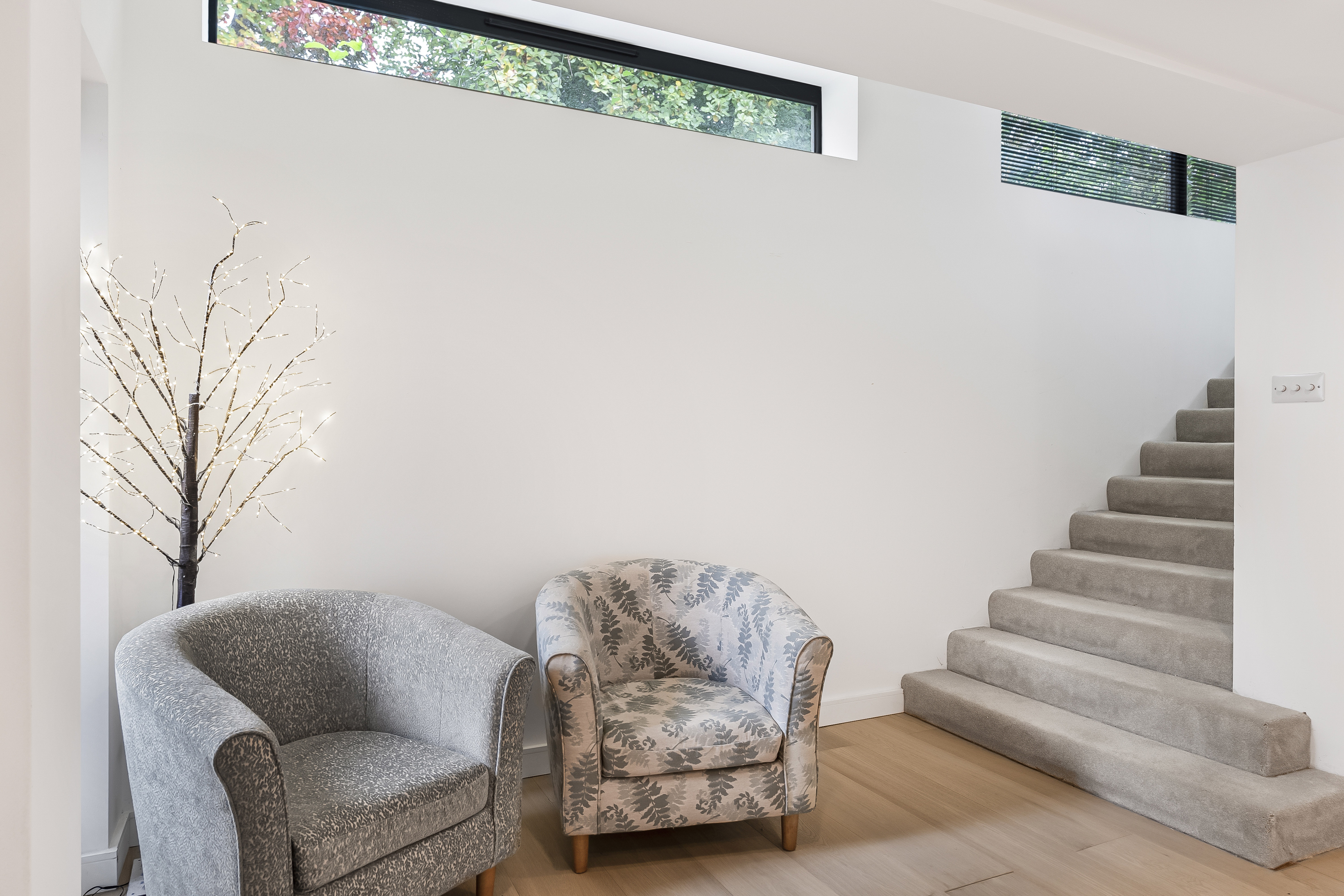 Upon entry, the wide and welcoming hallway immediately sets the tone for the home’s spacious feel, offering excellent storage and leading into a magnificent, light-filled living room. This versatile space is ideal for entertaining or relaxing, and could easily be re-configured to incorporate an additional bedroom or a dedicated study if desired.