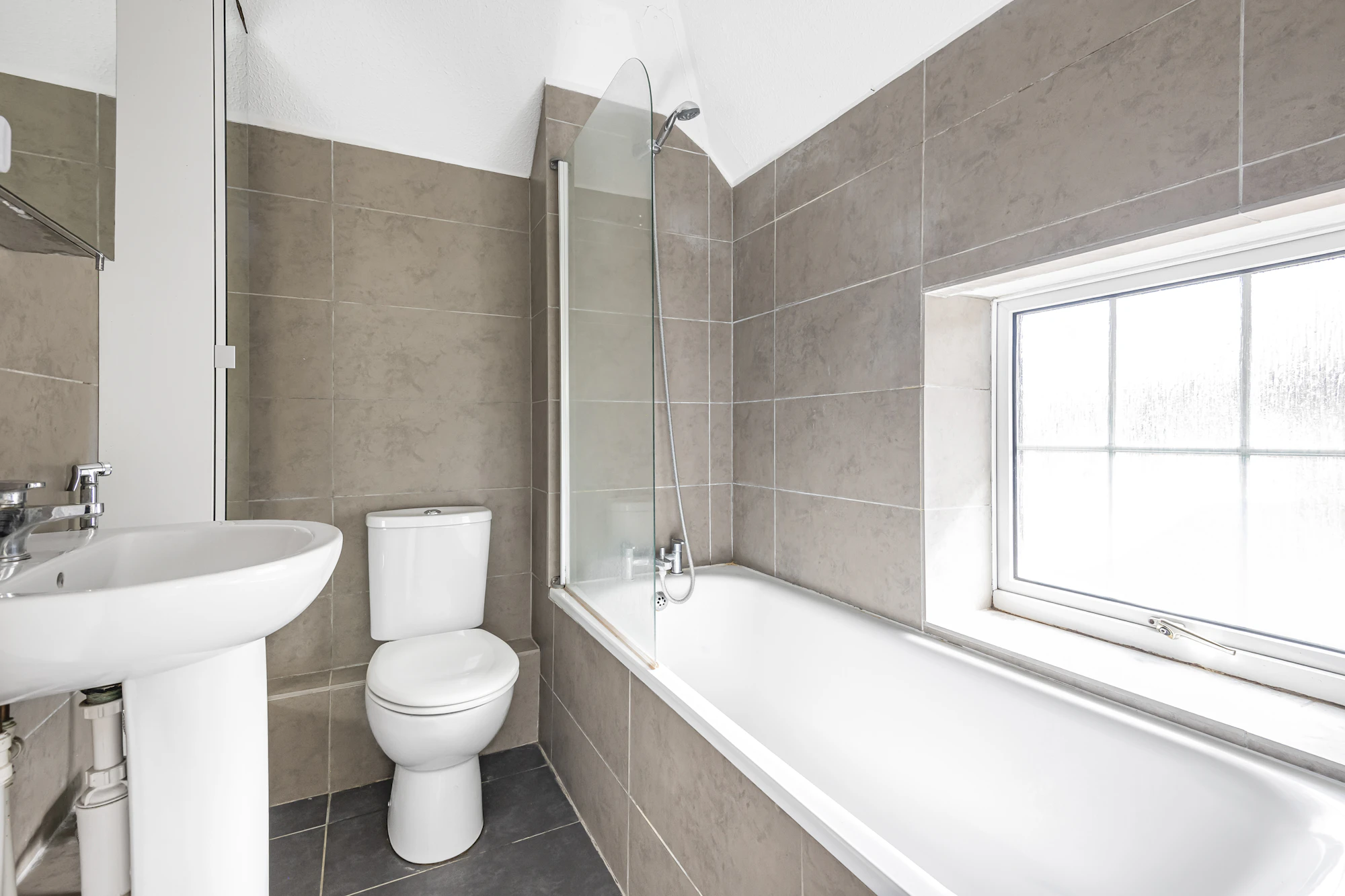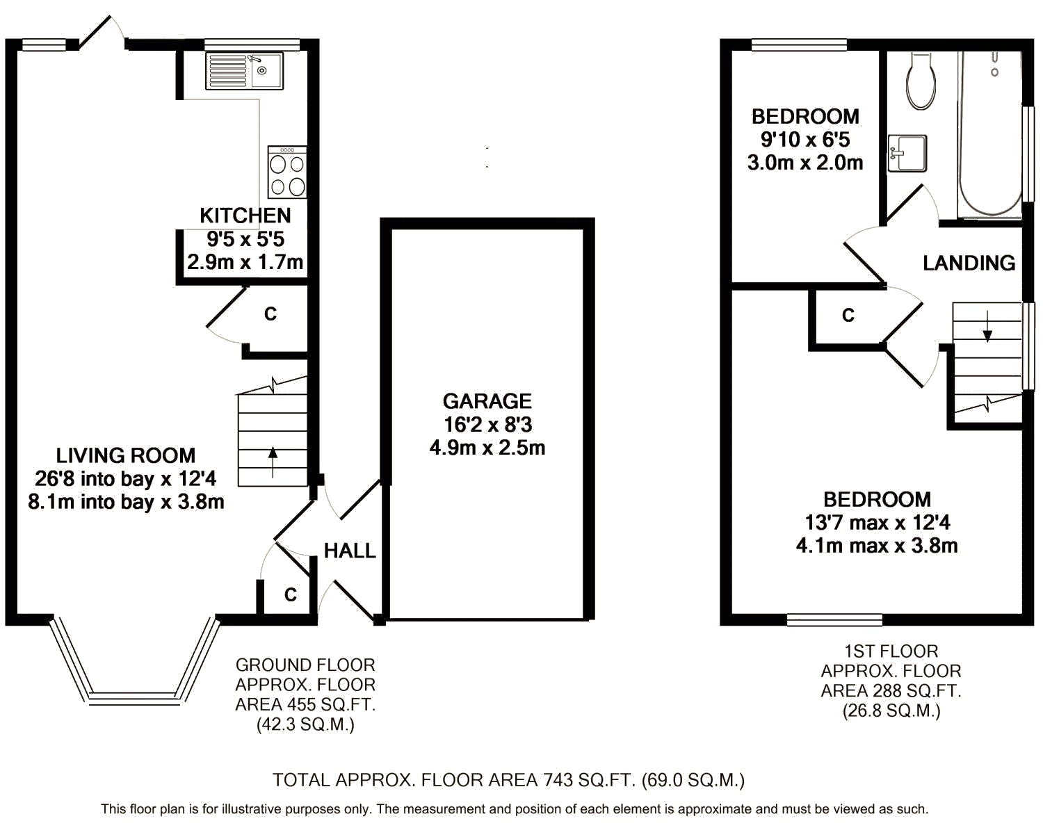 Upstairs the landing is flooded with light from a south facing window and there are two bedrooms served by a three piece bathroom.