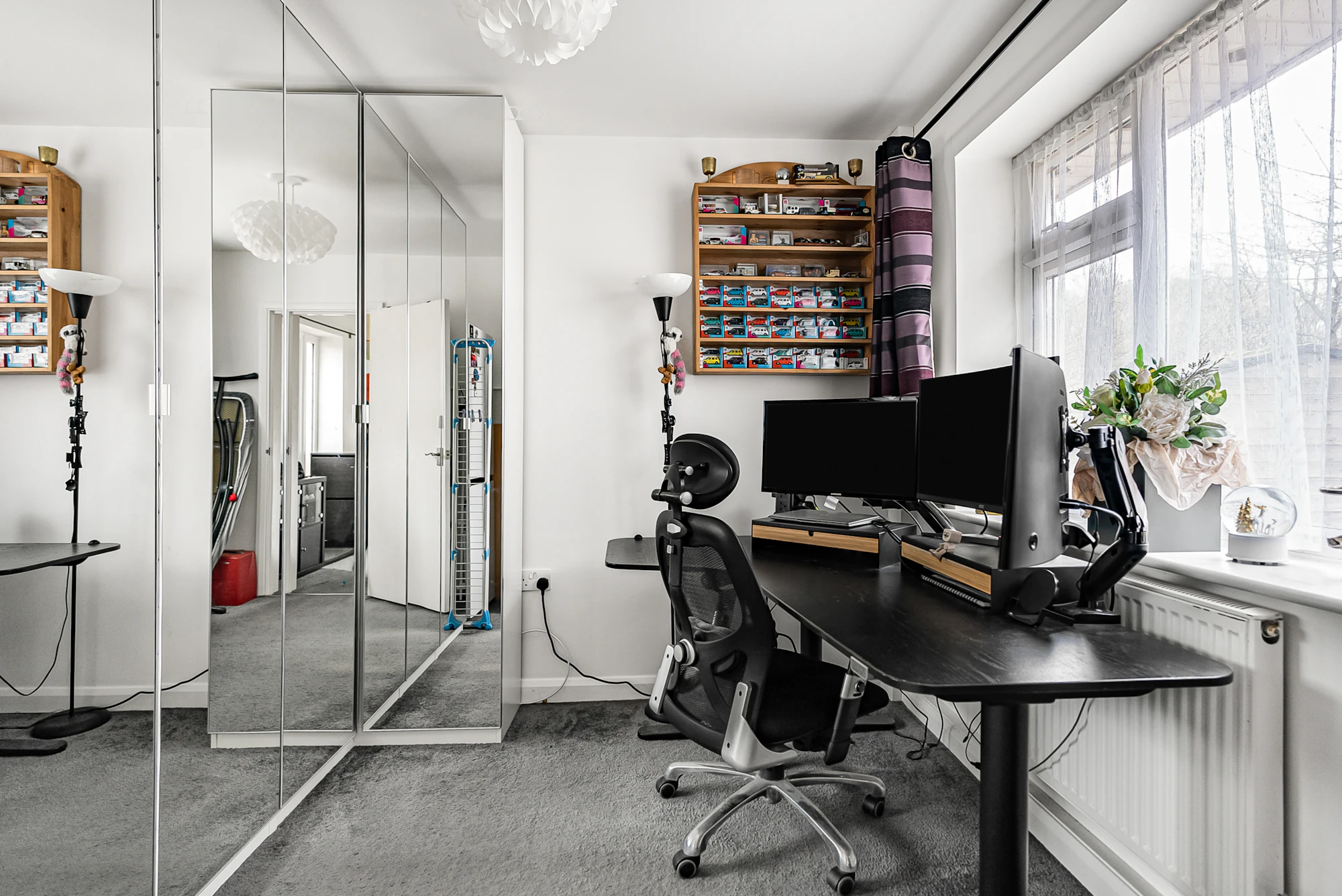 The self-contained annex, accessed from the main entrance hall, represents approximately one-third of the overall accommodation and provides a fully independent living environment. Arranged with its own internal hallway, the annex includes a fitted kitchen, utility room with space and plumbing for laundry appliances, a bathroom, and two additional bedrooms - one currently utilised as a home office - along with a flexible study or storage room. This thoughtfully designed space is ideally suited to guest accommodation, professional use or multi-generational living.