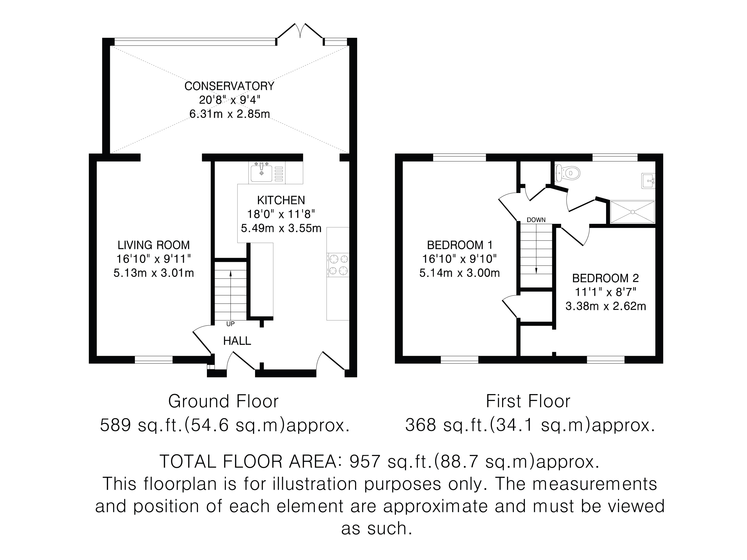 The property comprises a lounge, a stunning kitchen with a range of stylish wall and base units and a number of integrated appliances, a fantastic 20ft conservatory extension to the rear which is bathed in light and adds valuable living space, and two large bedrooms, both served by a modern shower room.