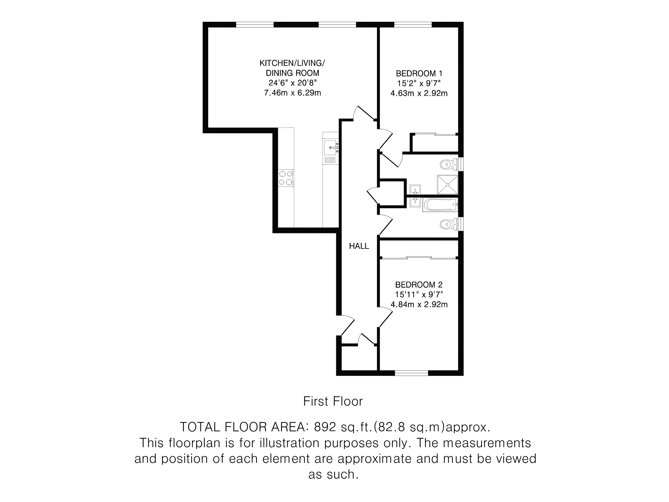 Beautifully presented throughout, the property offers a contemporary open-plan layout, featuring a sleek, modern kitchen flowing seamlessly into a bright and spacious living area. Both bedrooms are generously sized and benefit from fitted wardrobes, with the principal bedroom further enhanced by a luxurious en-suite shower room. A stylish family bathroom completes the accommodation.
